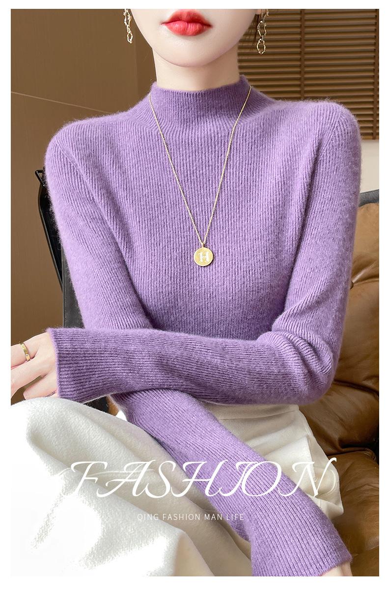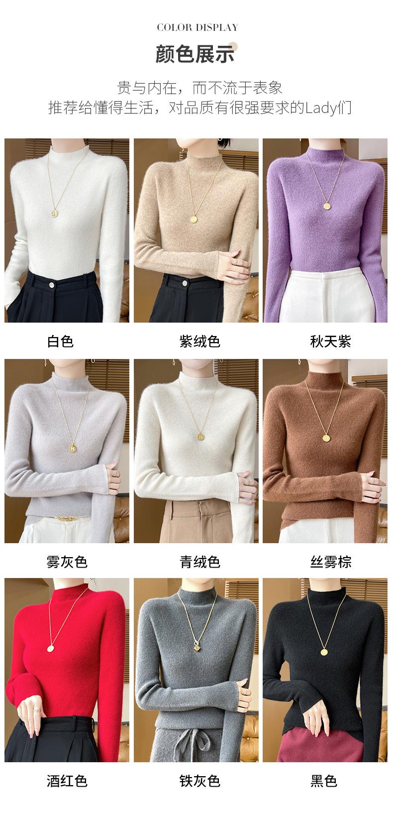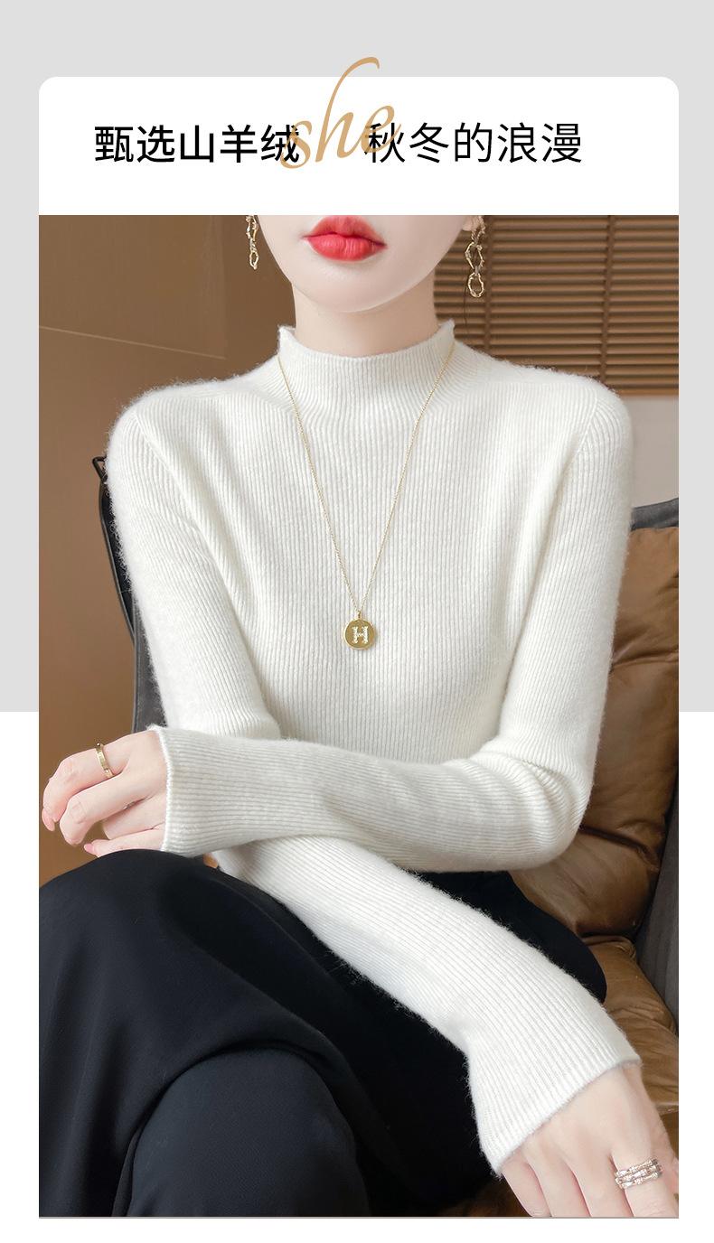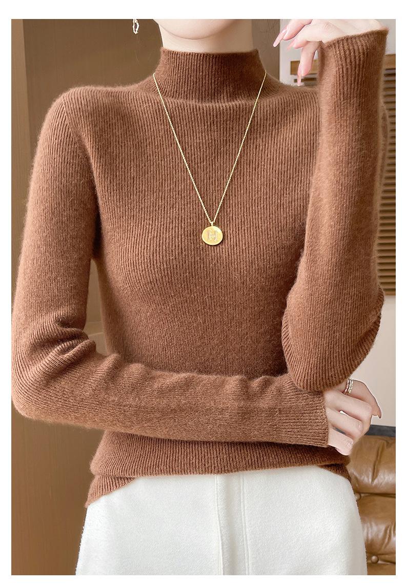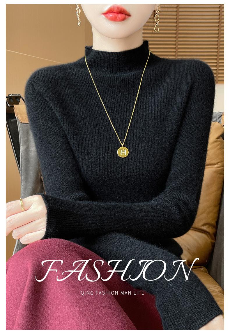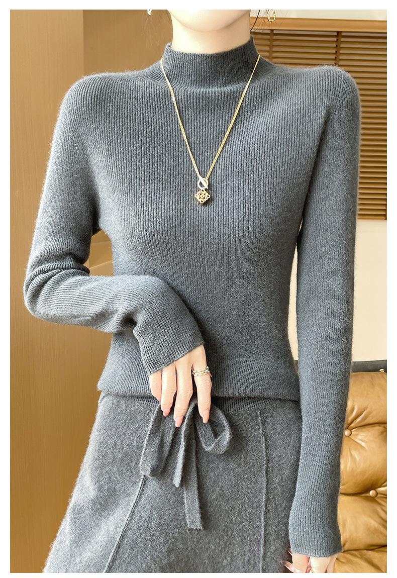 Suéter de Cachemira 100% Puro de Cuello Alto Medio para Mujer Nuevo Suéter Pulóver de Manga Larga de Color Puro para Mujer Suéter de Fondo de Cachemira para Mujer Otoño e Invierno