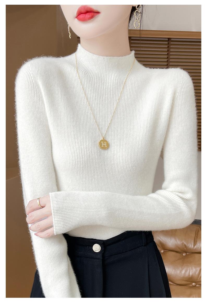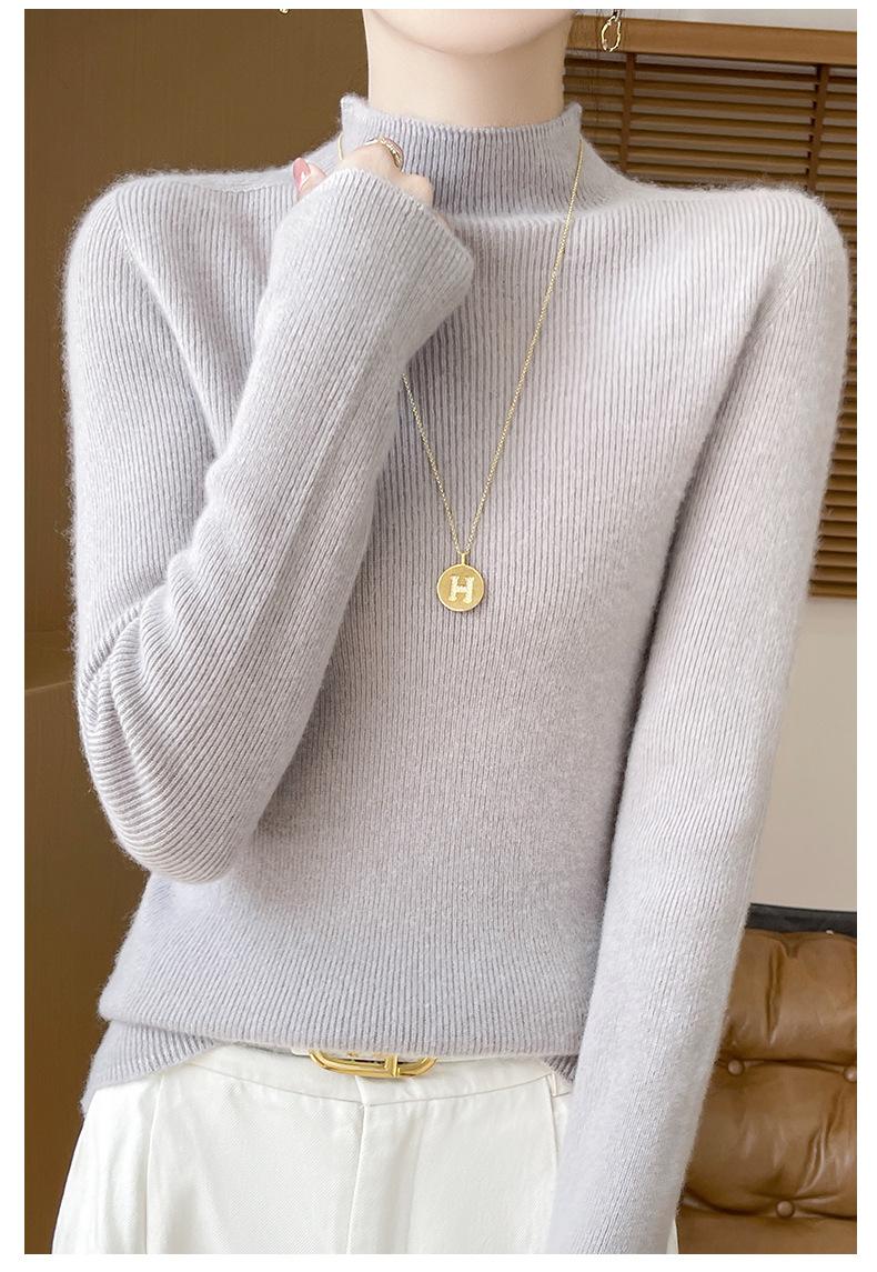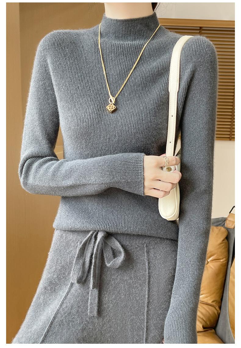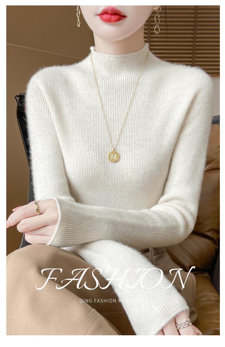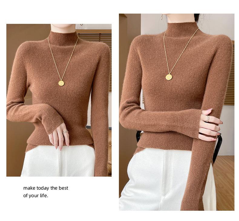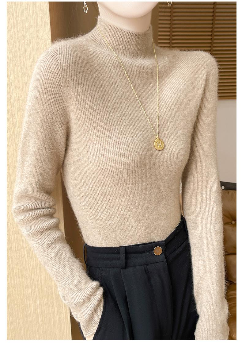 Suéter de Cachemira 100% Puro de Cuello Alto Medio para Mujer Nuevo Suéter Pulóver de Manga Larga de Color Puro para Mujer Suéter de Fondo de Cachemira para Mujer Otoño e Invierno