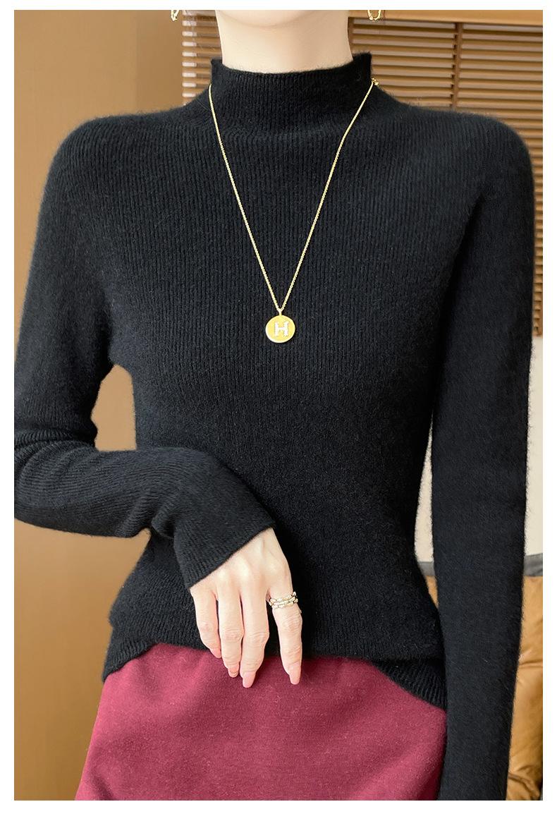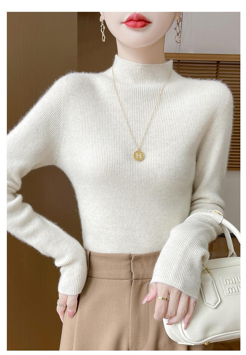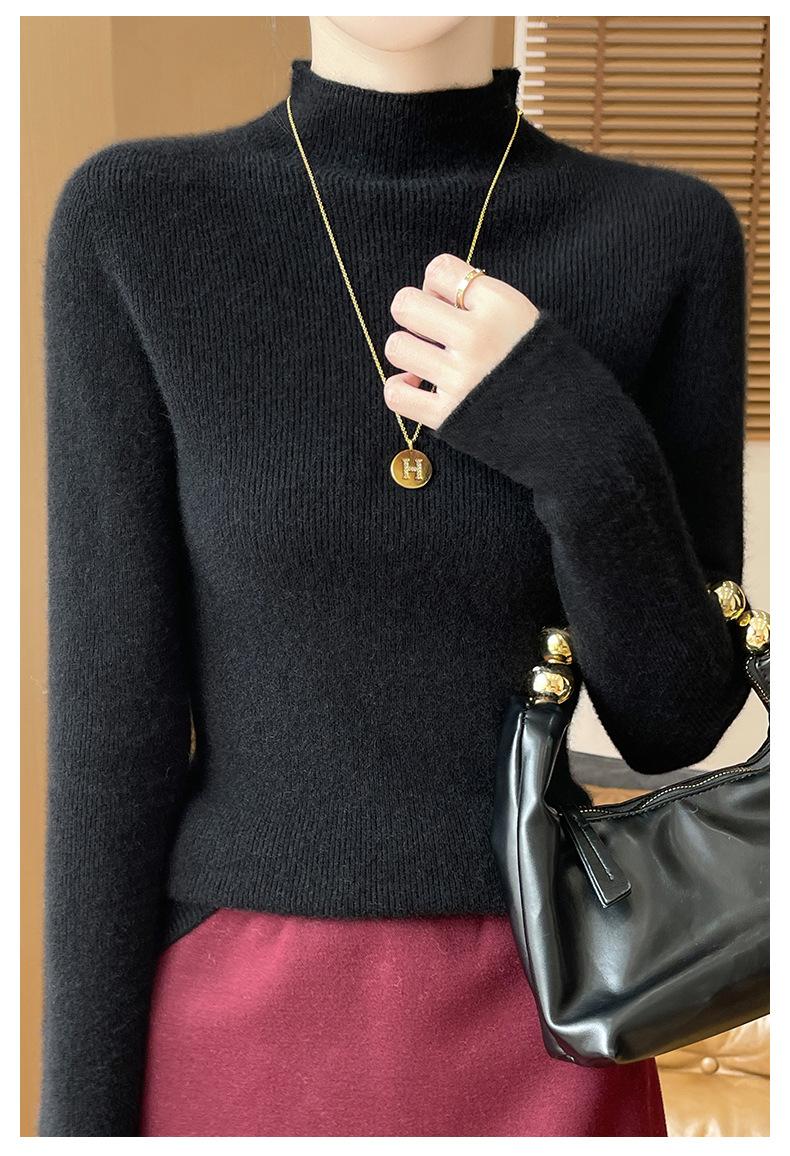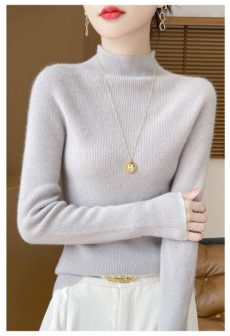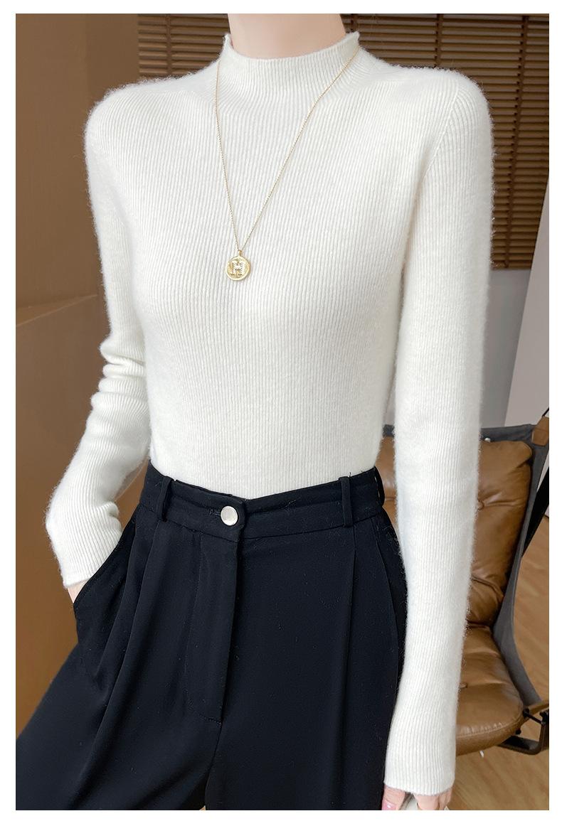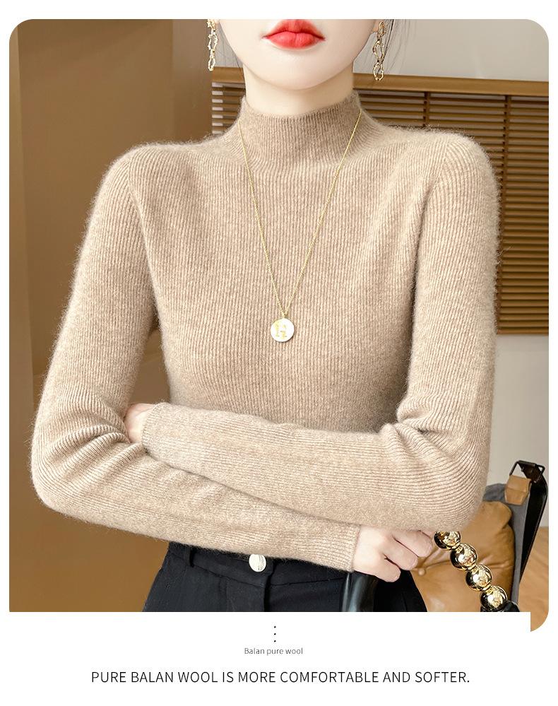 Suéter de Cachemira 100% Puro de Cuello Alto Medio para Mujer Nuevo Suéter Pulóver de Manga Larga de Color Puro para Mujer Suéter de Fondo de Cachemira para Mujer Otoño e Invierno