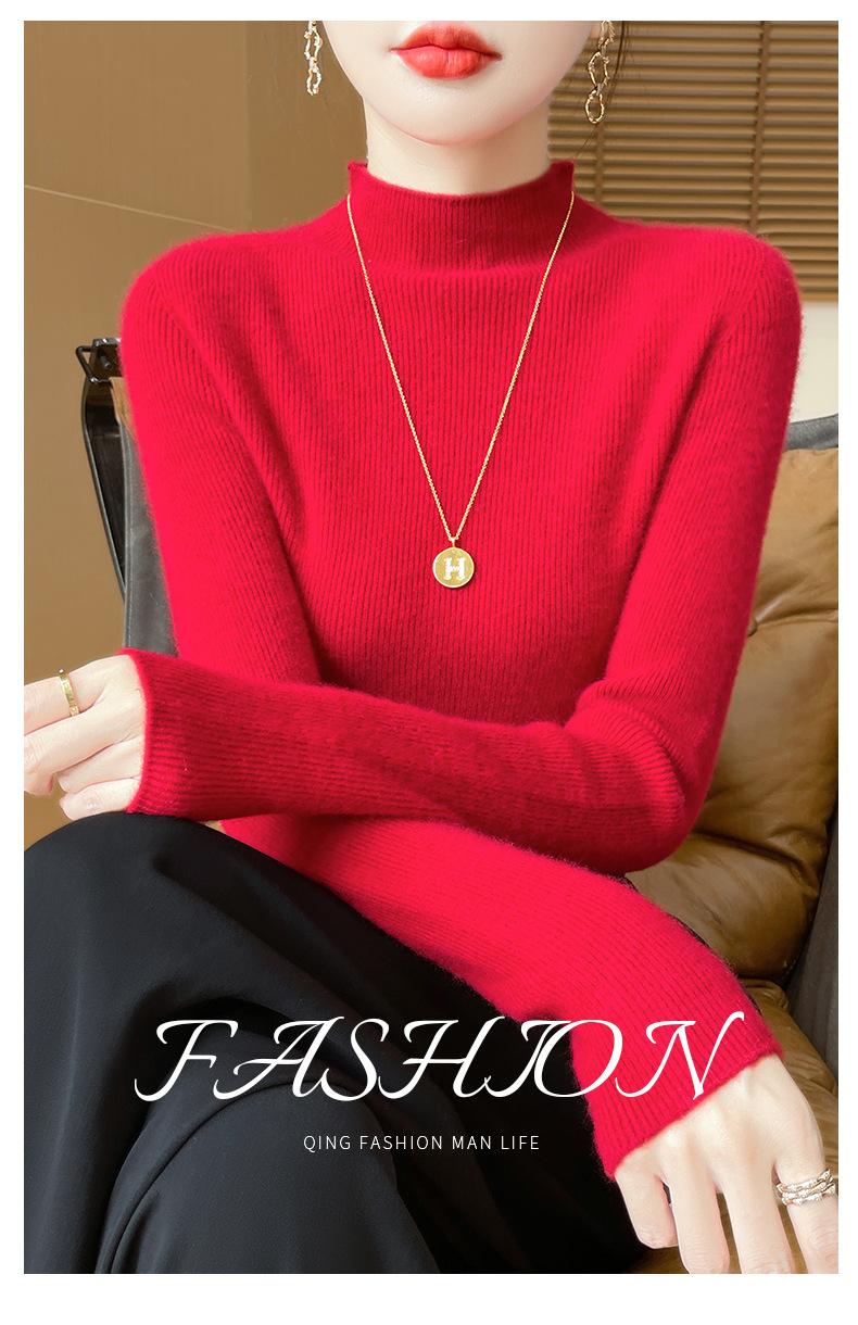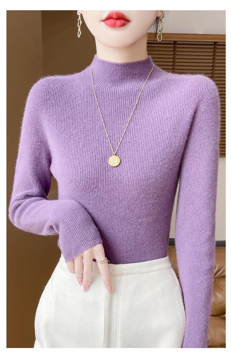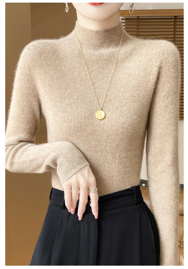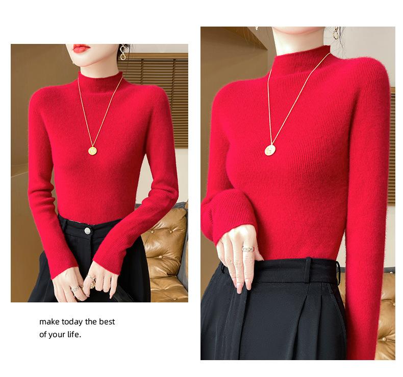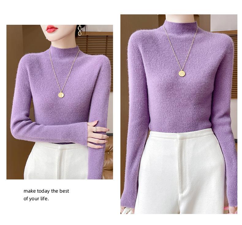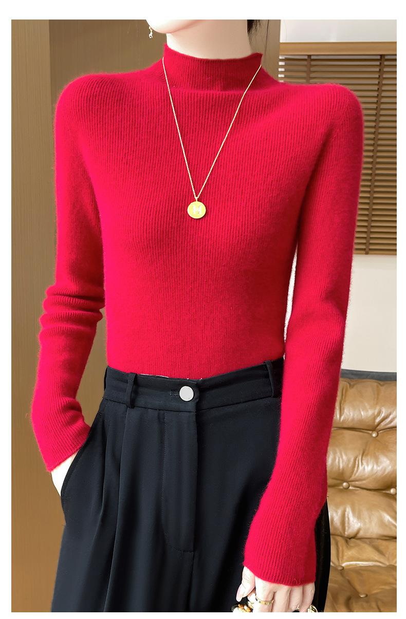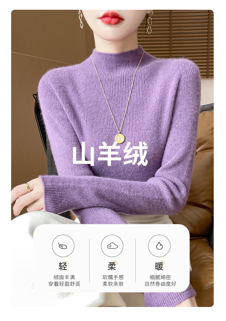 Suéter de Cachemira 100% Puro de Cuello Alto Medio para Mujer Nuevo Suéter Pulóver de Manga Larga de Color Puro para Mujer Suéter de Fondo de Cachemira para Mujer Otoño e Invierno