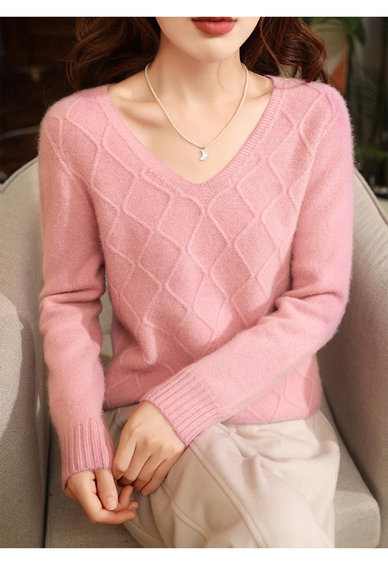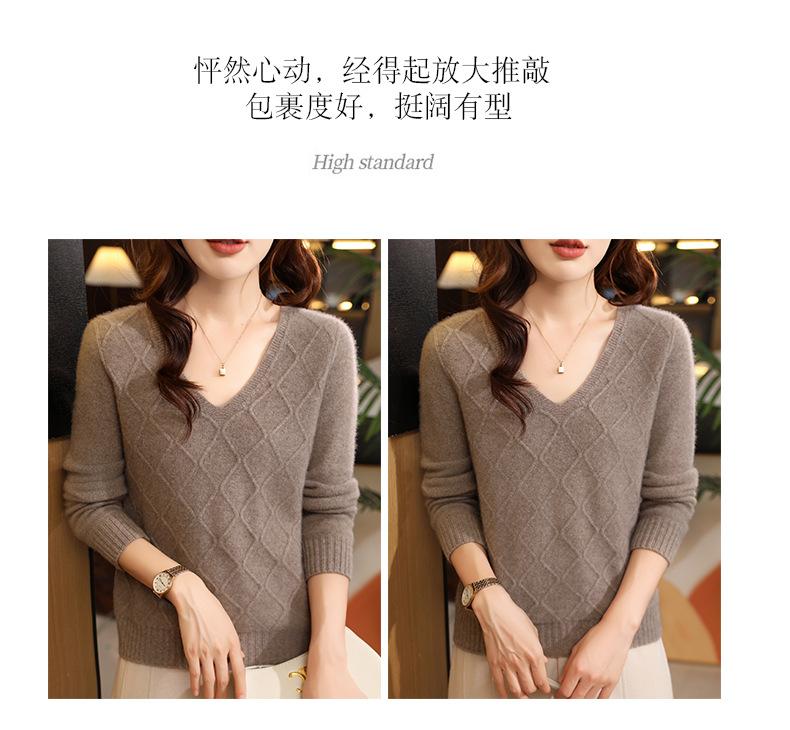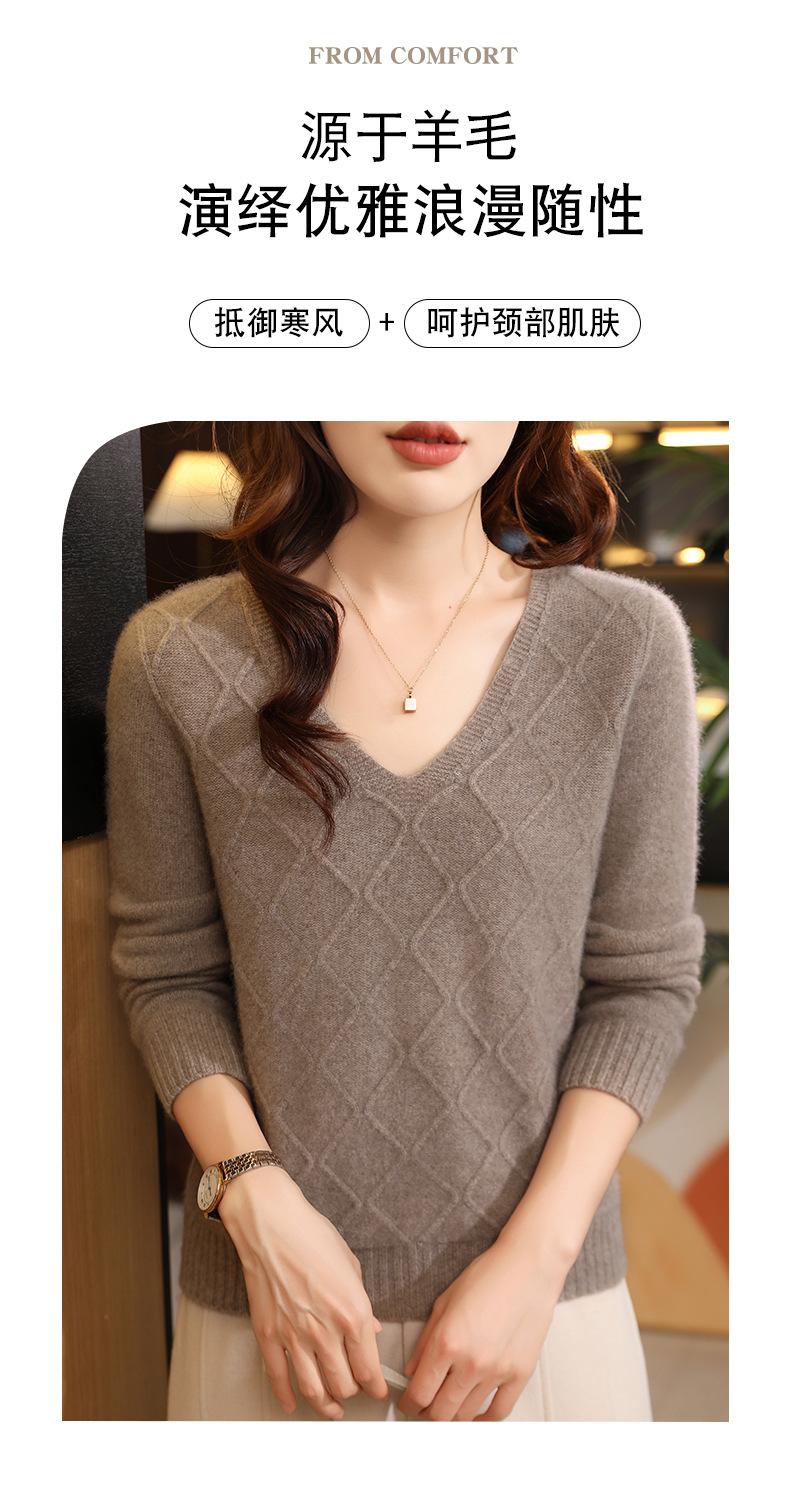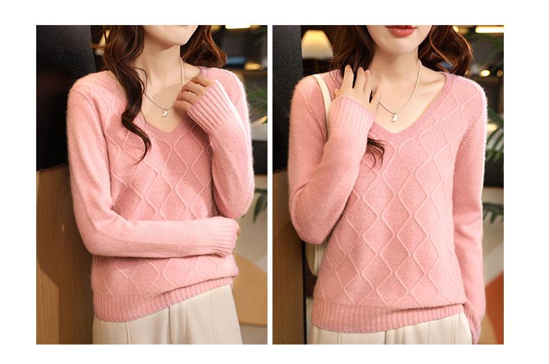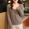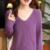 Suéter de lana 100% pura para mujer, jersey de jacquard de color liso con cuello en V, camisa holgada de manga larga tejida con base de lana, otoño e invierno, 24 unidades