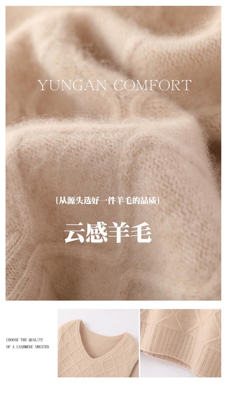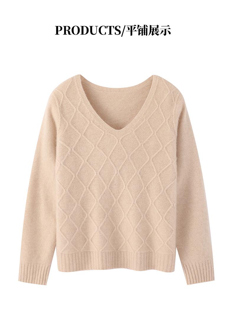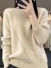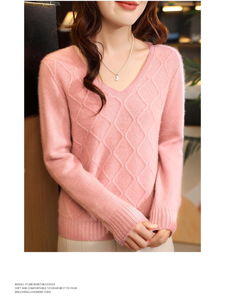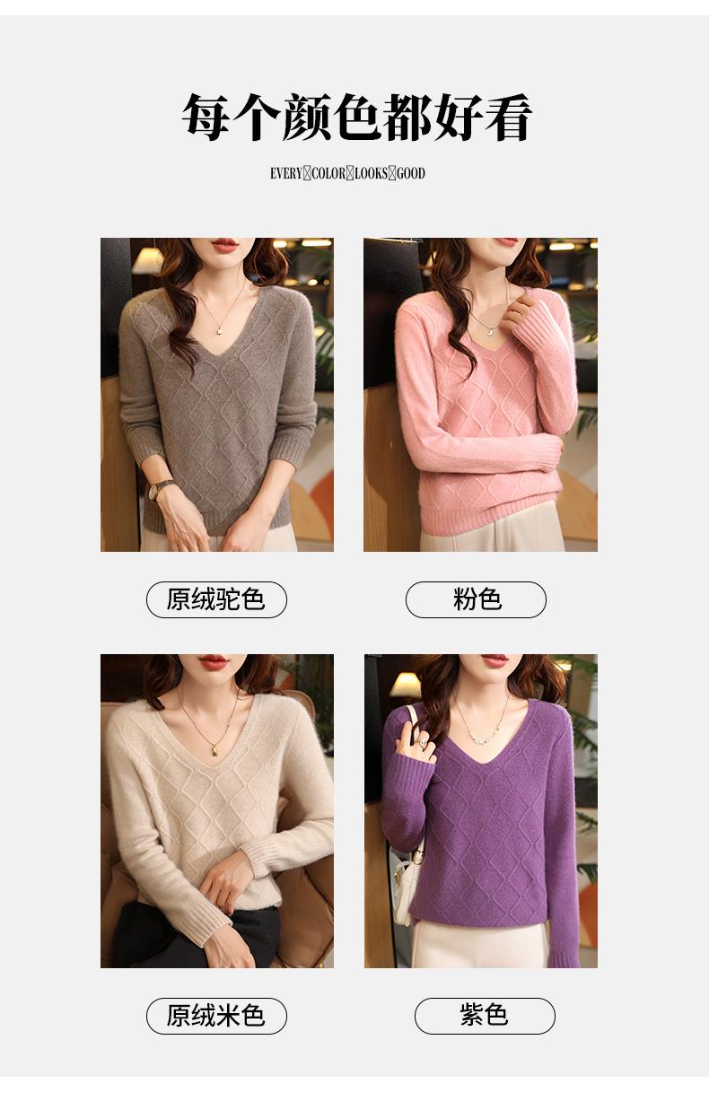 Suéter de lana 100% pura para mujer, jersey de jacquard de color liso con cuello en V, camisa holgada de manga larga tejida con base de lana, otoño e invierno, 24 unidades