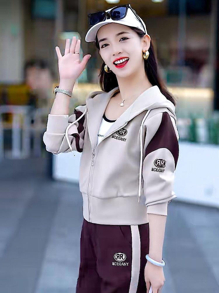 Traje de suéter tipo cárdigan con cremallera de otoño e invierno para mujer, nueva moda 2023, conjunto de dos piezas de ropa deportiva superior con temperamento reductor de edad