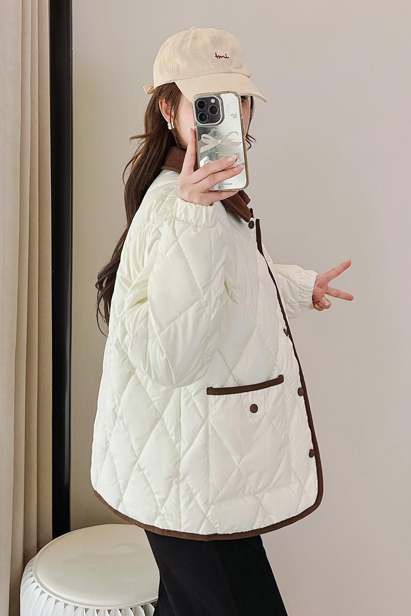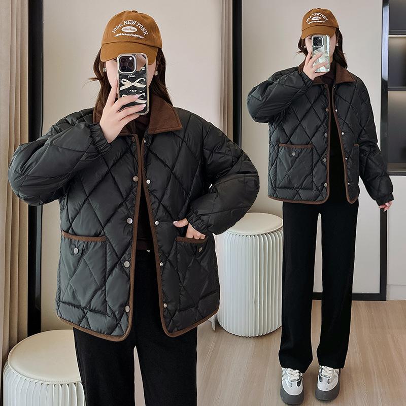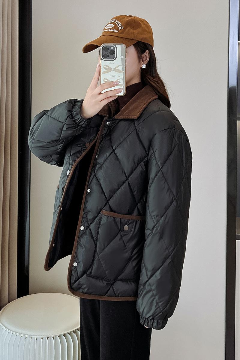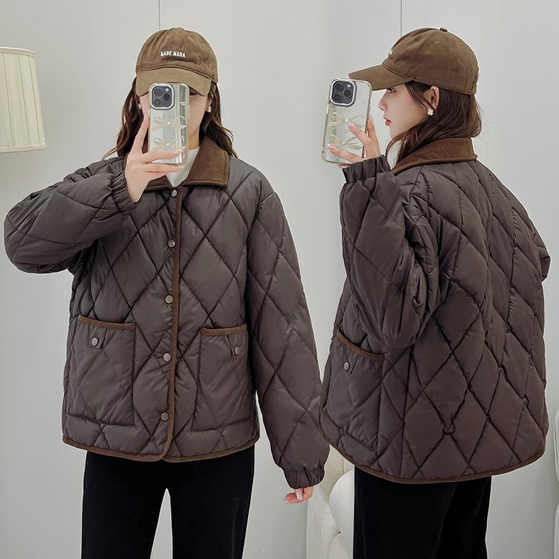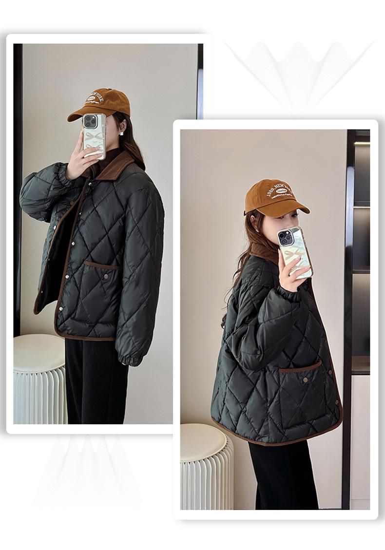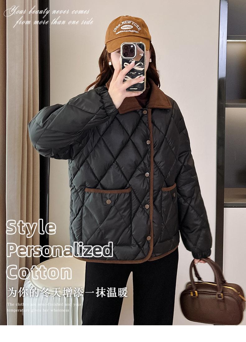 Ropa de Algodón para Mujer 2025 Nuevo Estilo Estilo Pequeño Aroma Moda Suelta Más Fácil de Combinar Chaqueta Corta de Algodón Invierno Chaqueta para Mujer