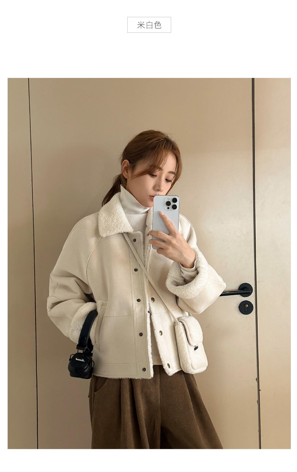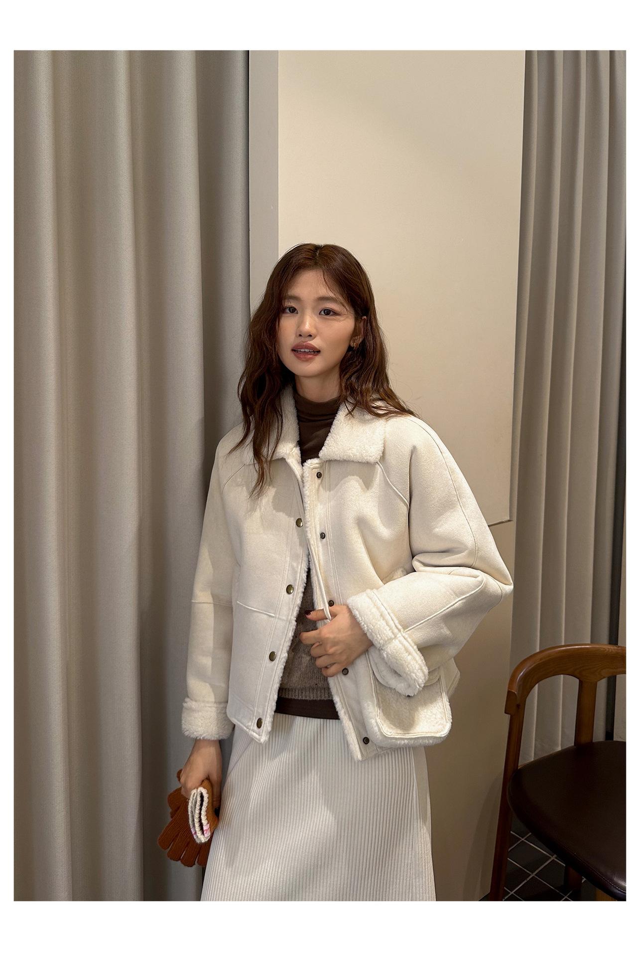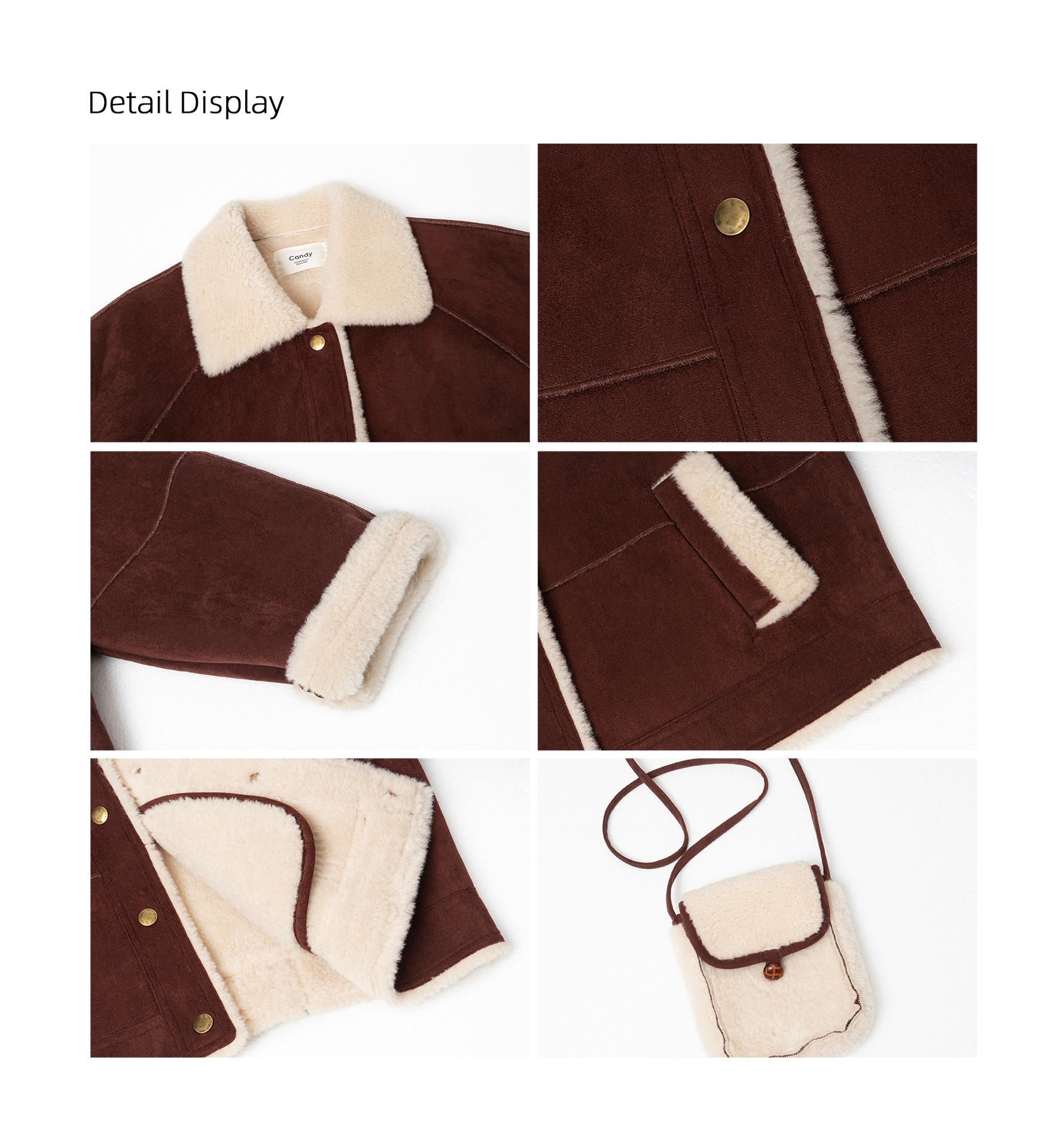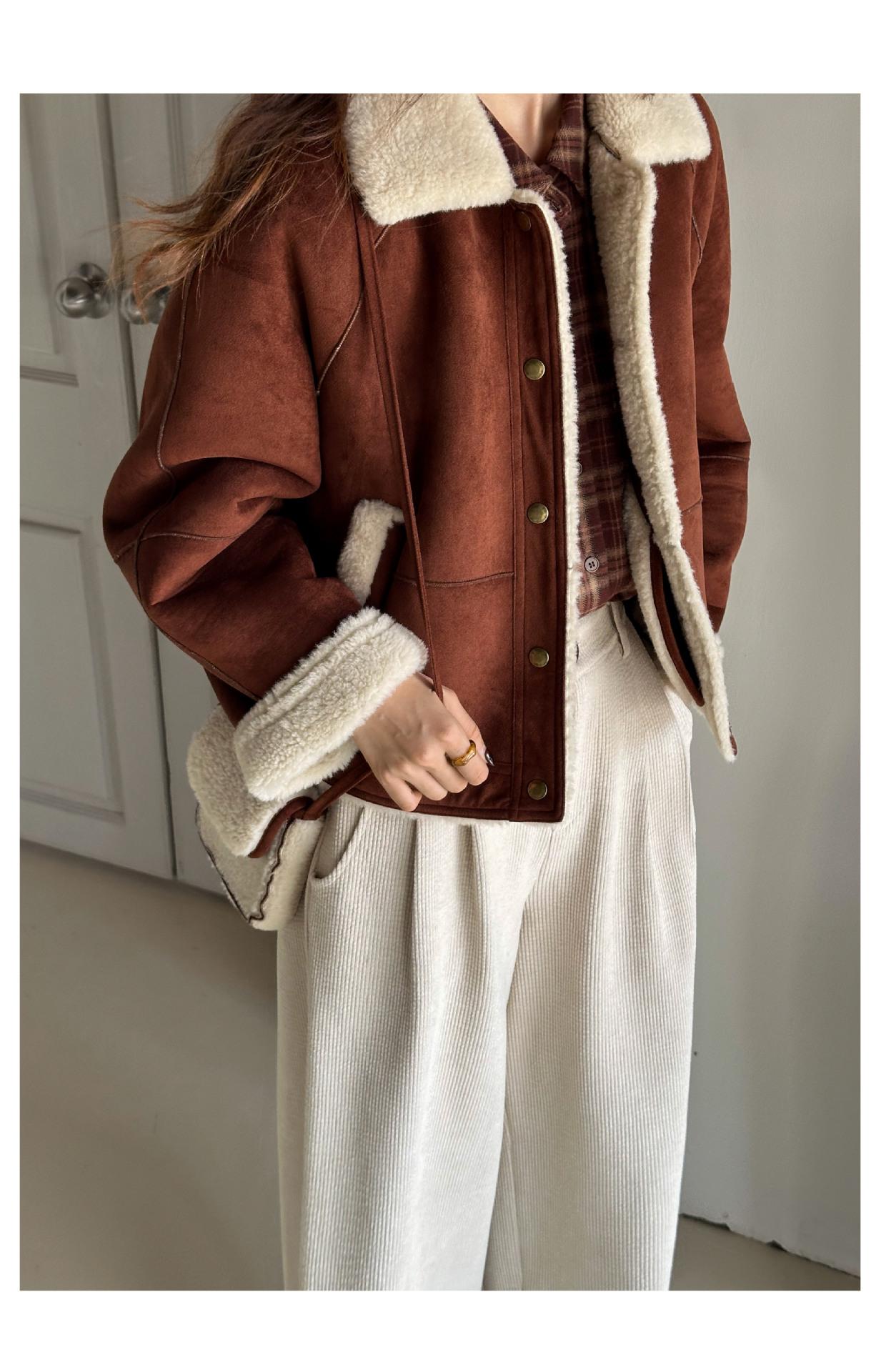 Clásico Abrigo de Piel de Alta Gama Todo en Uno Otoño e Invierno Nuevo Suelto Corto Lana de Cordero Algodón Grueso para Mujer