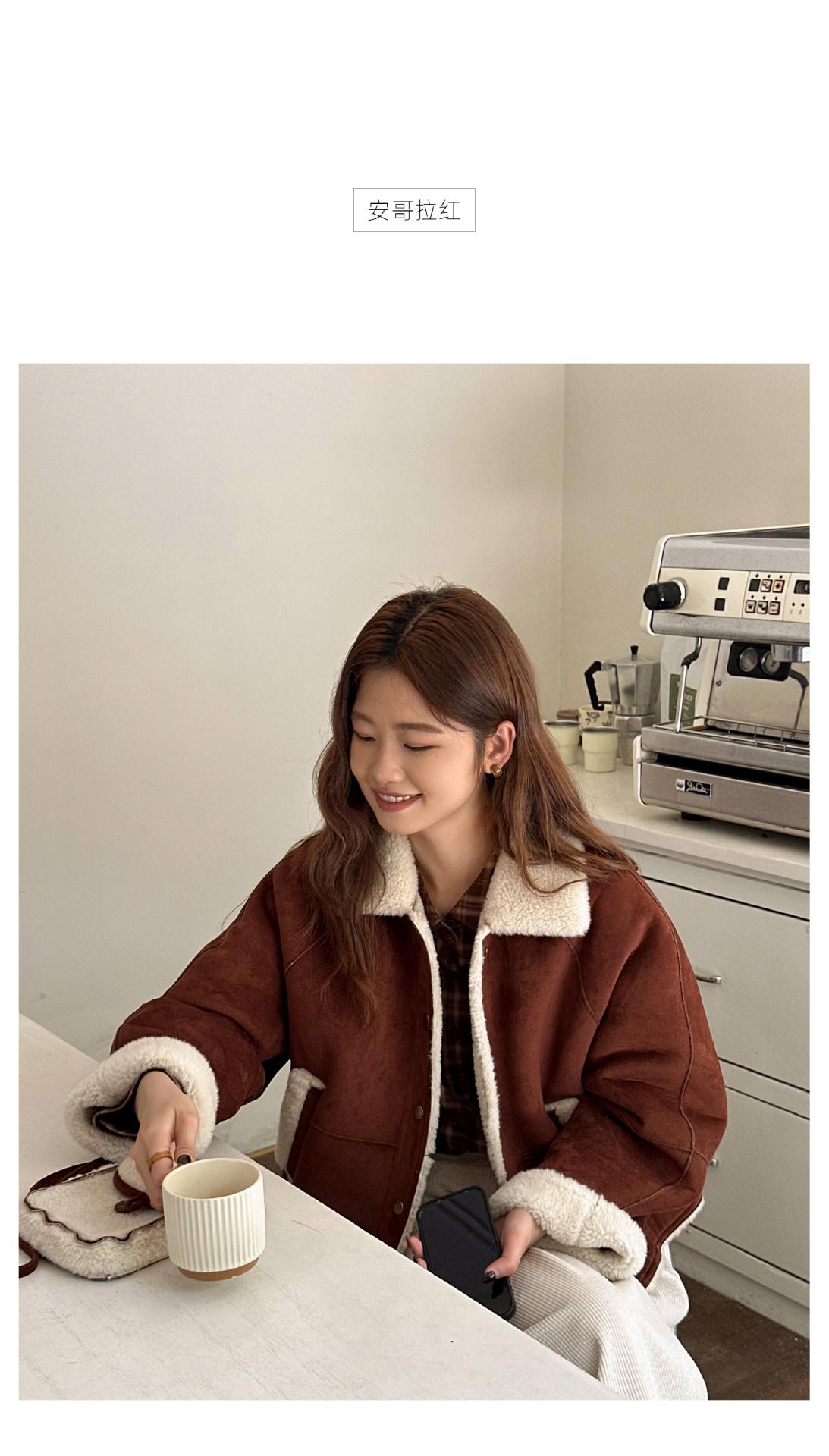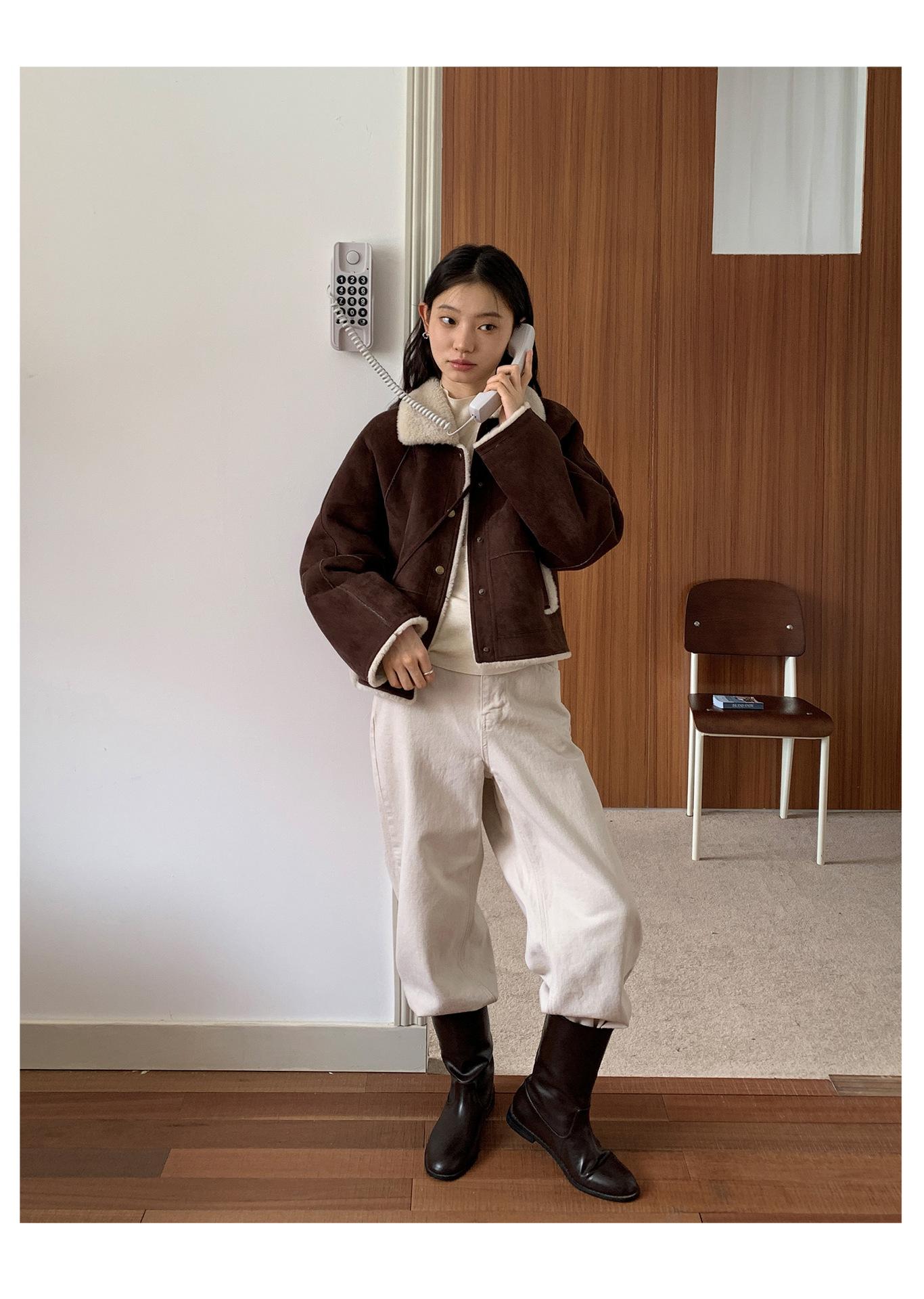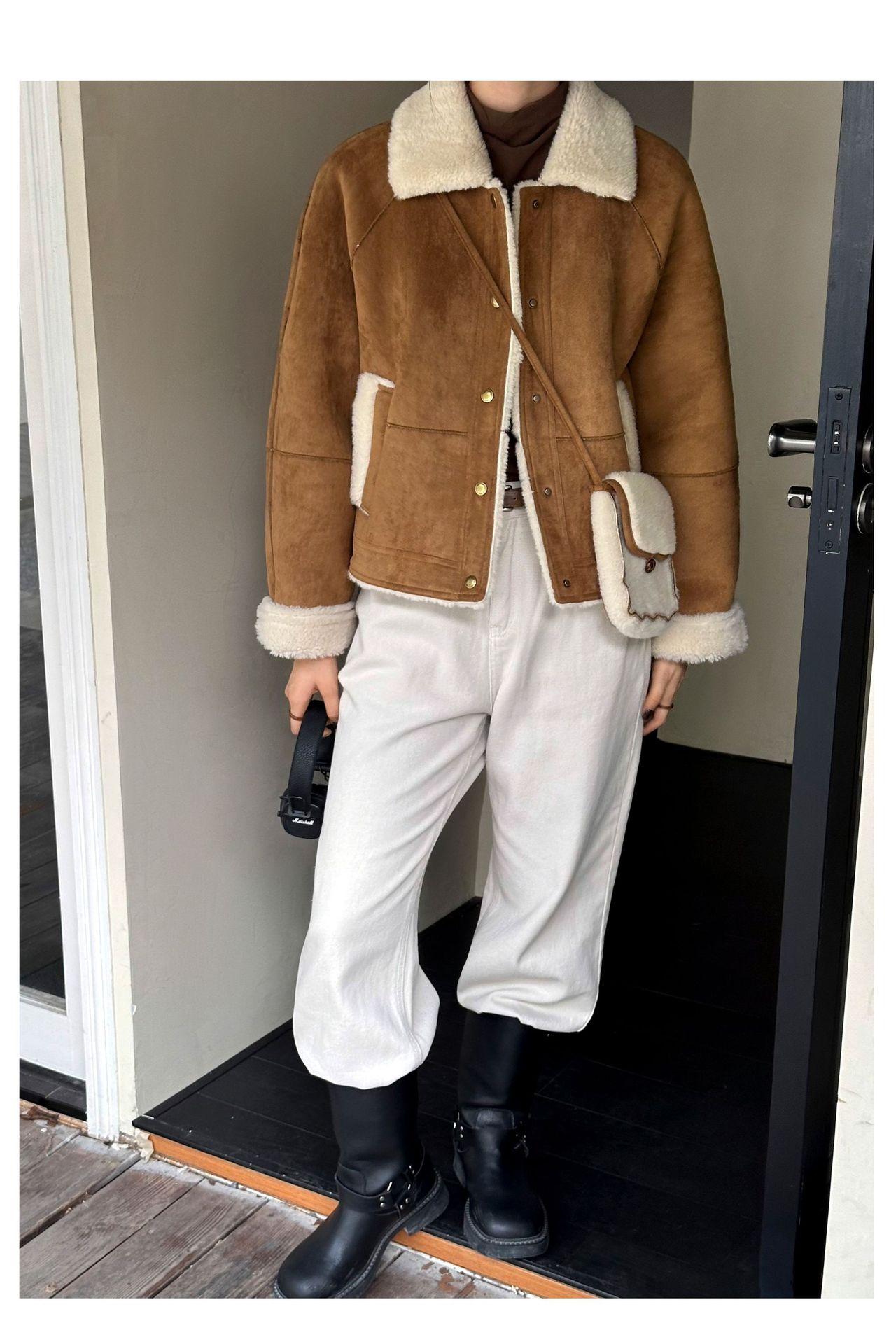 Clásico Abrigo de Piel de Alta Gama Todo en Uno Otoño e Invierno Nuevo Suelto Corto Lana de Cordero Algodón Grueso para Mujer