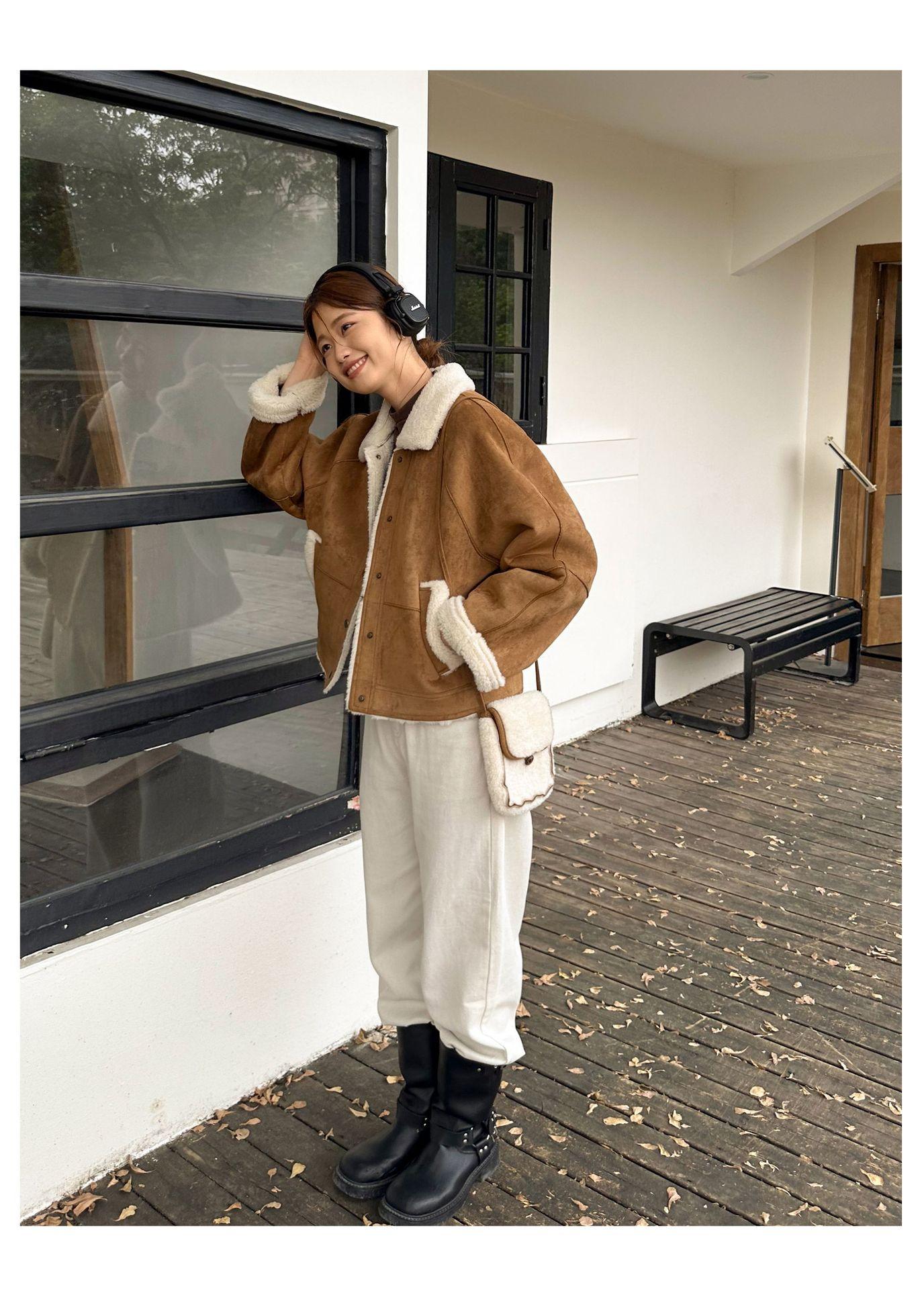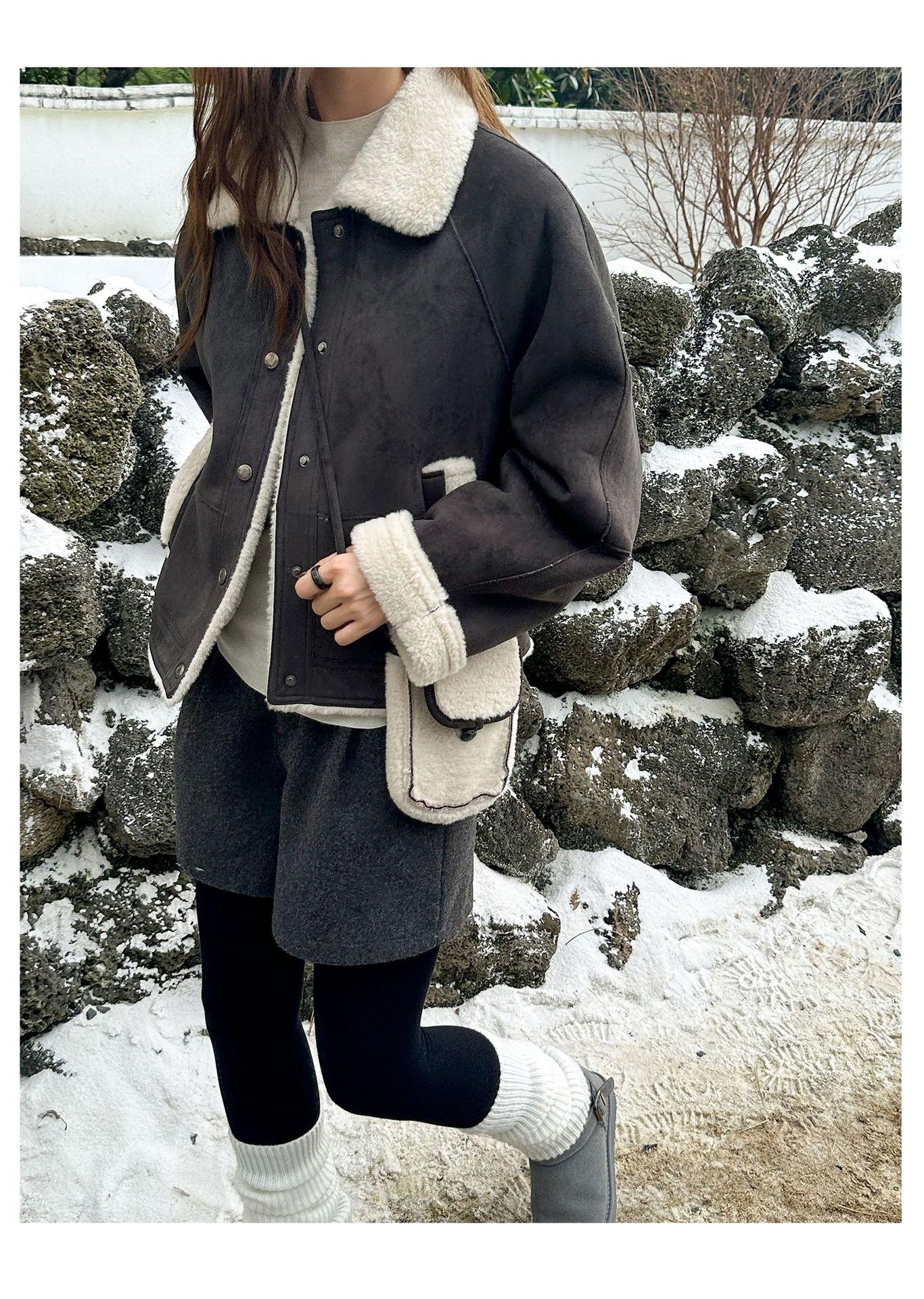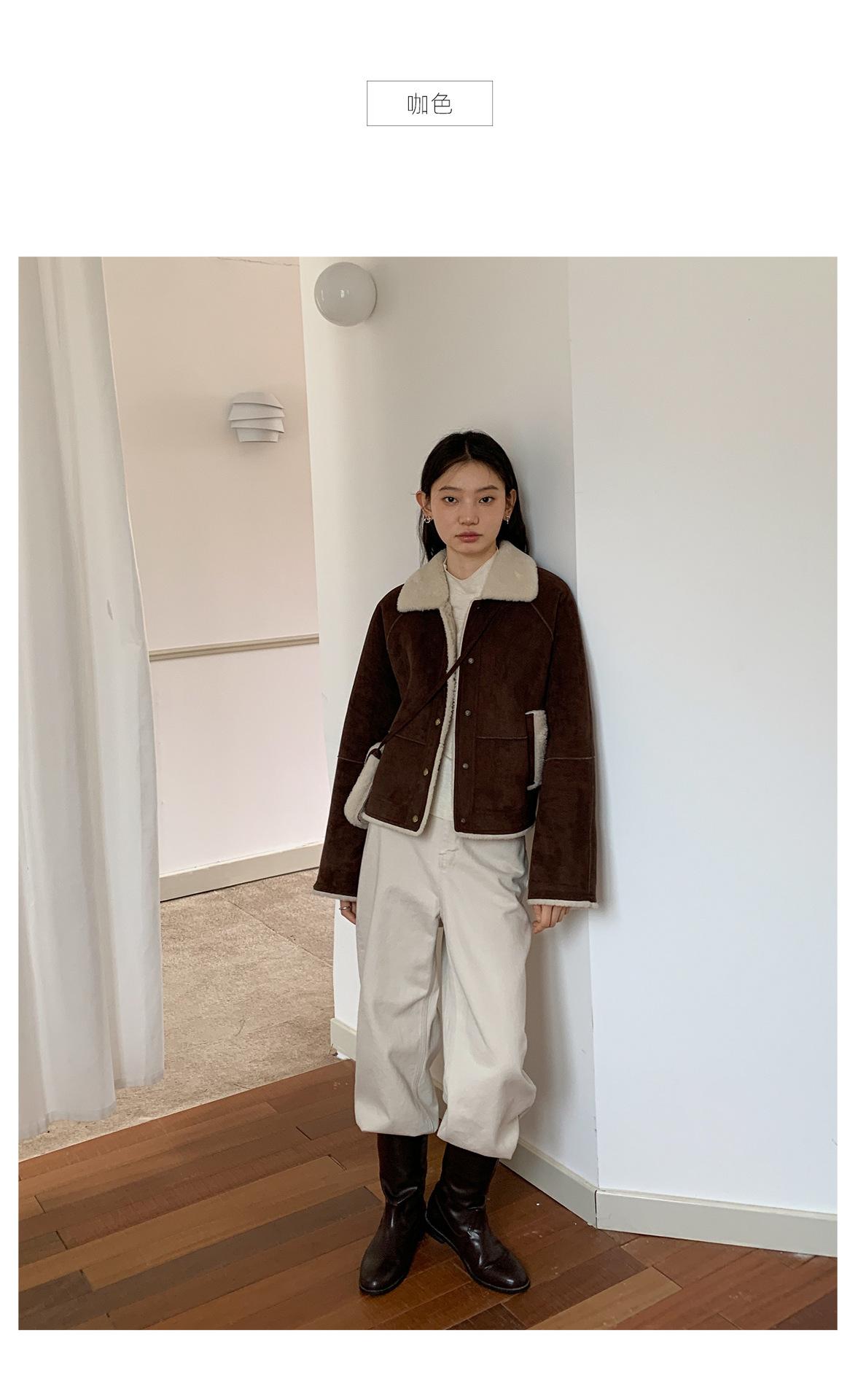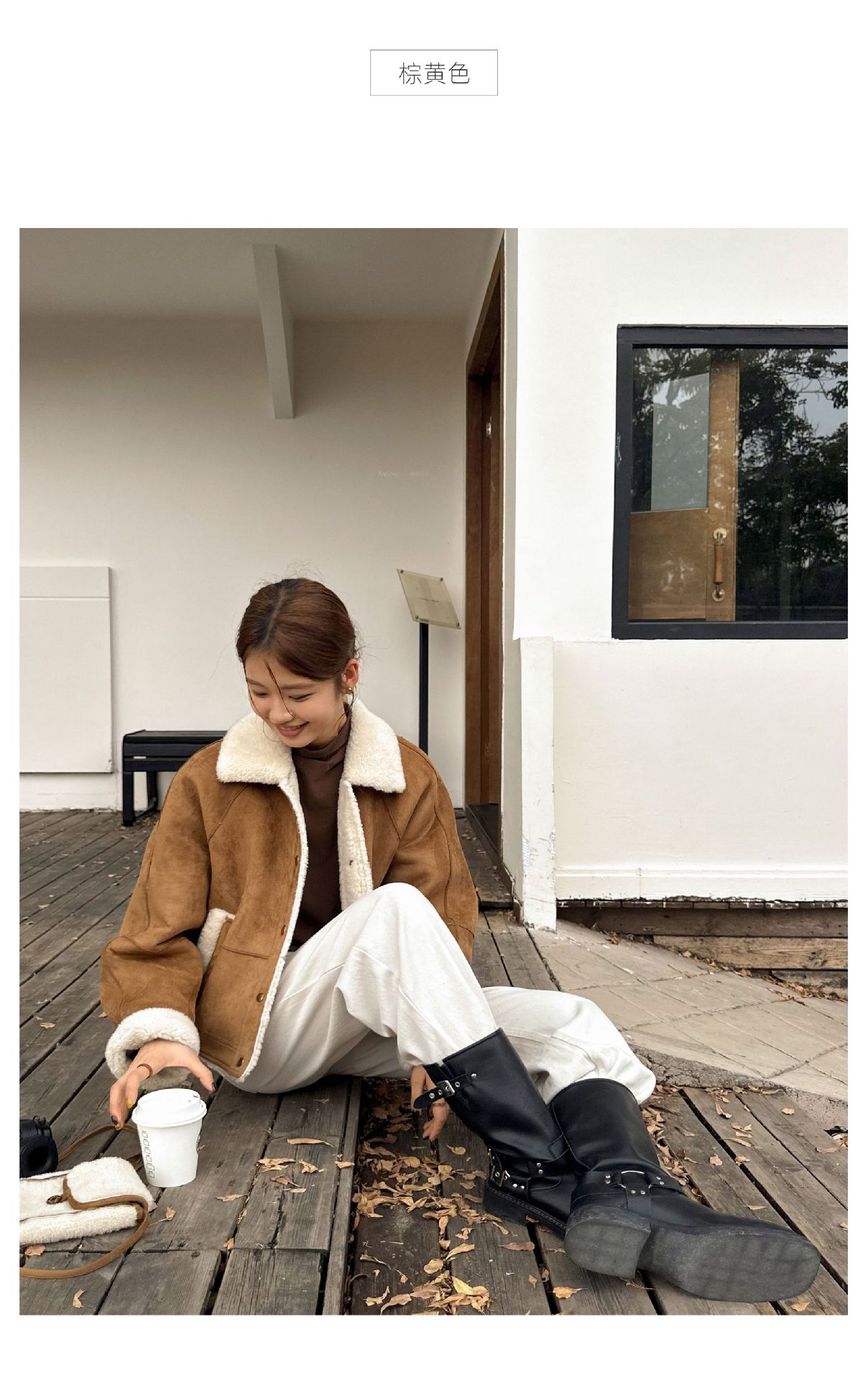 Clásico Abrigo de Piel de Alta Gama Todo en Uno Otoño e Invierno Nuevo Suelto Corto Lana de Cordero Algodón Grueso para Mujer