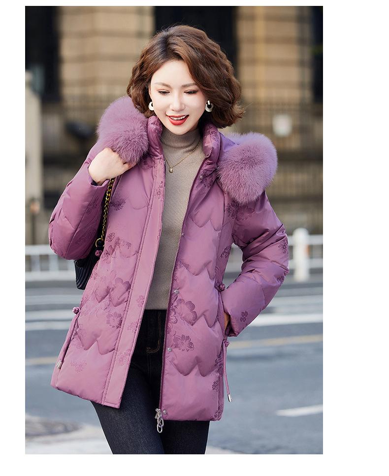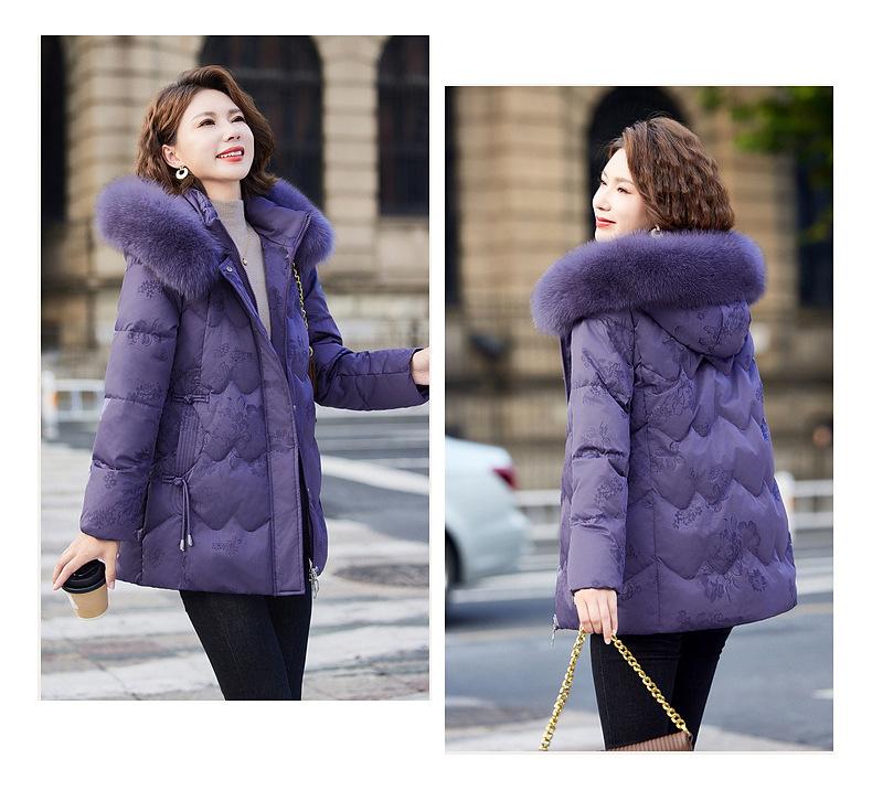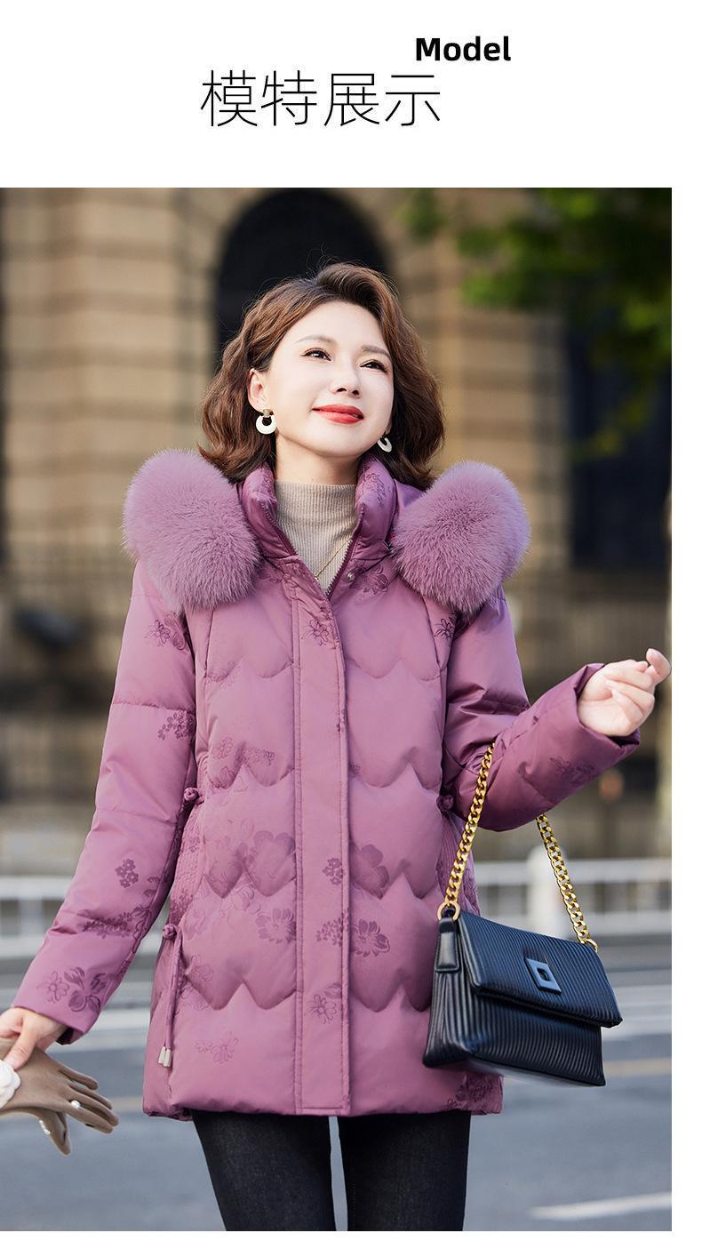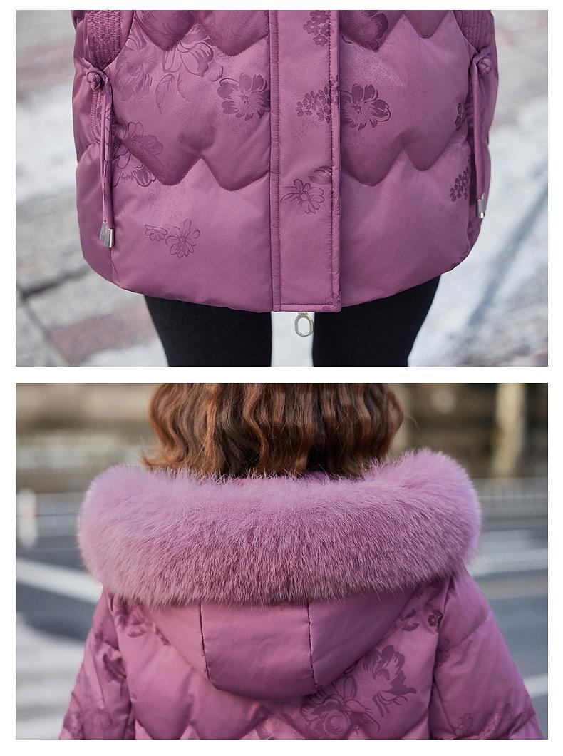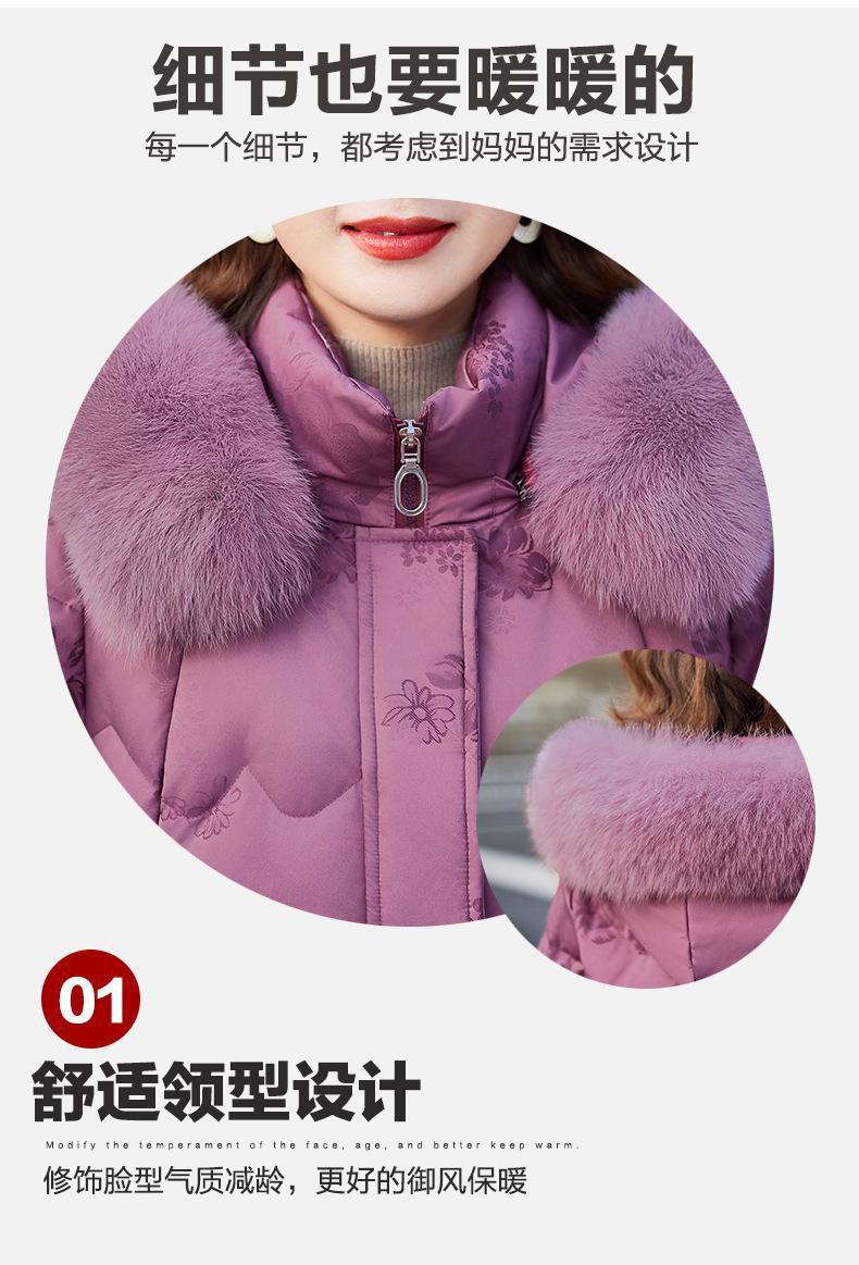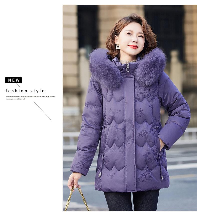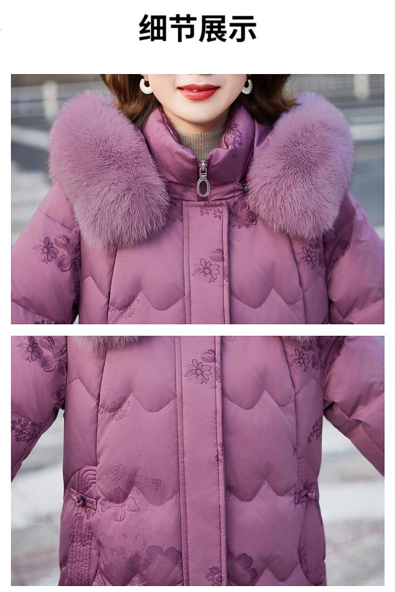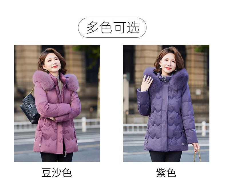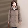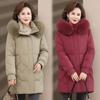 Chaqueta de plumón de invierno gruesa de longitud media para ropa de mujer de mediana edad y anciana 2024 nuevo abrigo de plumón de pato blanco con cuello de piel de zorro