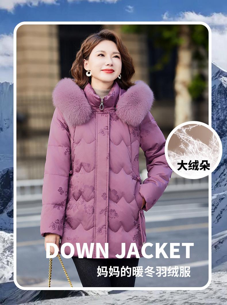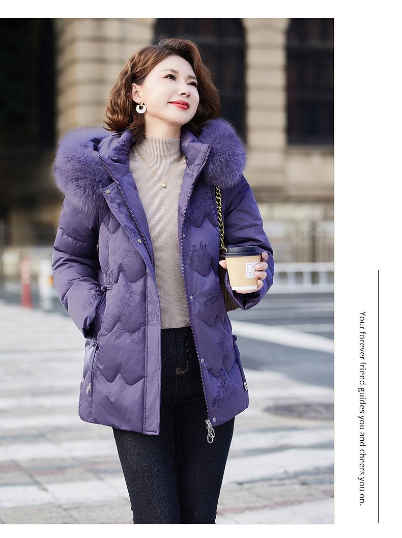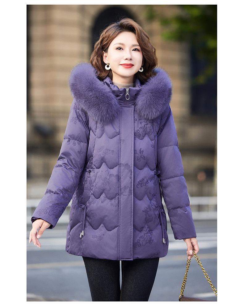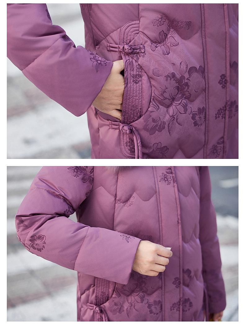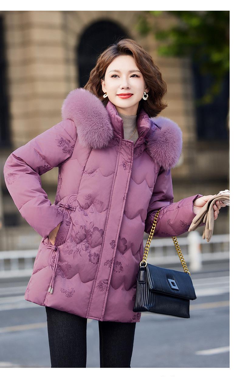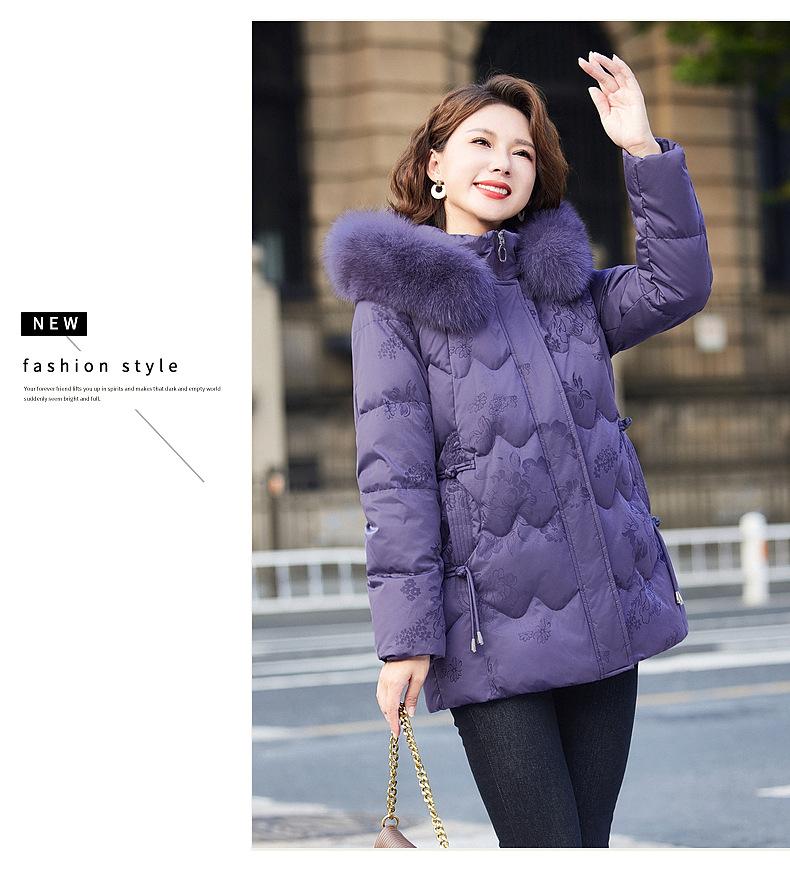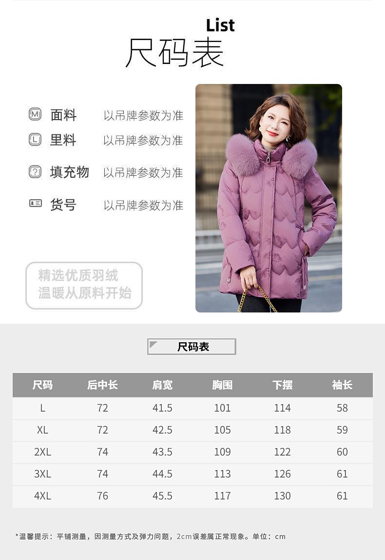 Chaqueta de plumón de invierno gruesa de longitud media para ropa de mujer de mediana edad y anciana 2024 nuevo abrigo de plumón de pato blanco con cuello de piel de zorro