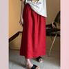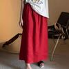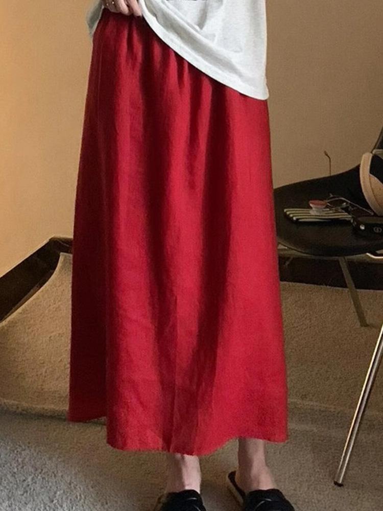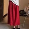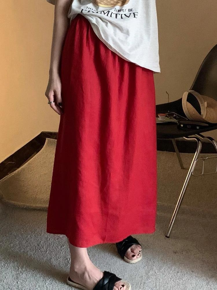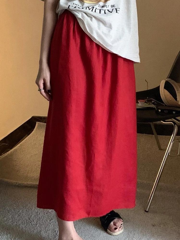 Verano Nueva Falda Roja de Lino Falda de Mujer Pequeña Delgada a la Moda Falda Línea A Falda Anti-Transpirable