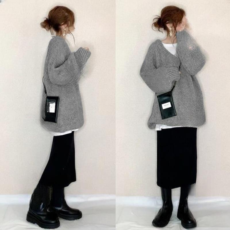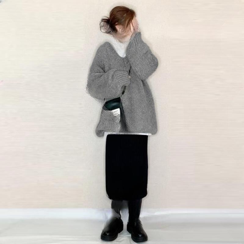 Conjunto de dos piezas con suéter y falda recta con cuello en V, otoño 2024, disponible en Japón