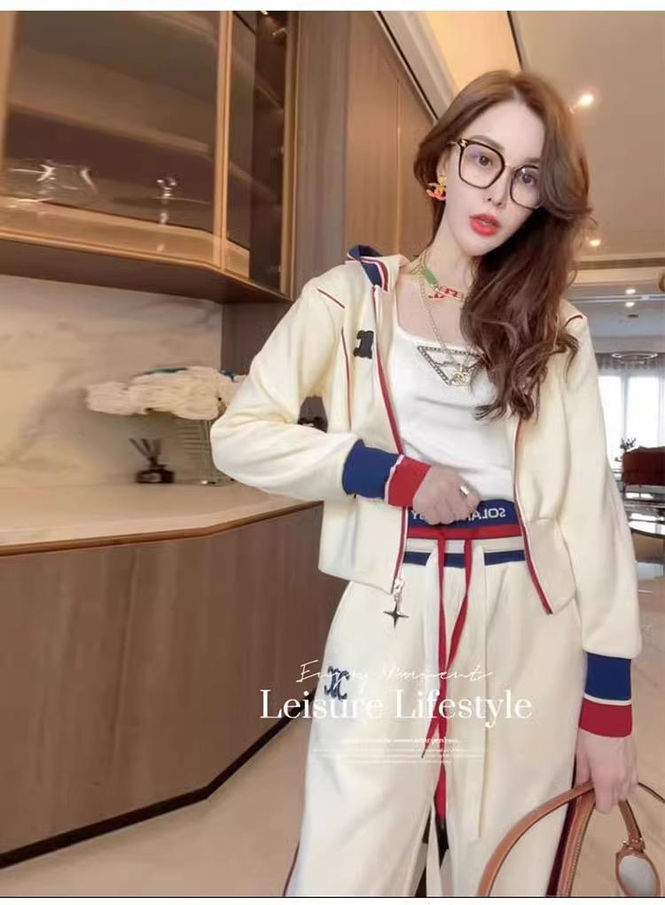 Traje Europeo de Ropa Deportiva Urbana para Mujer 2024 Nueva Moda de Primavera y Otoño Ropa Casual Popular Sudadera y Pantalones de Chándal