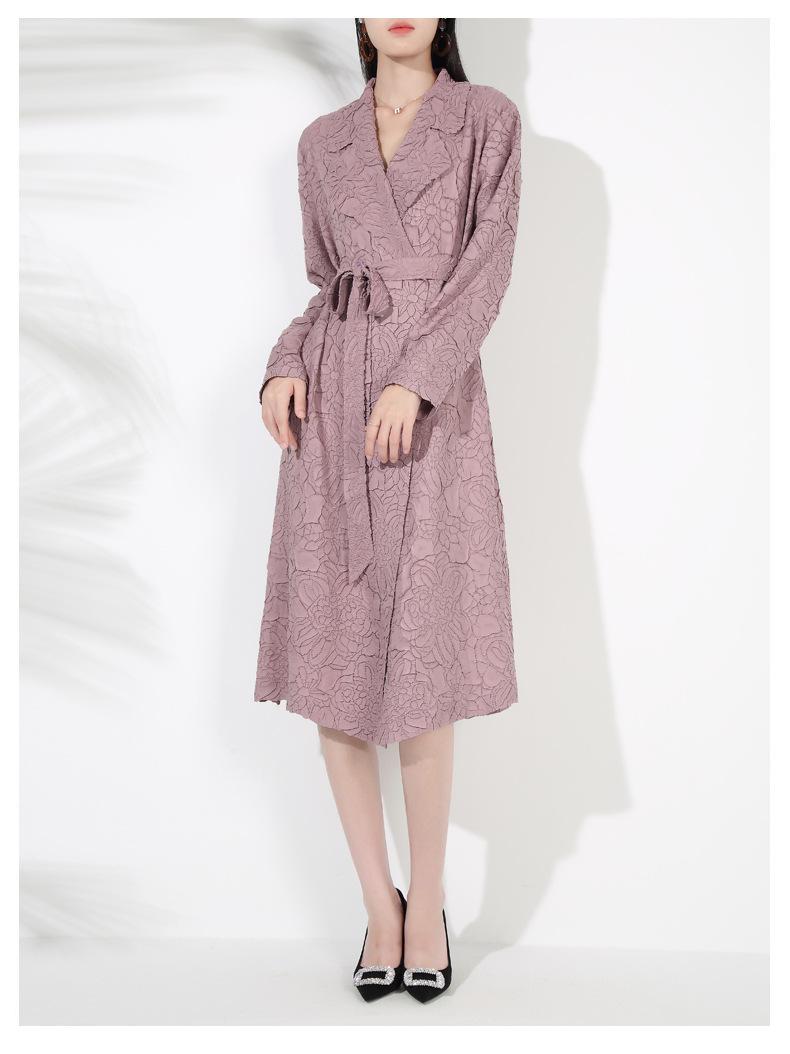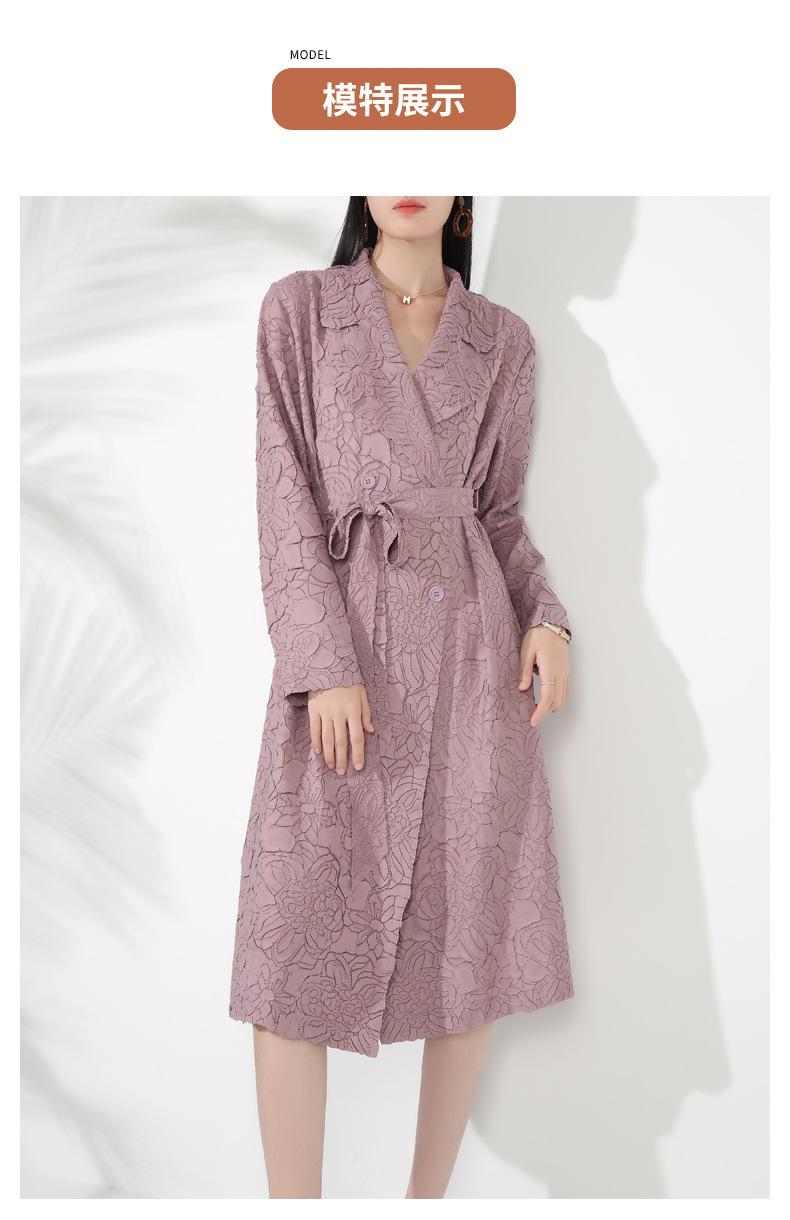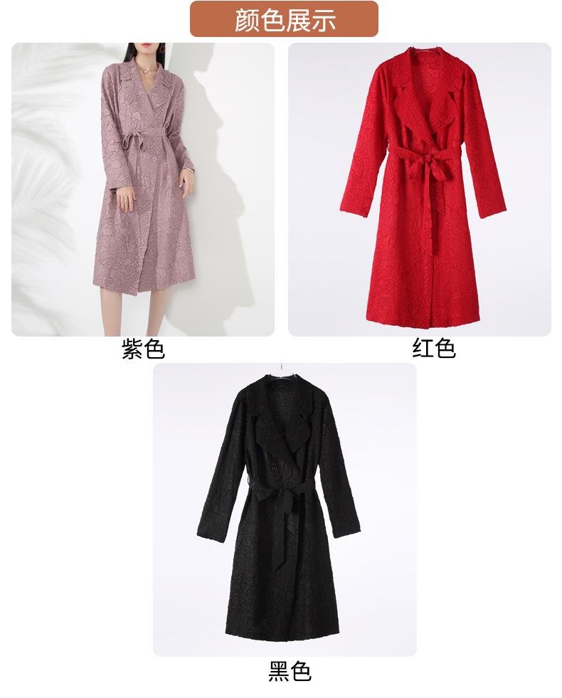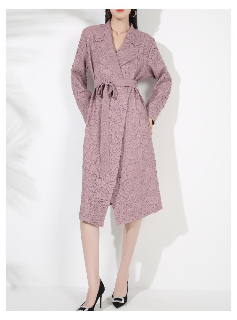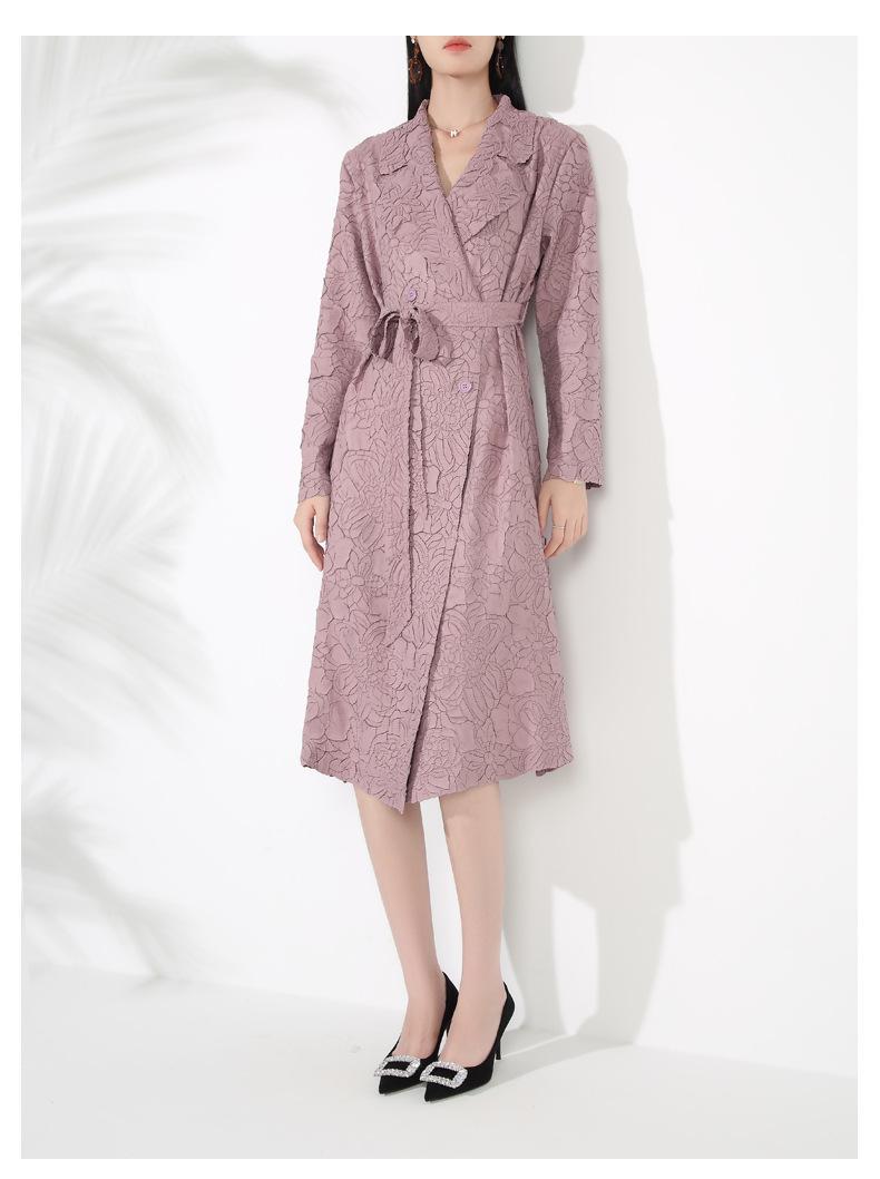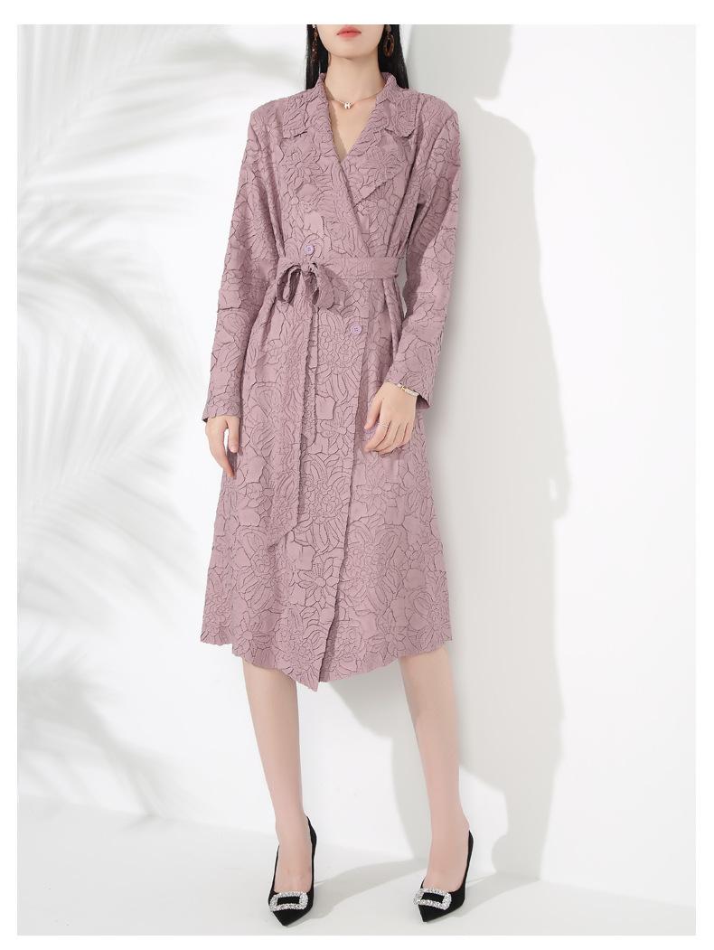 Abrigo de traje plisado cruzado con cuello y relieve resistente para mujer, elegante abrigo de cintura media con cordones