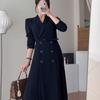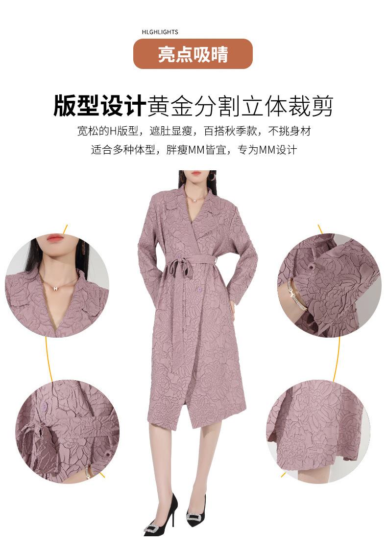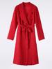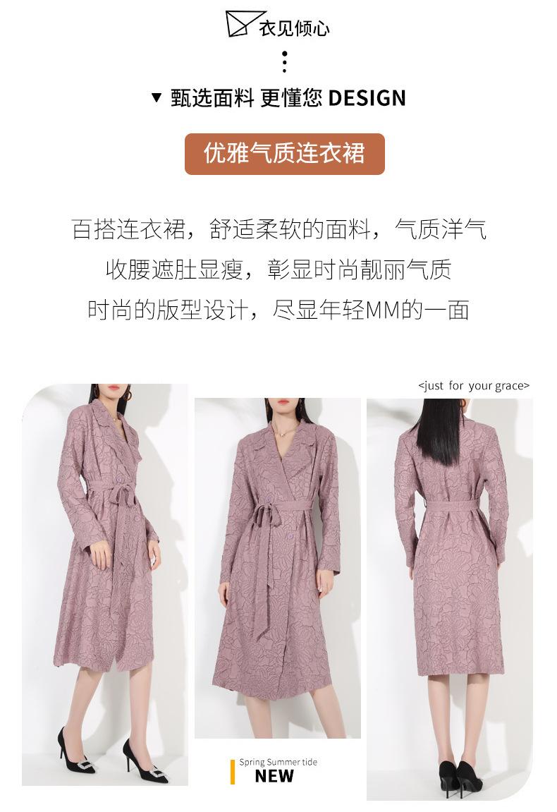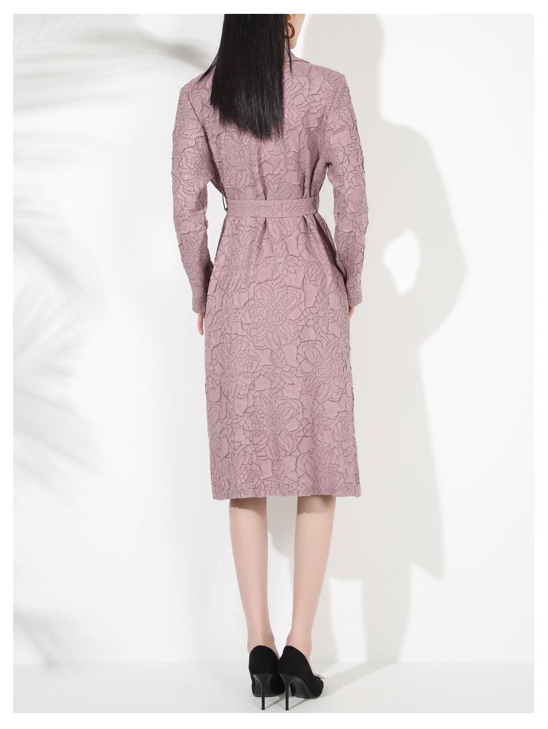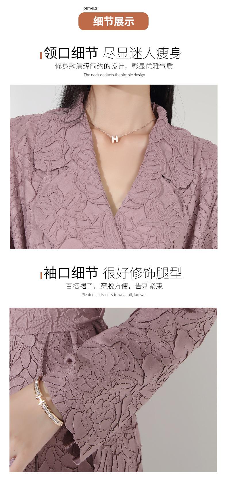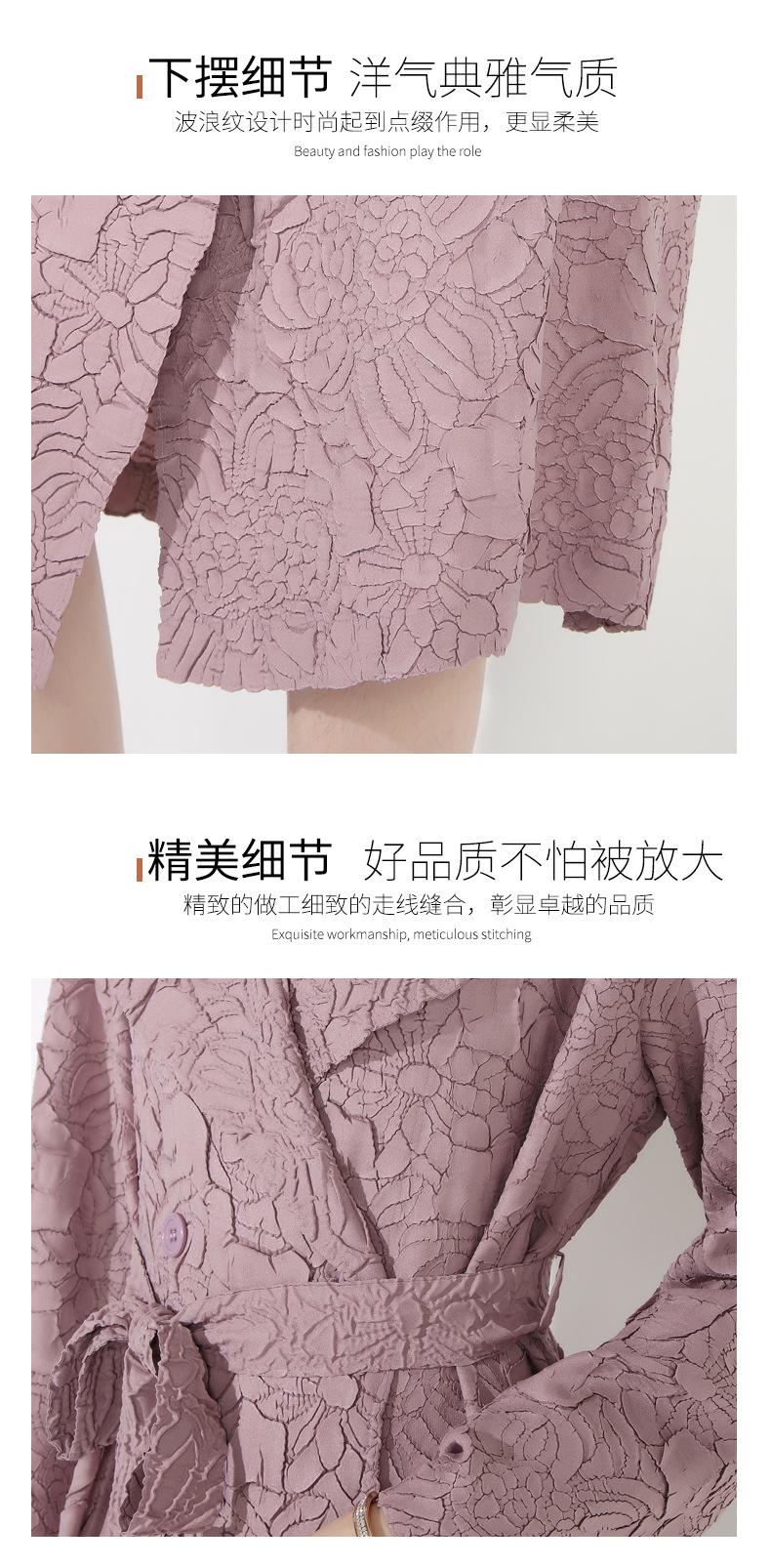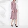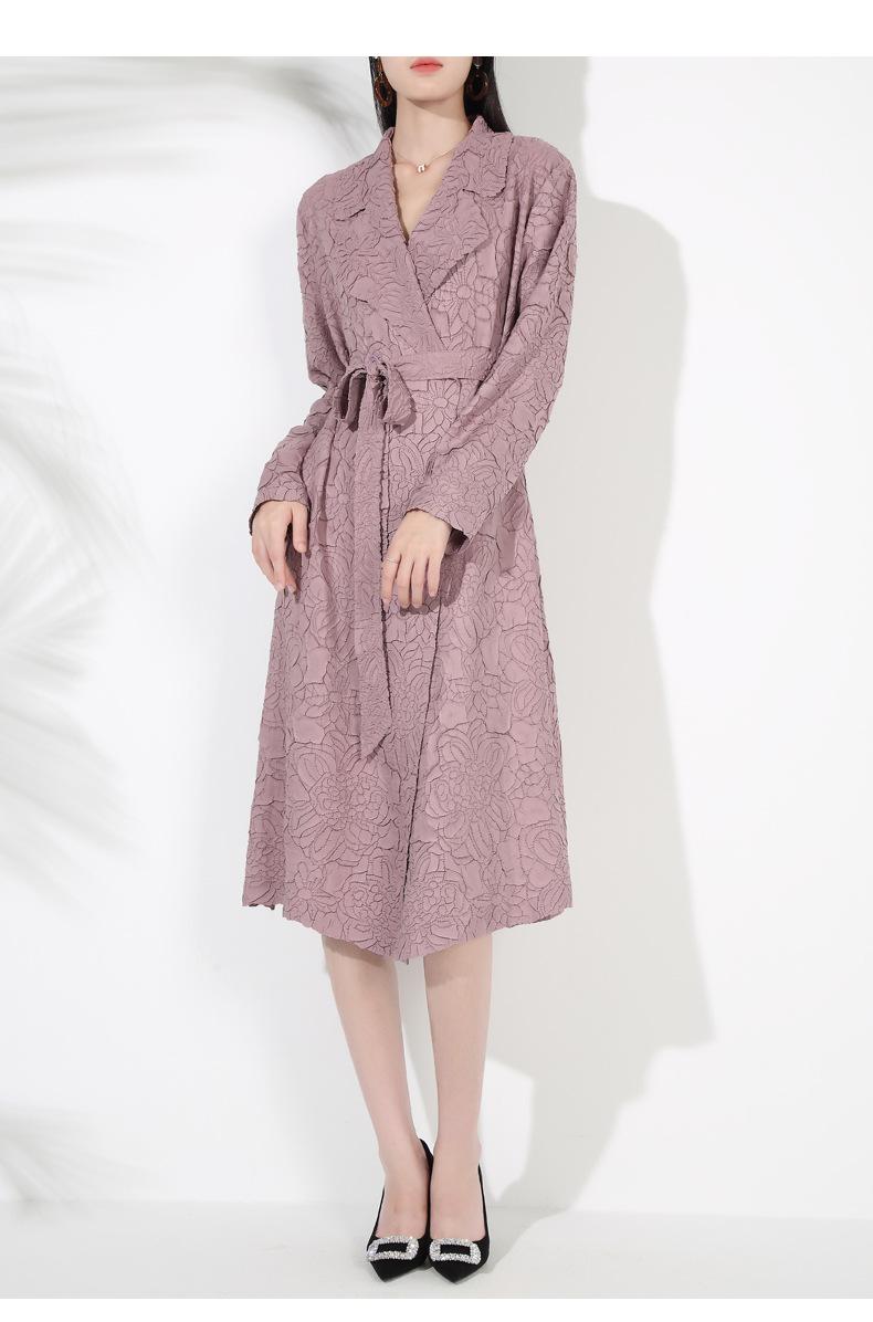 Abrigo de traje plisado cruzado con cuello y relieve resistente para mujer, elegante abrigo de cintura media con cordones