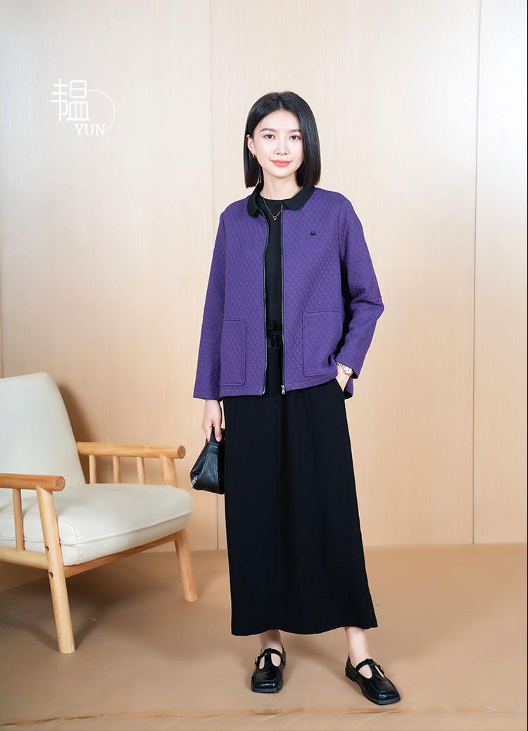 Selección Estricta de YUN Yun 2025 Primavera y Otoño Nuevo Elegante Casual para Mujer Solapa Lasel Cremallera Jacquard Chaqueta Corta de Manga Larga