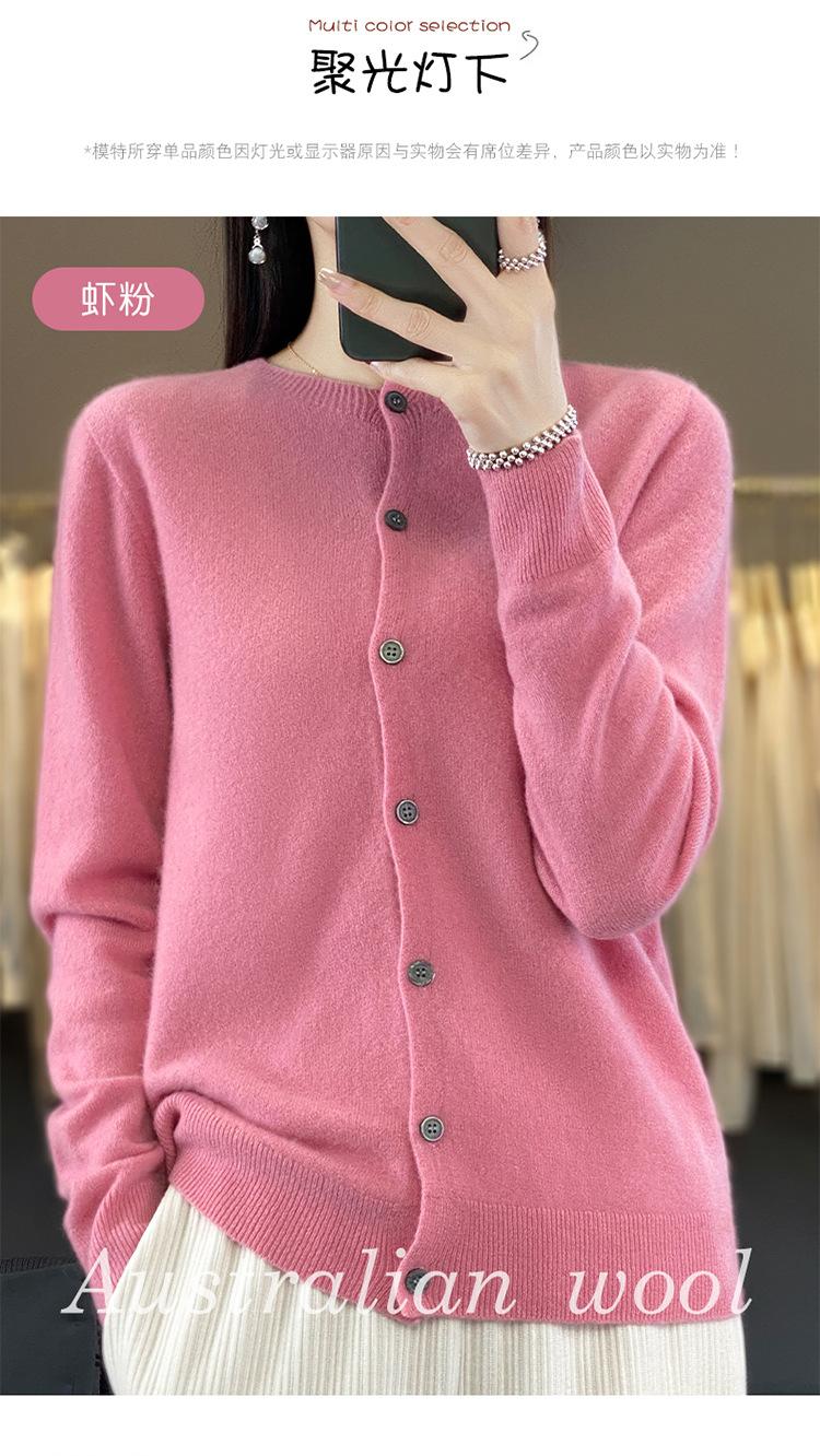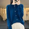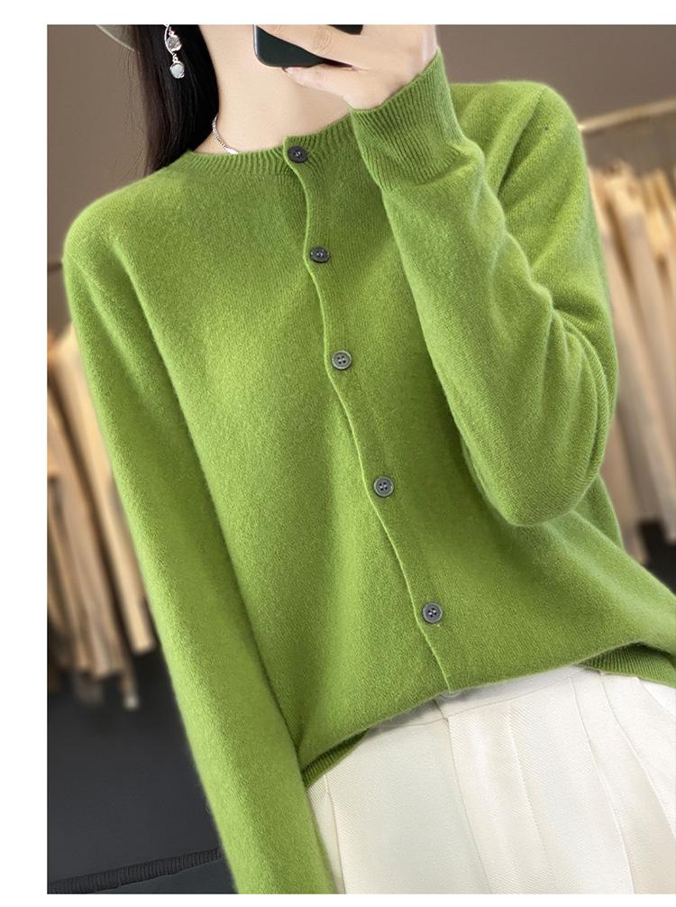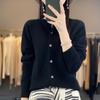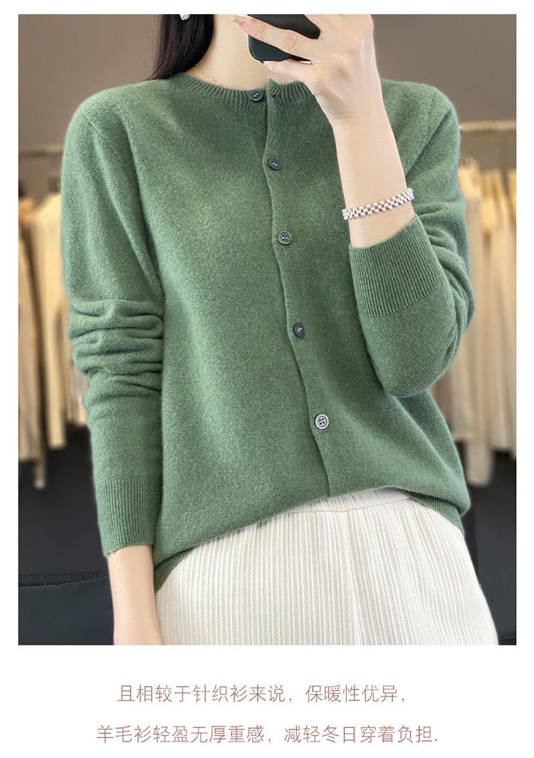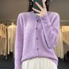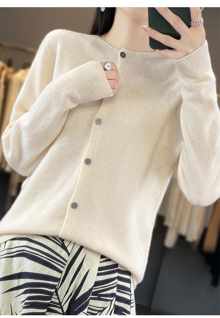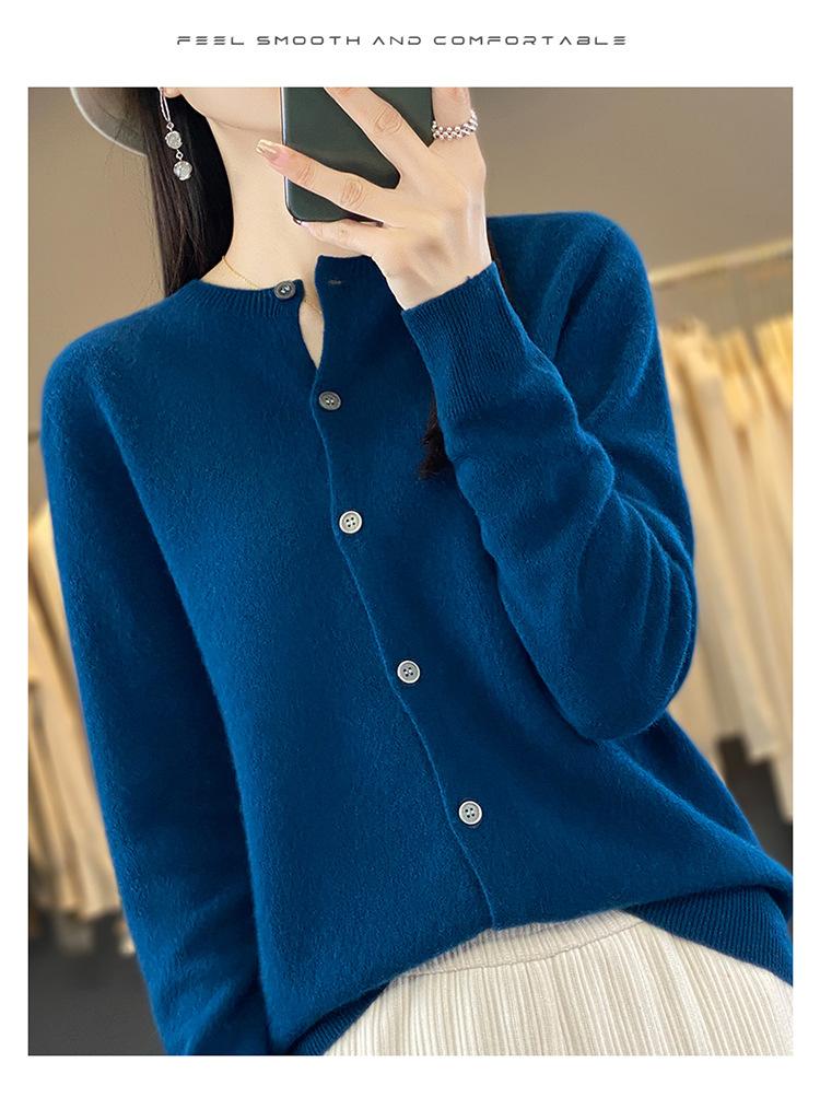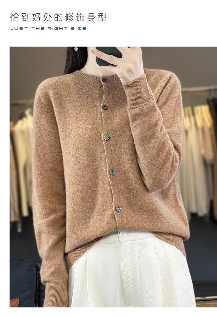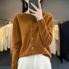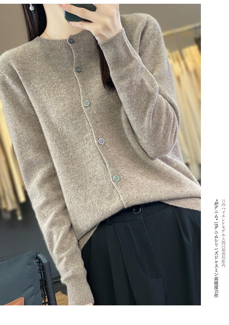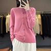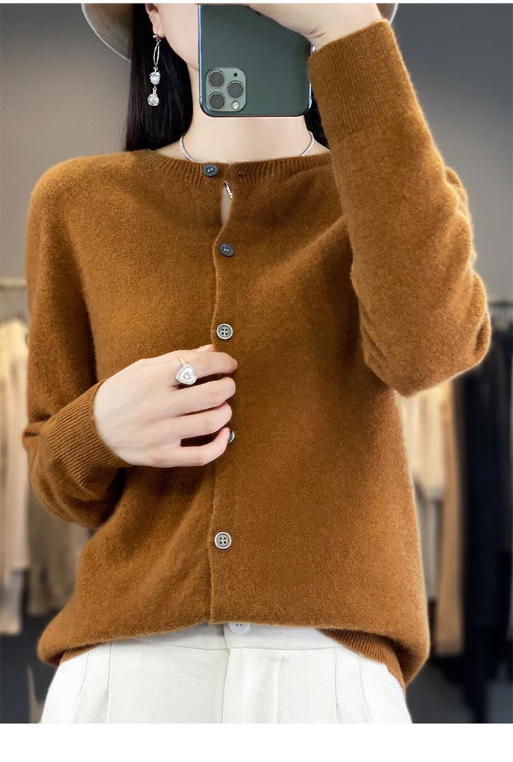 Cárdigan de punto de cuello redondo 100% lana para mujer, abrigo de punto ajustado, suéter Joker, otoño e invierno, venta al por mayor de fábrica