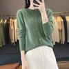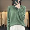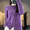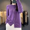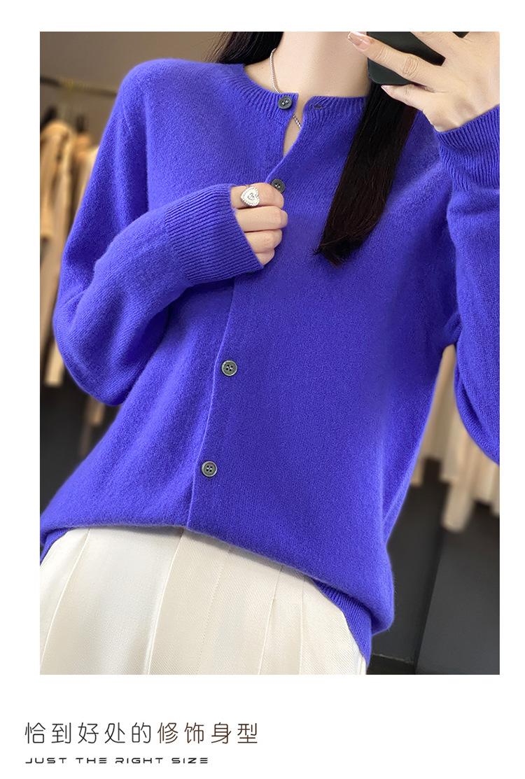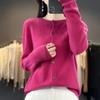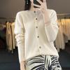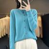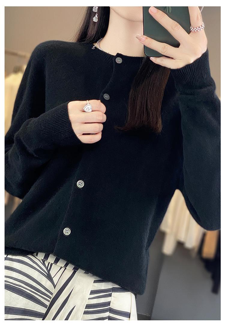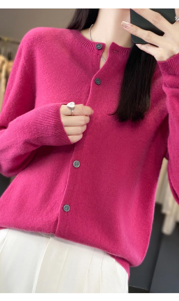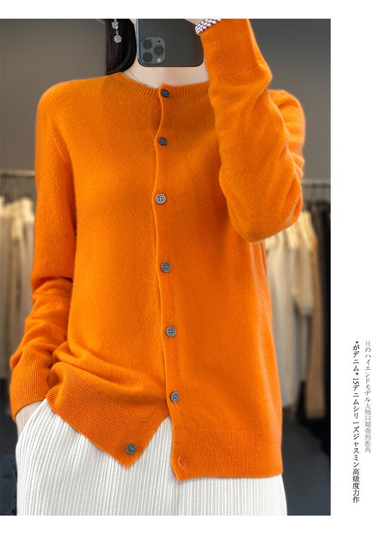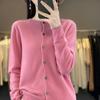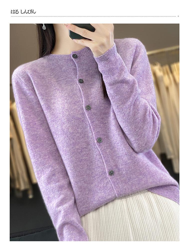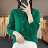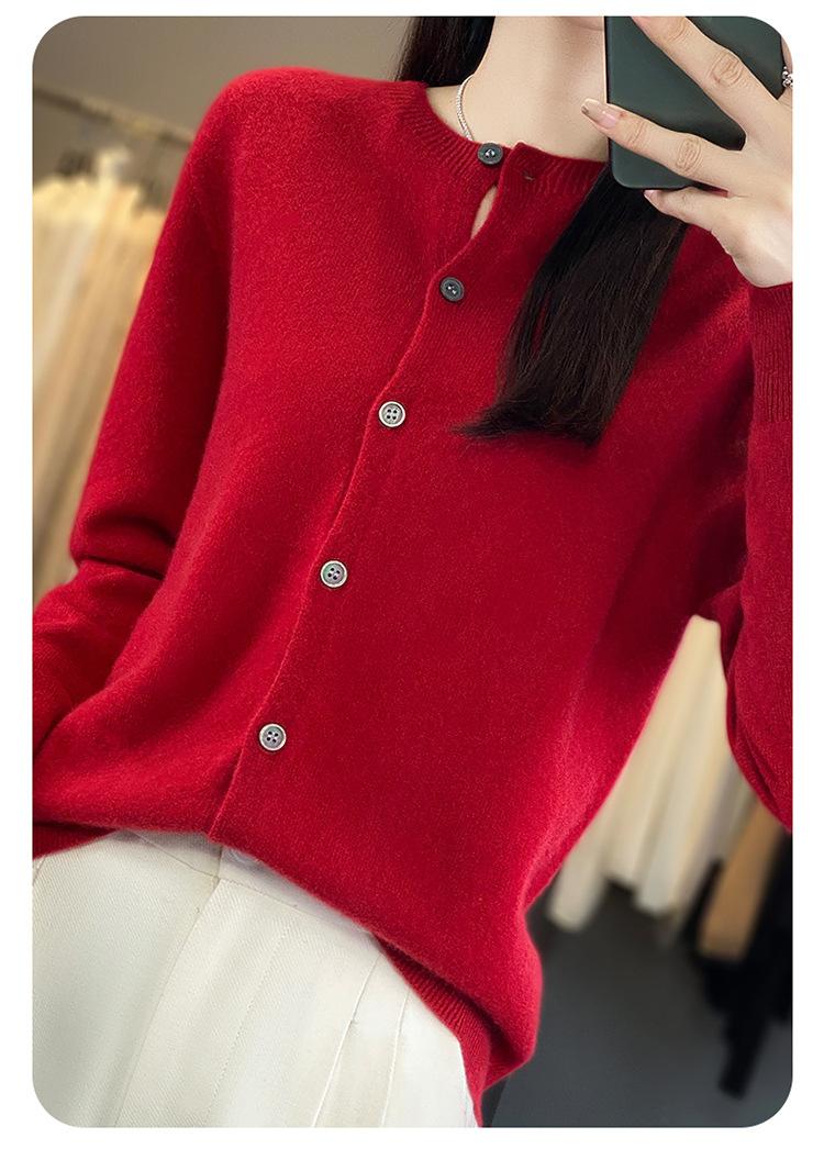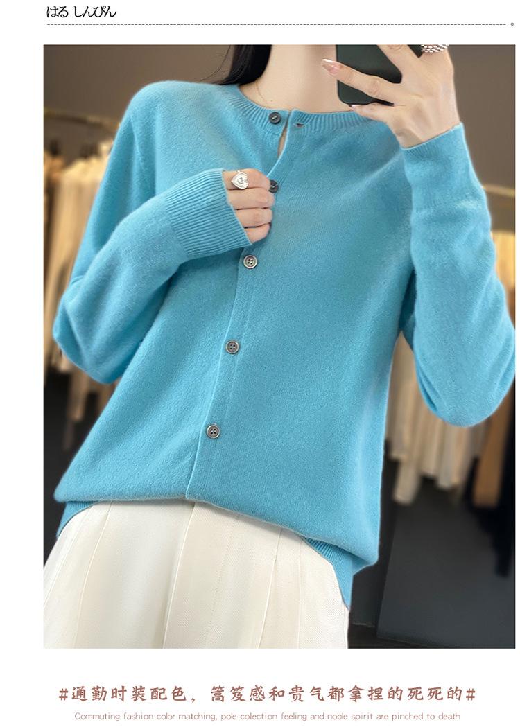 Cárdigan de punto de cuello redondo 100% lana para mujer, abrigo de punto ajustado, suéter Joker, otoño e invierno, venta al por mayor de fábrica