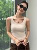 2025 Nuevo Camisón Versátil Simple de Color Sólido con Cuello Redondo Elástico sin Mangas de Punto Cachemira Único y Chic