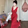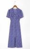 Vestido de falda lencero estilo americano para mujer, estilo retro, escote en V, doble hombro, con cordones, corte entallado, cintura alta, estilo playero, para vacaciones, corte A, estampado