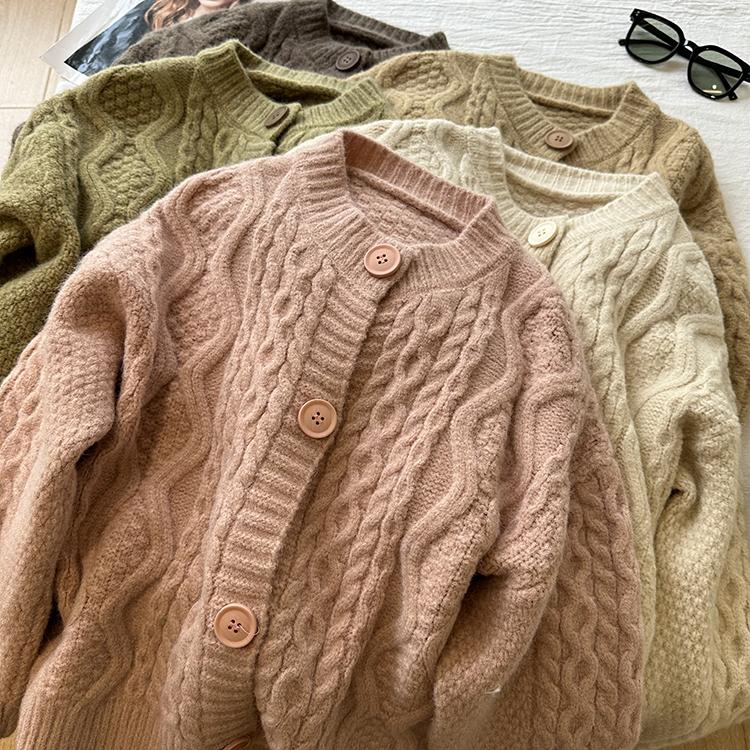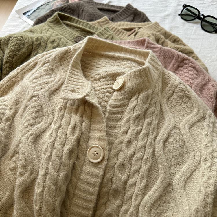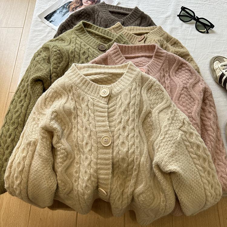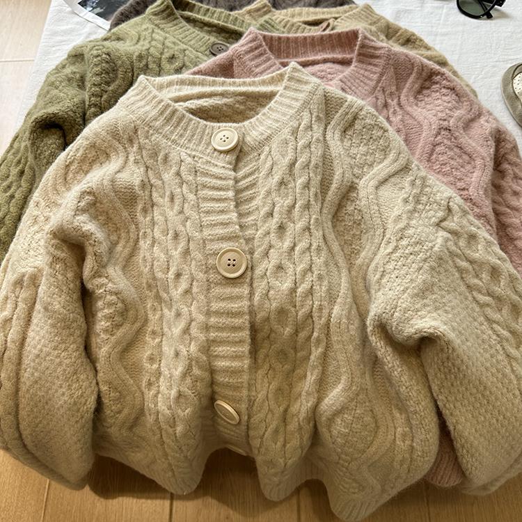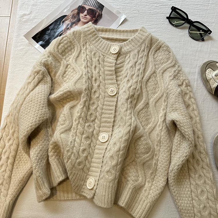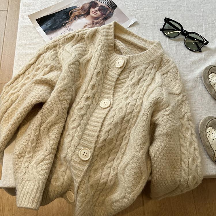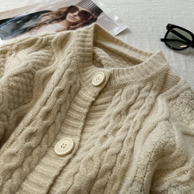 Cárdigan de punto corto vintage suave y encerado para mujer, otoño e invierno, holgado, blanco, adelgazante