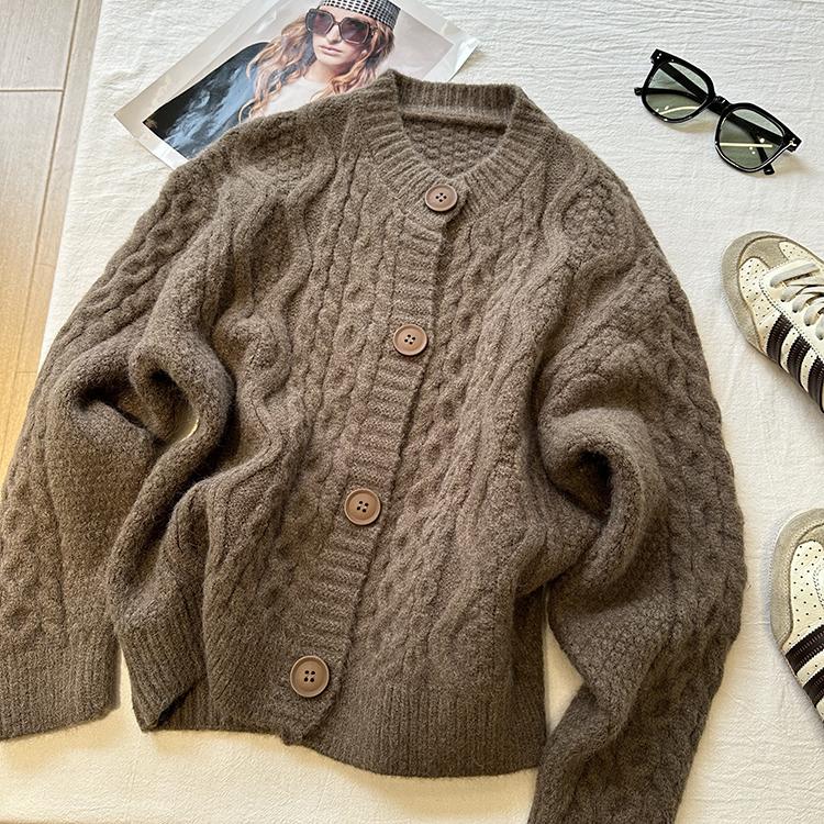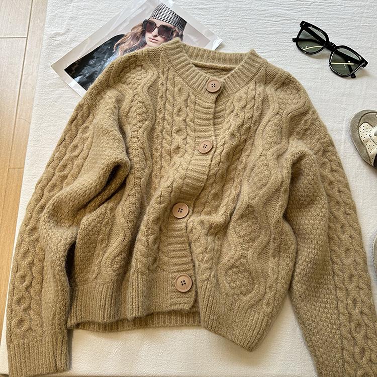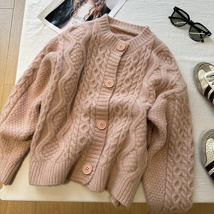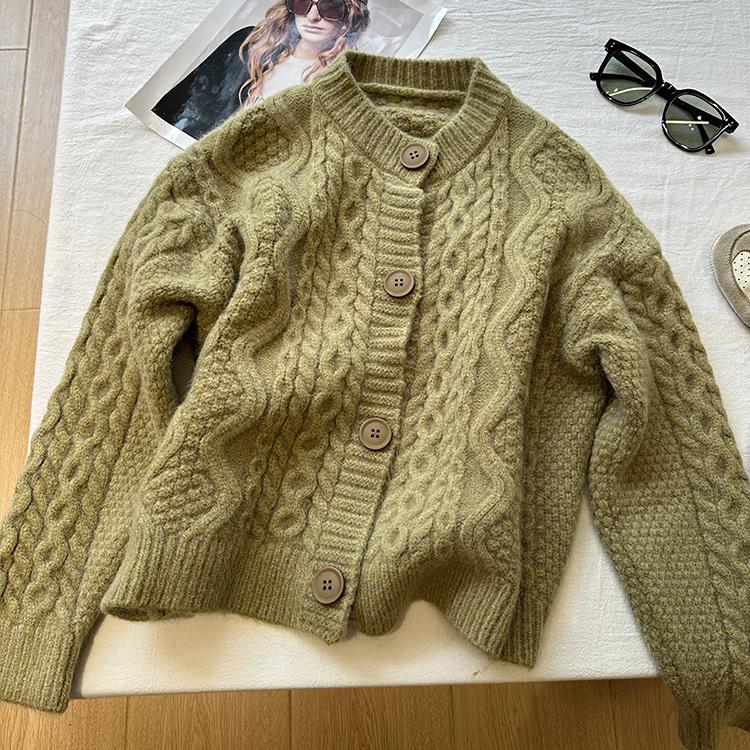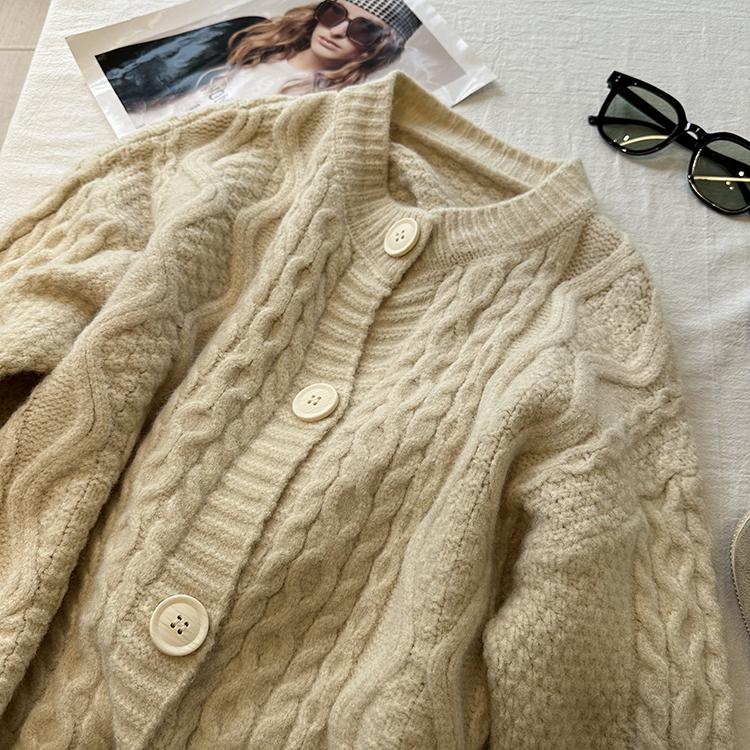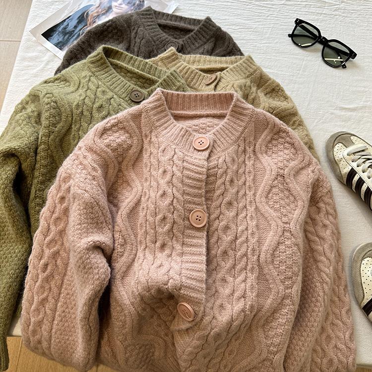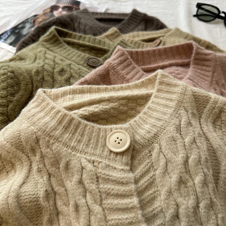 Cárdigan de punto corto vintage suave y encerado para mujer, otoño e invierno, holgado, blanco, adelgazante