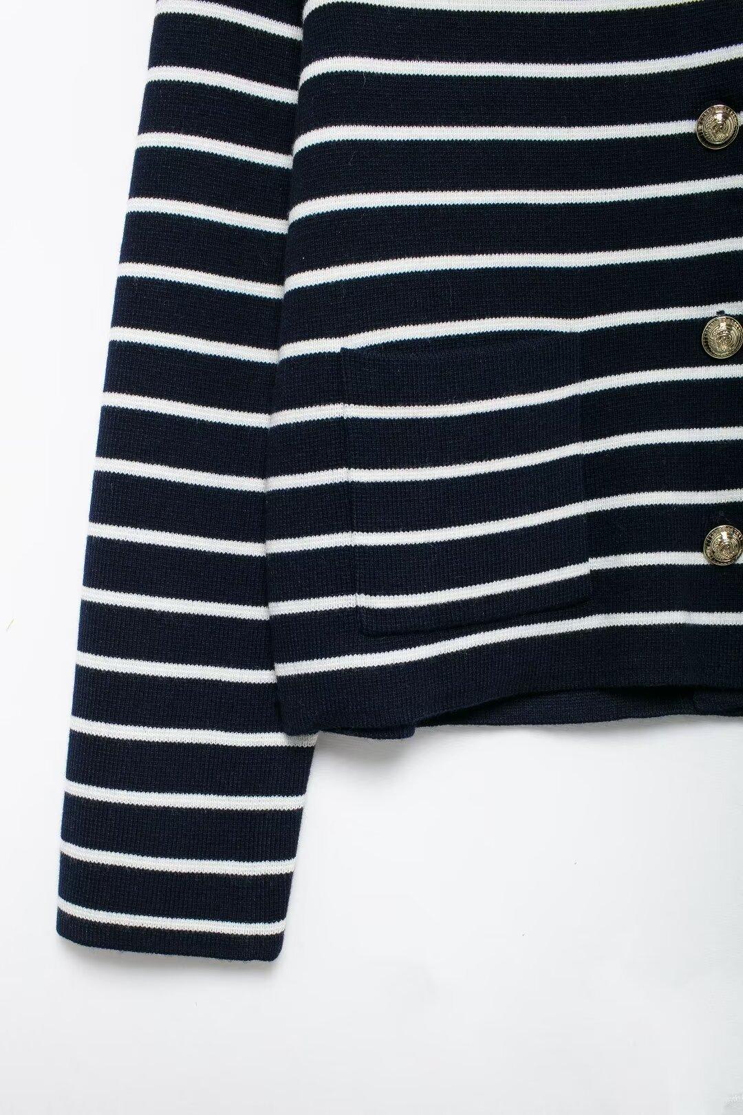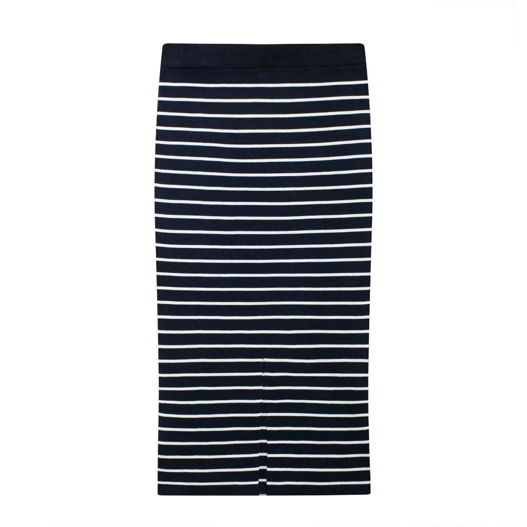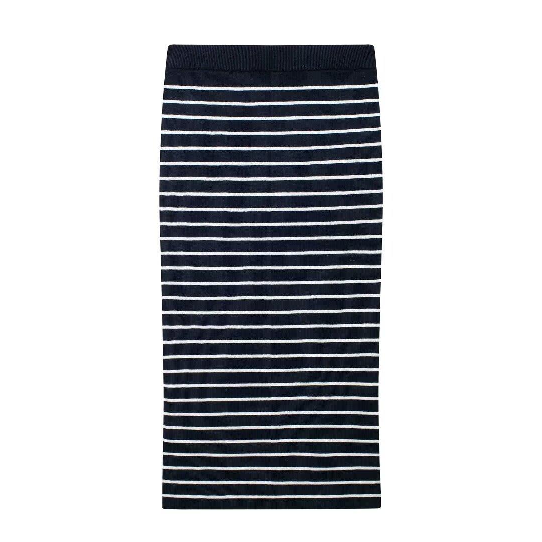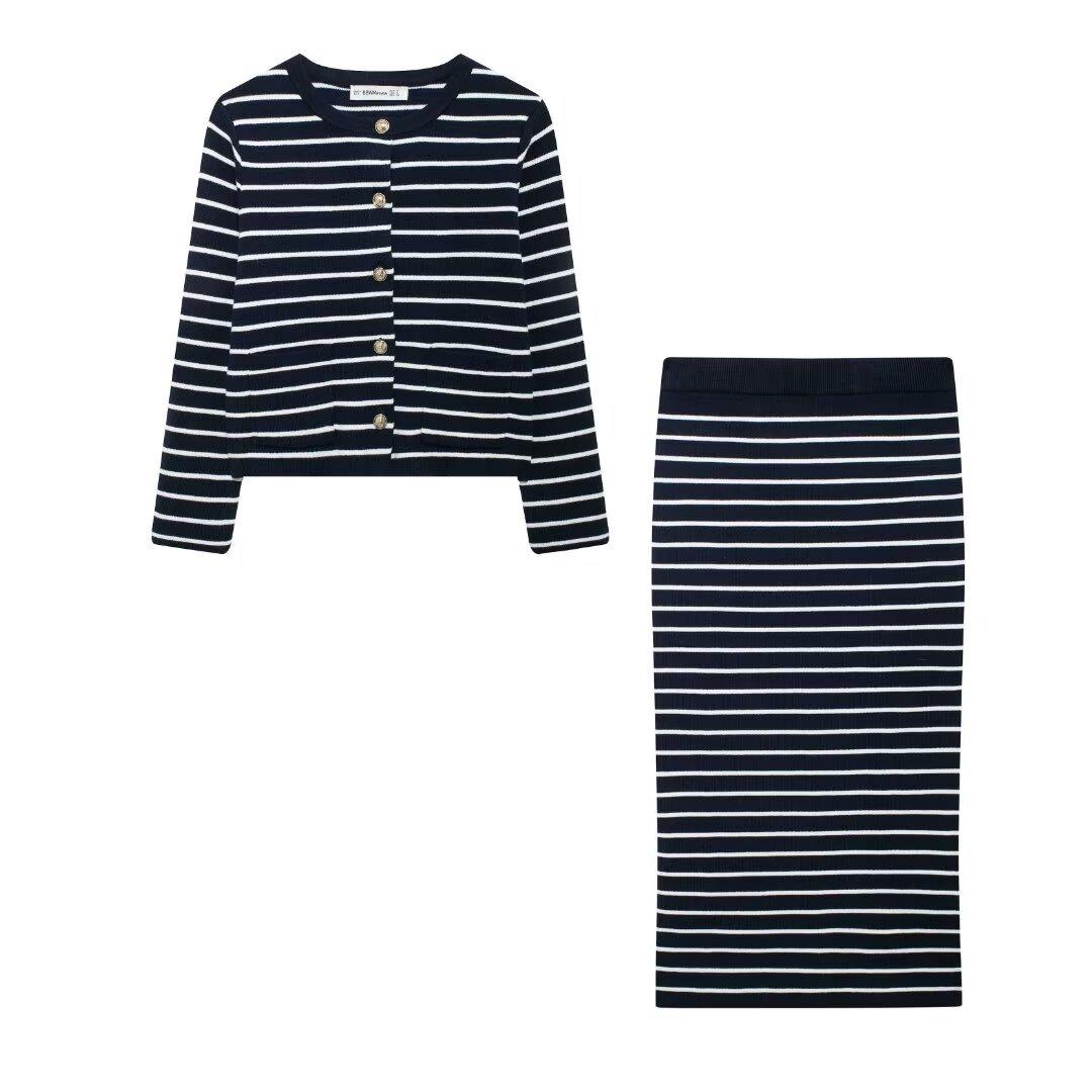 Comercio exterior transfronterizo de Amazon, ropa de mujer europea y americana, otoño e invierno 2024, nueva moda, abrigo de punto a rayas, falda, traje