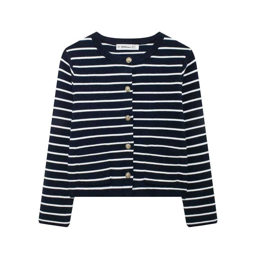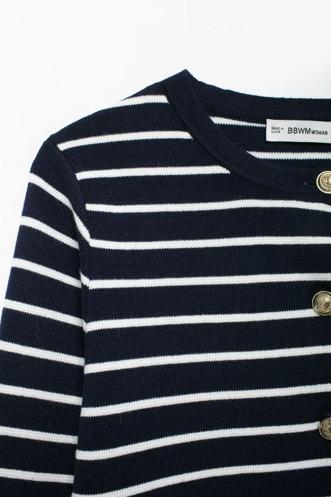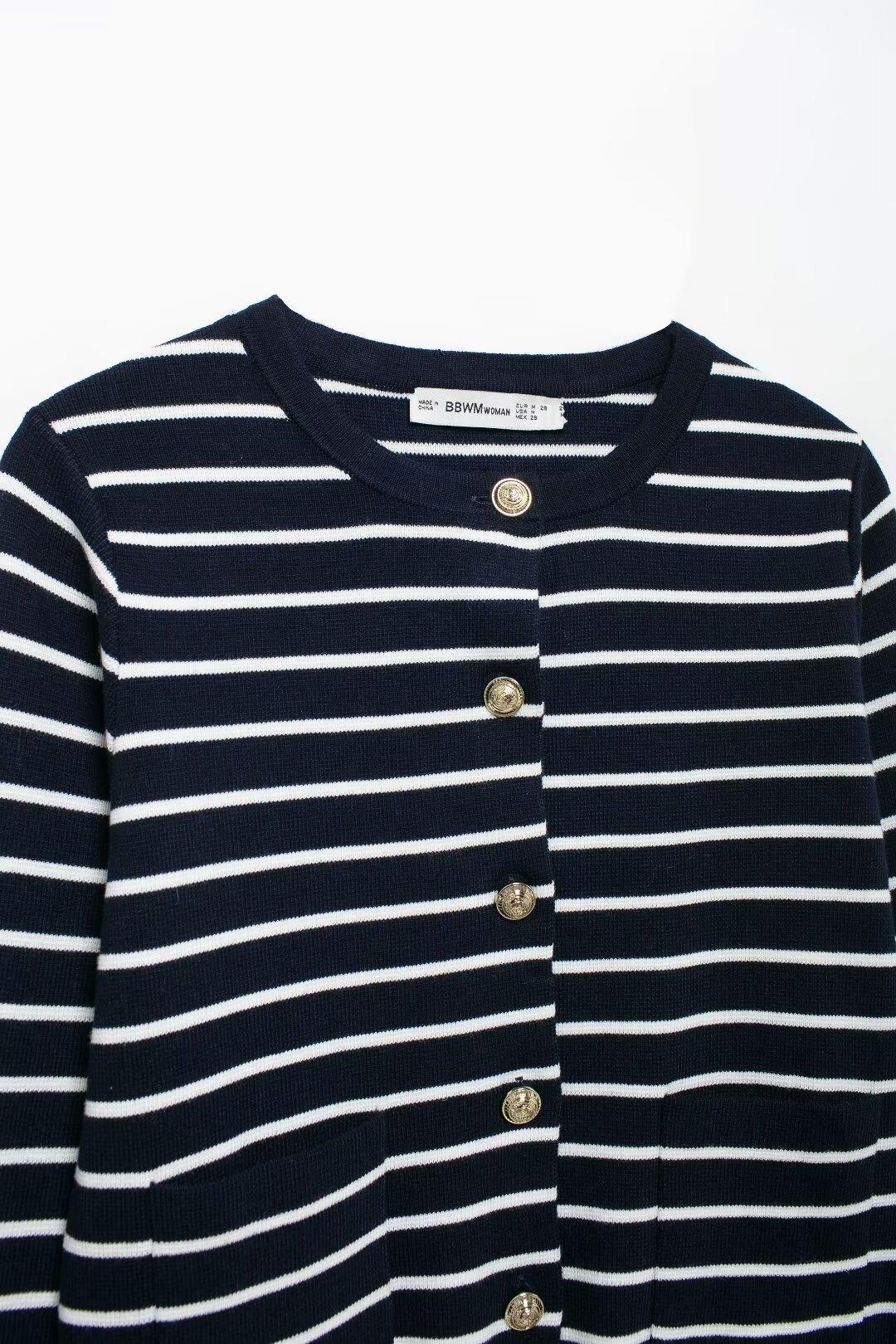 Comercio exterior transfronterizo de Amazon, ropa de mujer europea y americana, otoño e invierno 2024, nueva moda, abrigo de punto a rayas, falda, traje