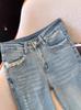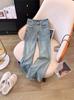 Pantalones vaqueros de cintura alta con diseño bordado y micro acampanados para mujer, otoño 2024, nuevos, ajustados, para chica gordita, ajustados, con diseño de herradura.