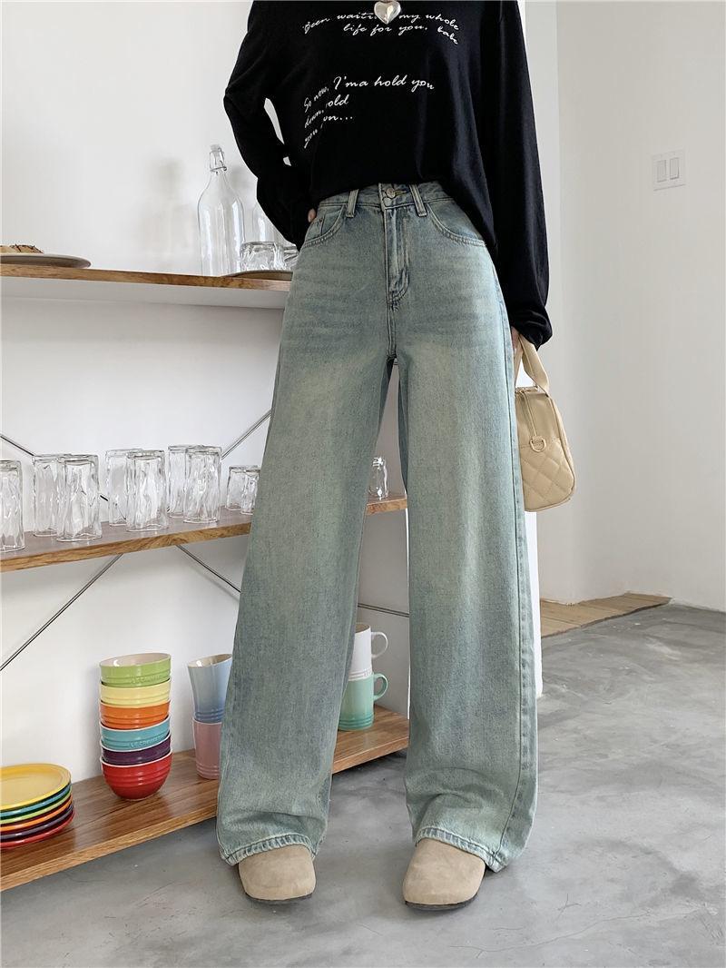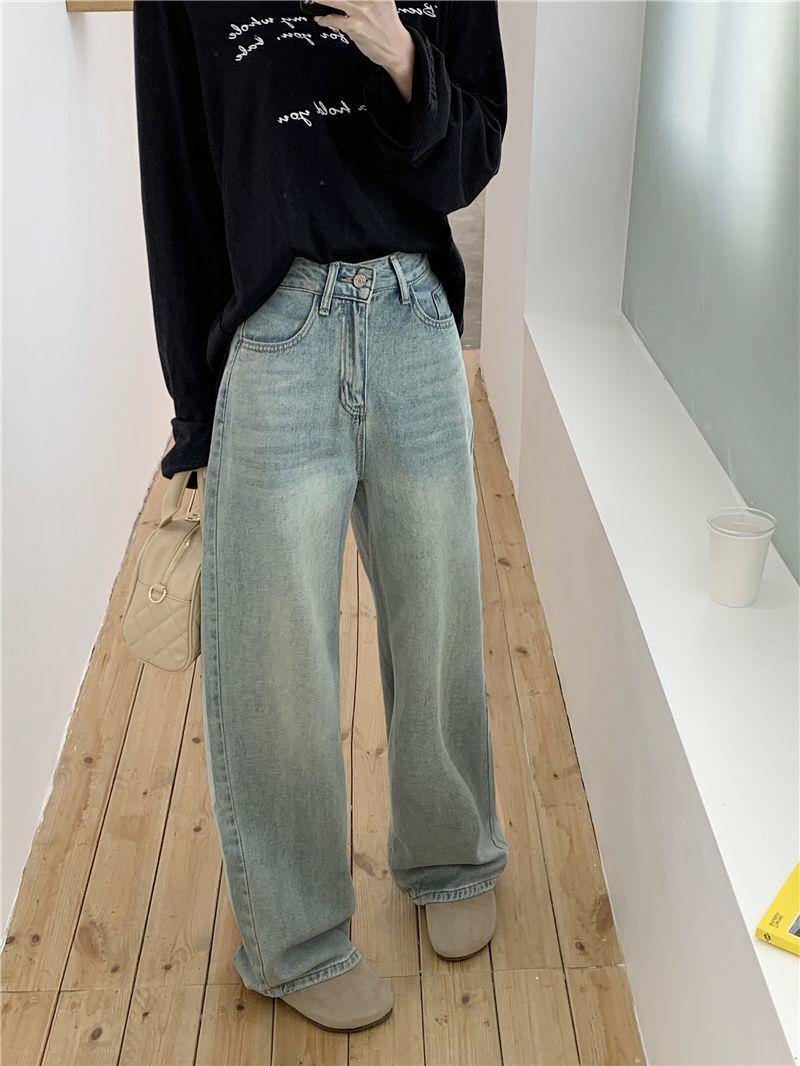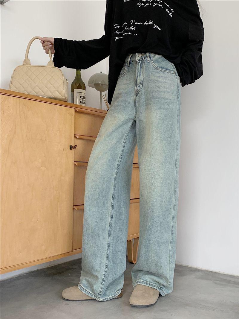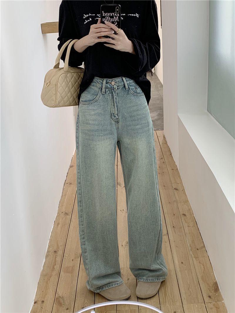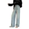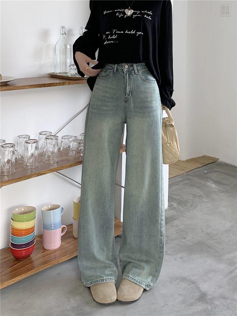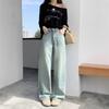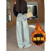 Jeans azul claro de pierna recta para mujer 2024 forrado de vellón Engrosado Niña gordita con forma de pera Cintura alta Adelgazante Pierna ancha Pantalones de piso