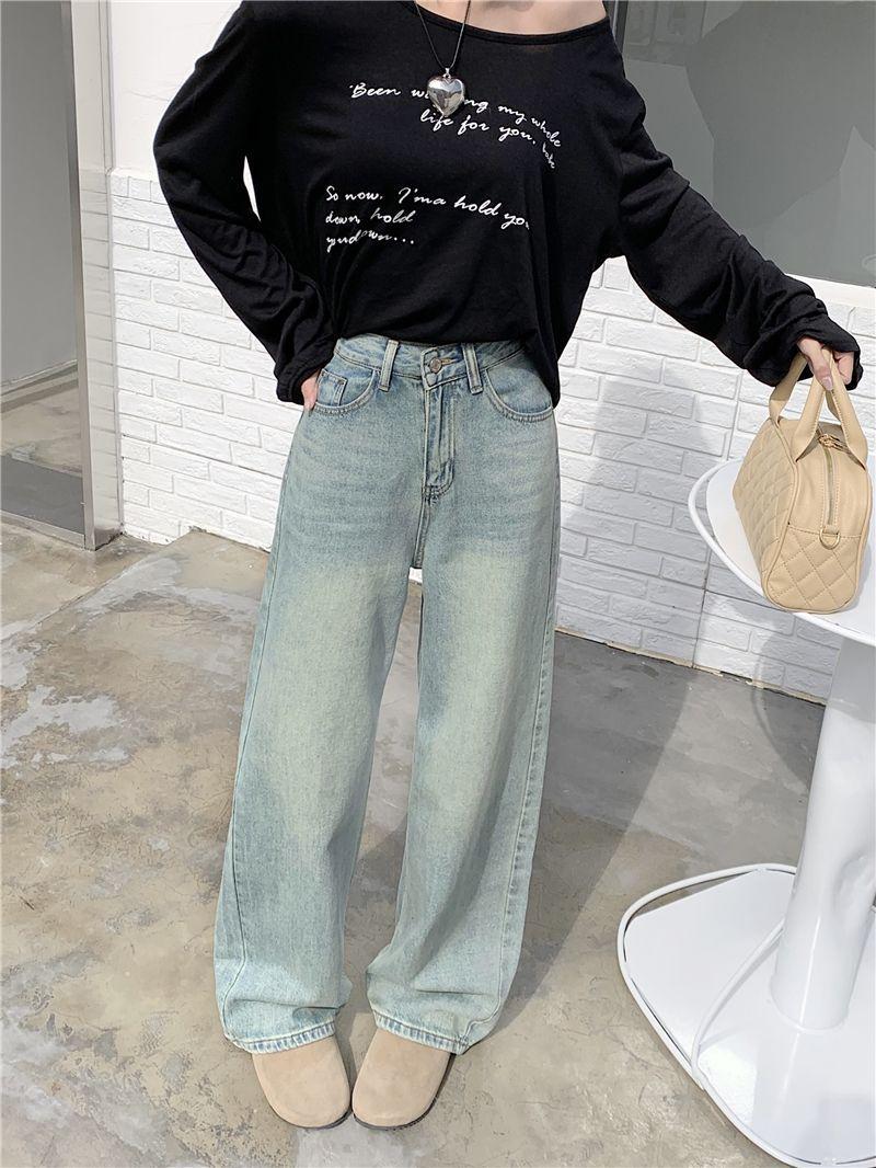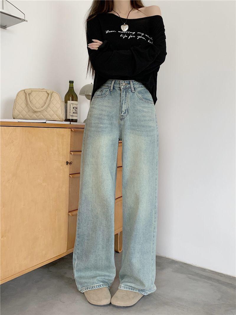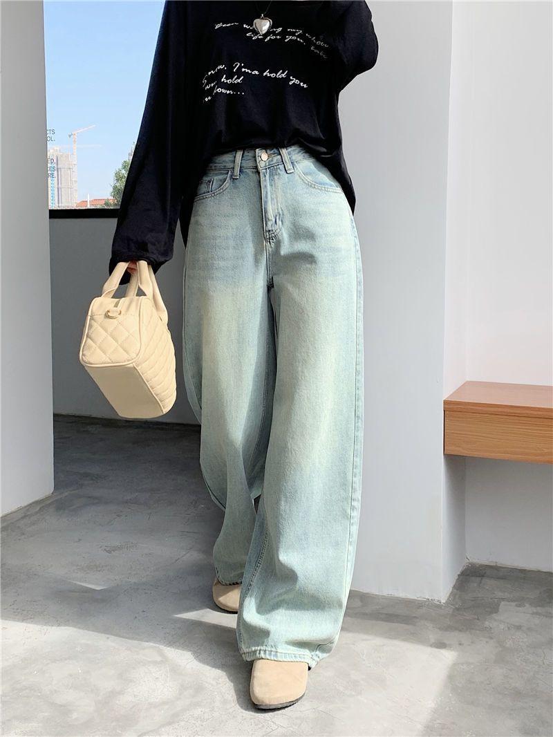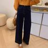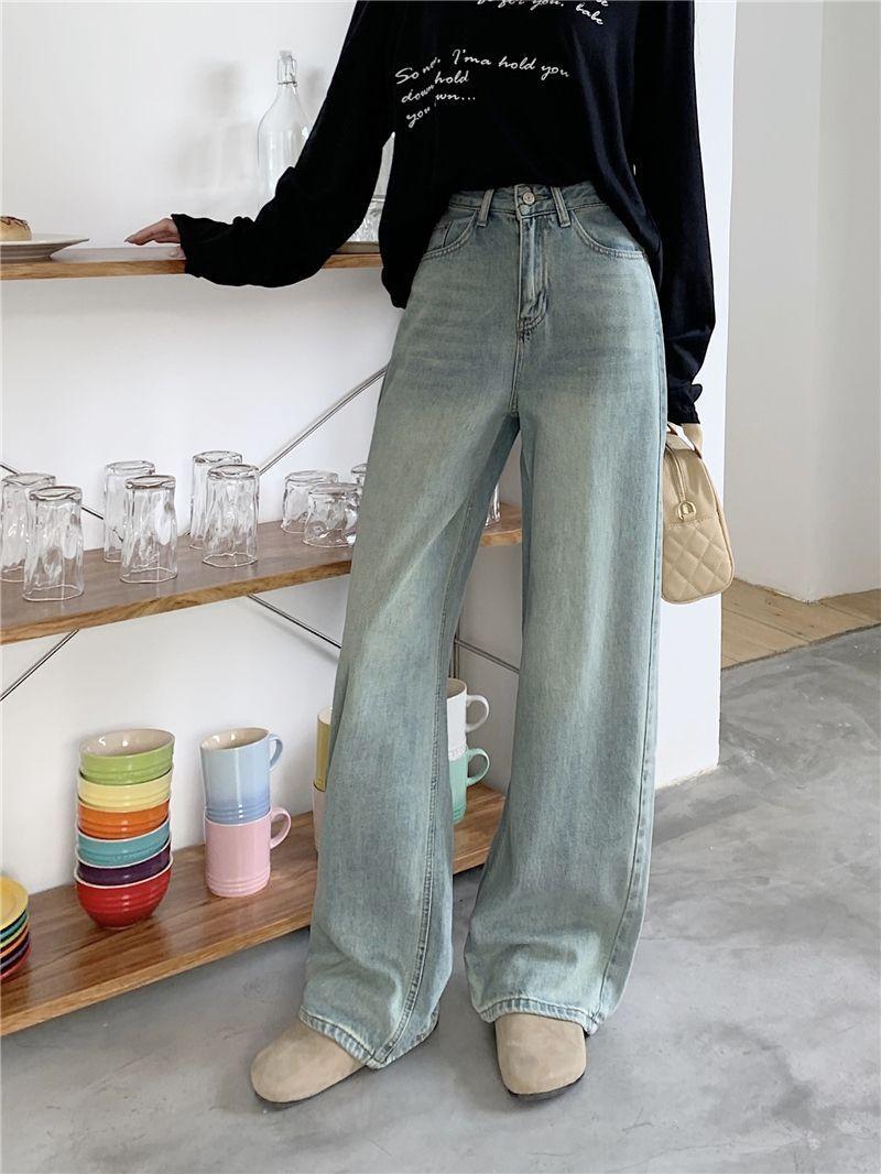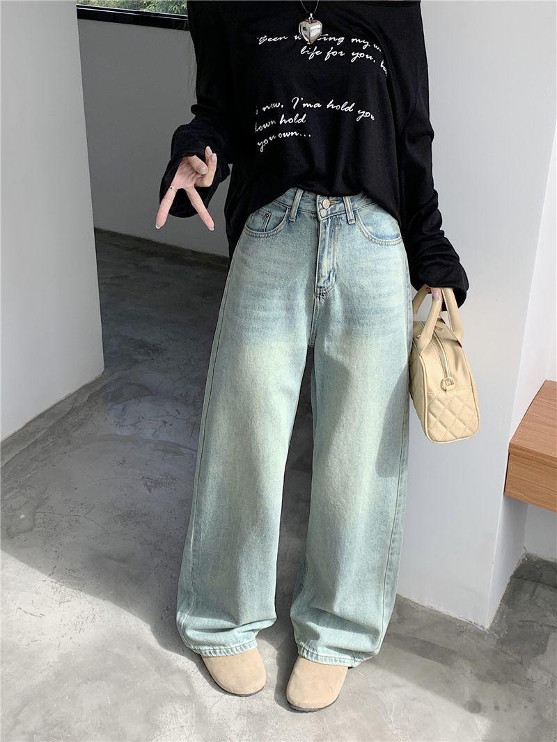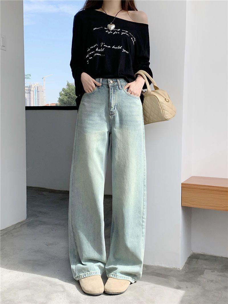 Jeans azul claro de pierna recta para mujer 2024 forrado de vellón Engrosado Niña gordita con forma de pera Cintura alta Adelgazante Pierna ancha Pantalones de piso