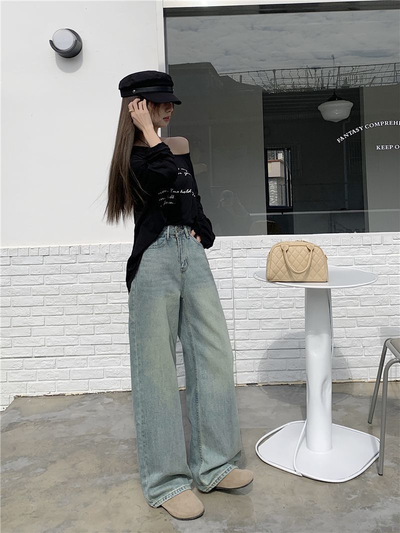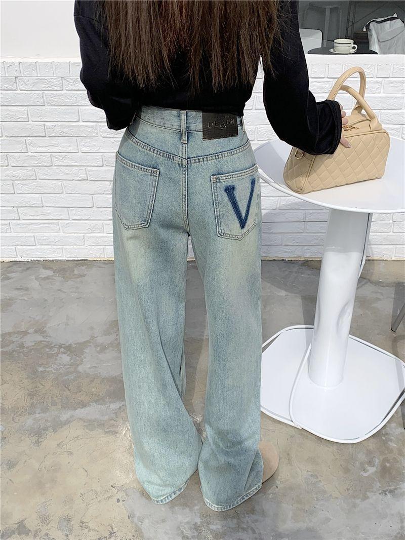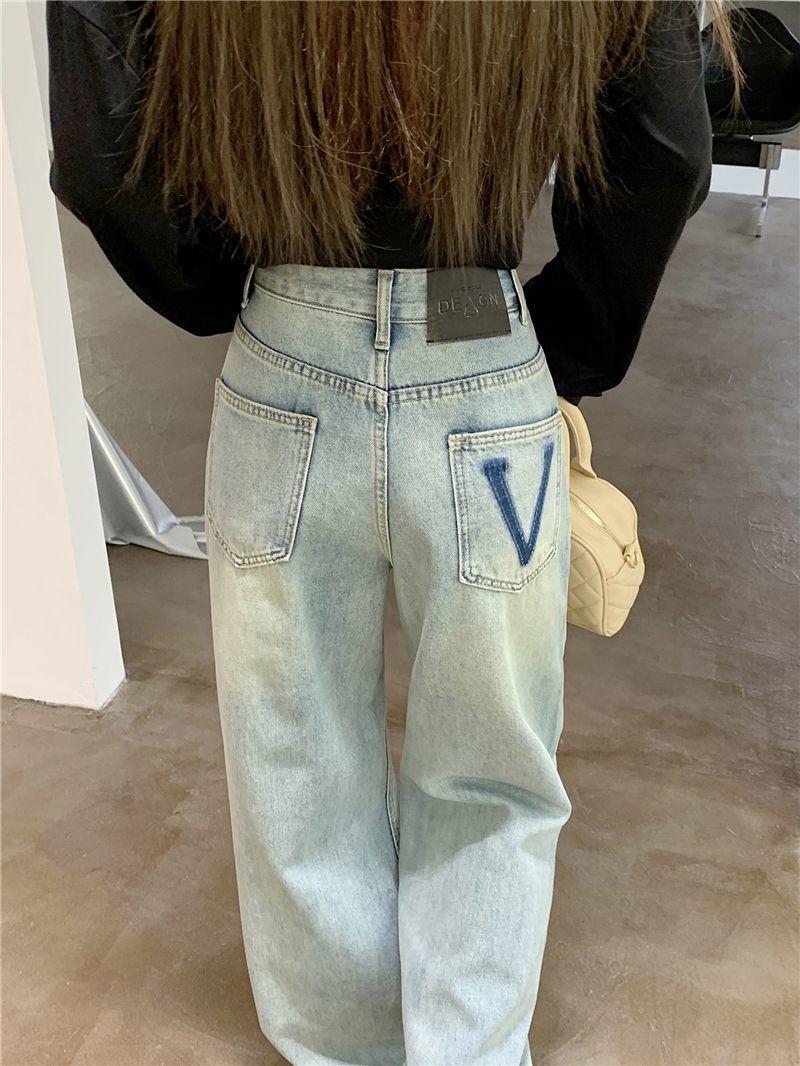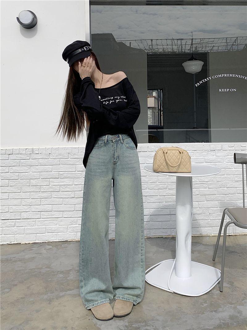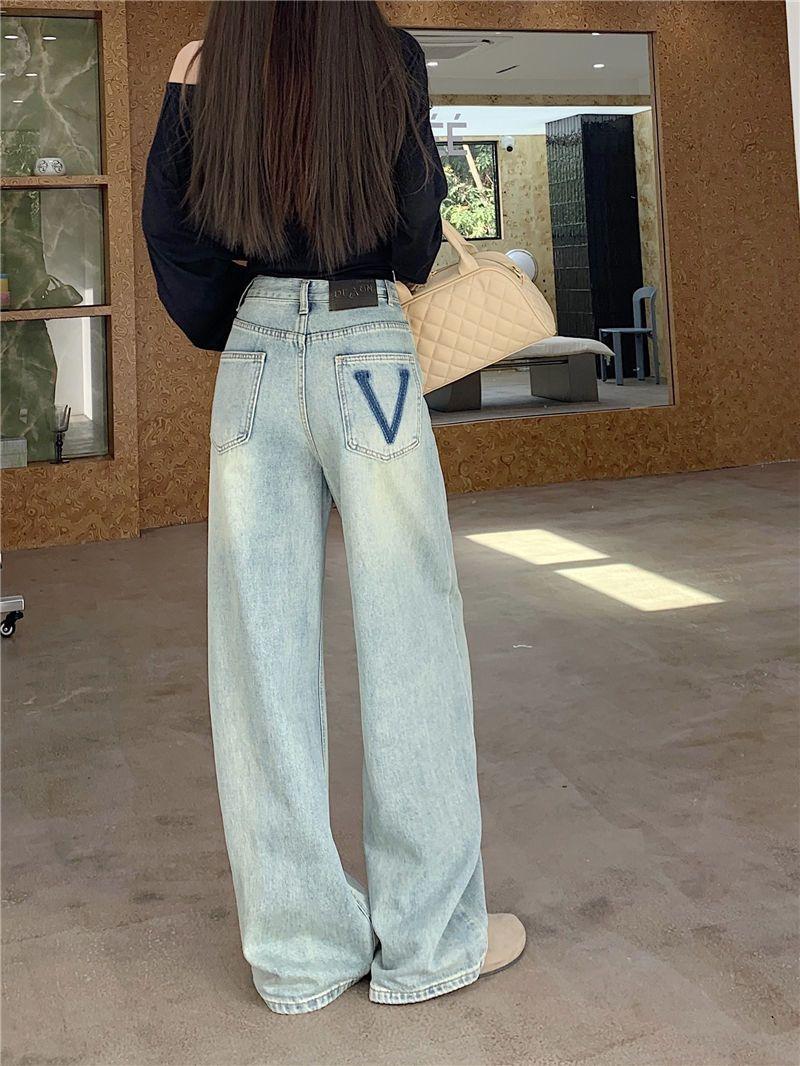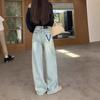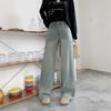 Jeans azul claro de pierna recta para mujer 2024 forrado de vellón Engrosado Niña gordita con forma de pera Cintura alta Adelgazante Pierna ancha Pantalones de piso