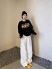 Sudadera de cuello redondo con diseño floral de estilo coreano para mujer, nueva prenda informal, única y elegante para primavera y otoño de 2024.