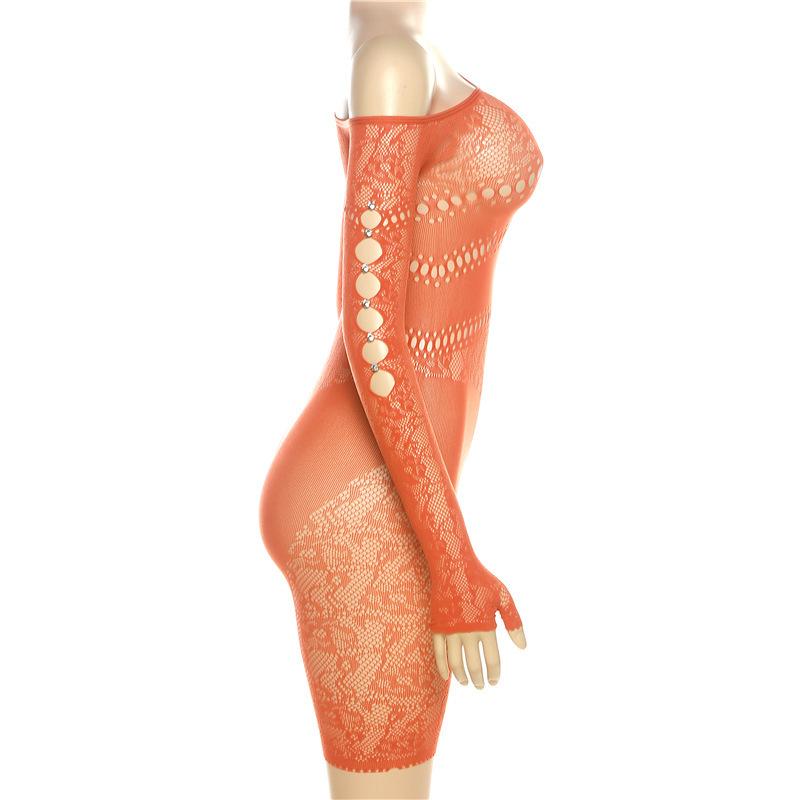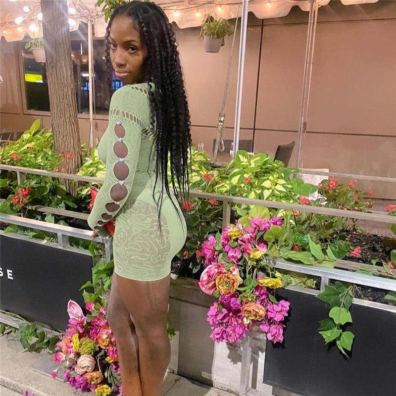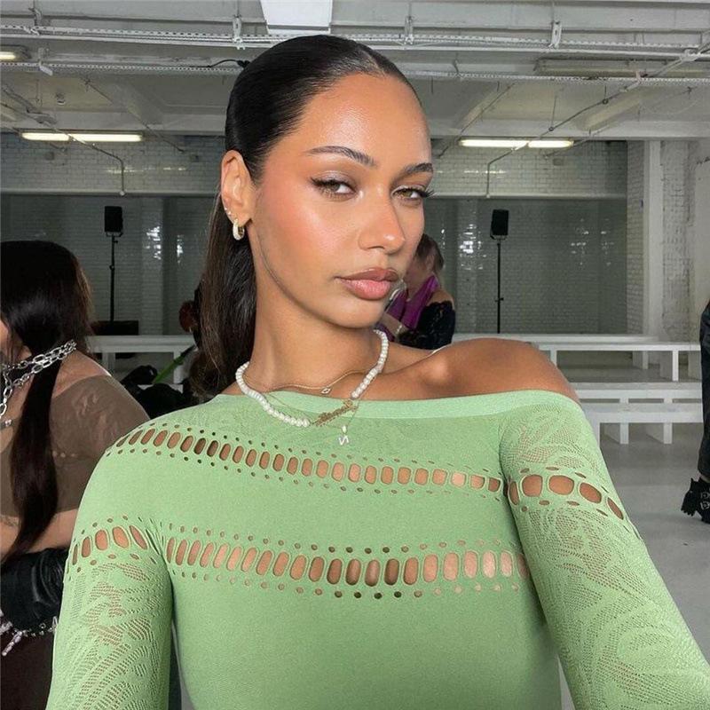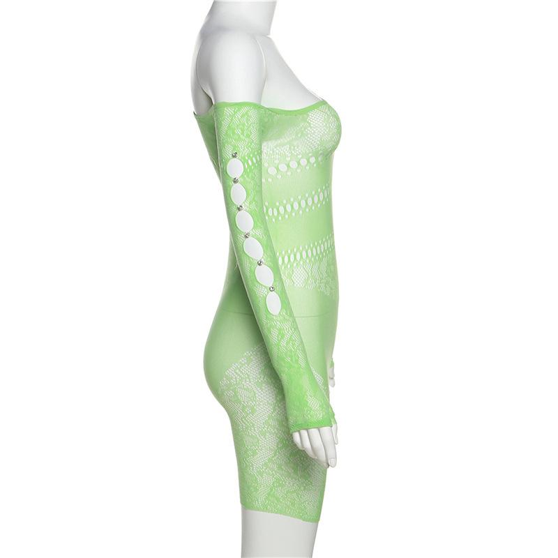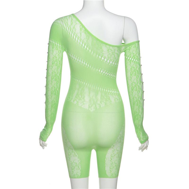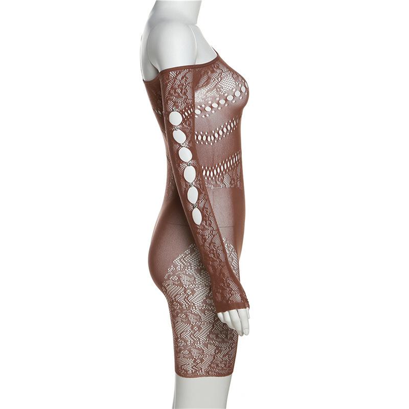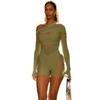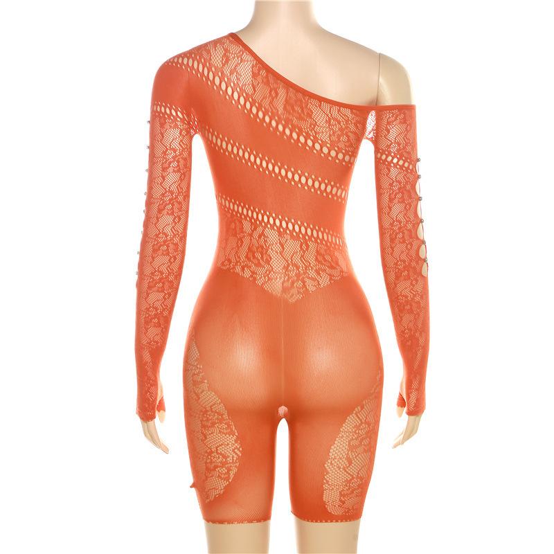 Ropa de mujer de estilo europeo y americano, primavera y verano 2024, nueva moda para mujer, mono corto ajustado de malla con mangas largas y hombros inclinados de jacquard