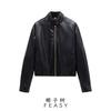 Amazon comercio exterior transfronterizo otoño e invierno 2024 nuevo abrigo de cuero casual con cremallera de moda callejera para mujer europea y americana