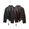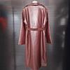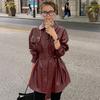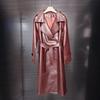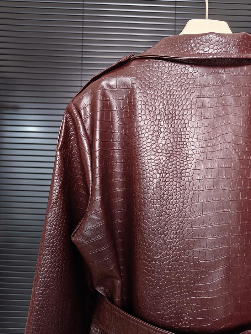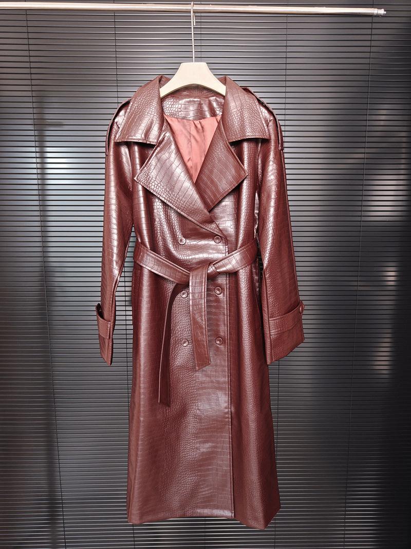 Abrigo de Otoño/Invierno Estilo Qian Viejo con Solapa y Manga Larga, Cinturón de Piel PU con Patrón de Cocodrilo, Cintura Ceñida, Abrigo Francés de Alta Gama para Mujer