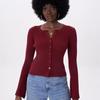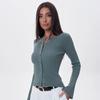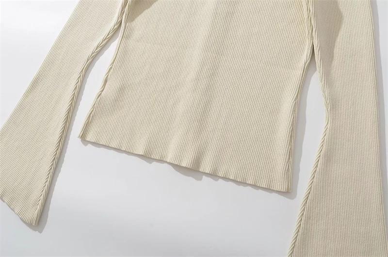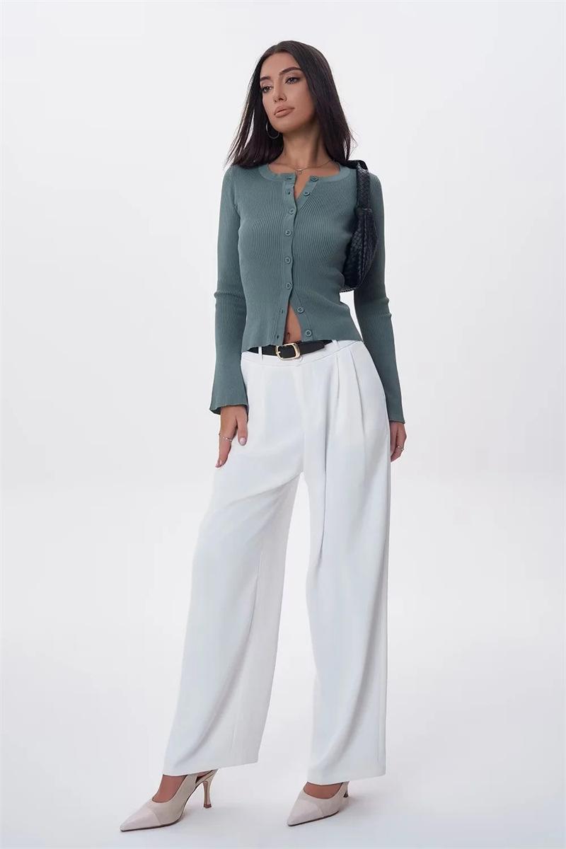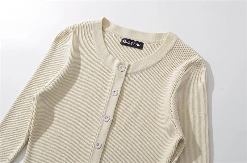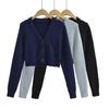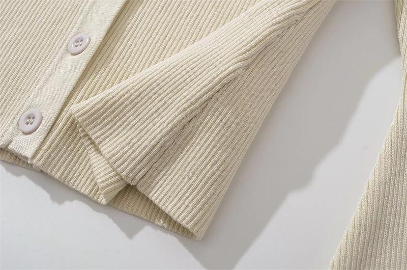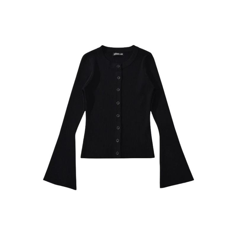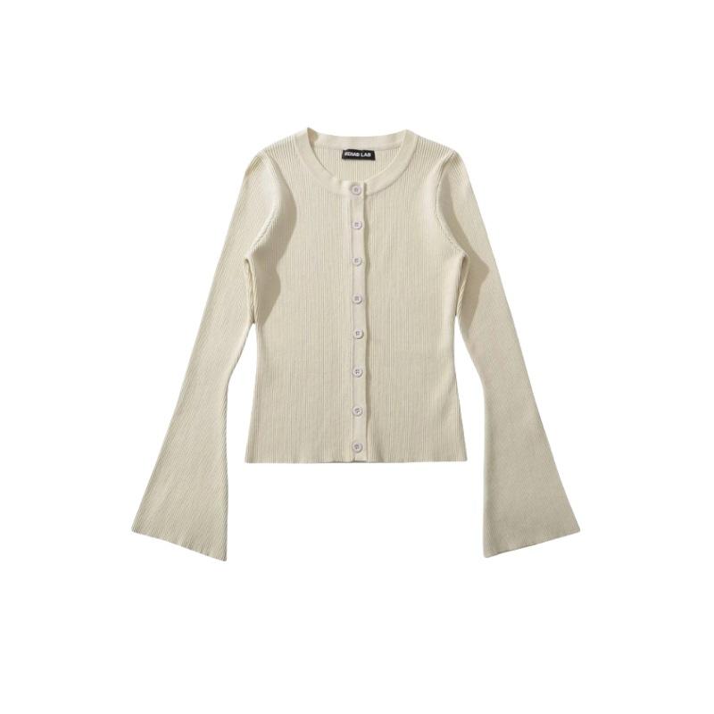 Suéter de Cuello Redondo y Manga Acampanada para Mujer Europeo y Americano Retro de Un Solo Botón Ajustado Versátil Color Puro Cárdigan Exterior Top