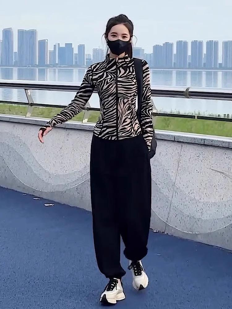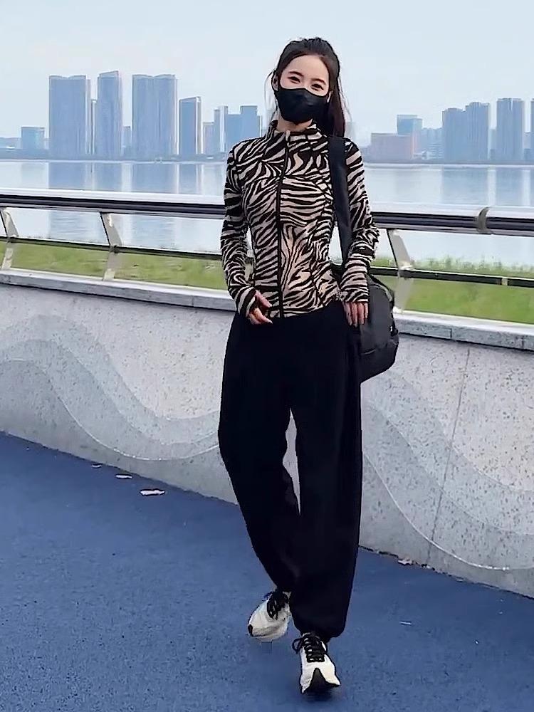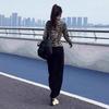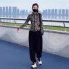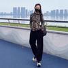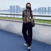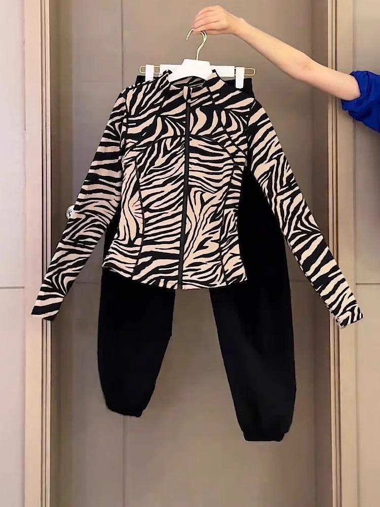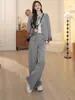 Pantalones de pierna de moda con sentido de alta gama Conjunto casual de color que reduce la edad Cárdigan con cremallera Conjunto de dos piezas de manga larga