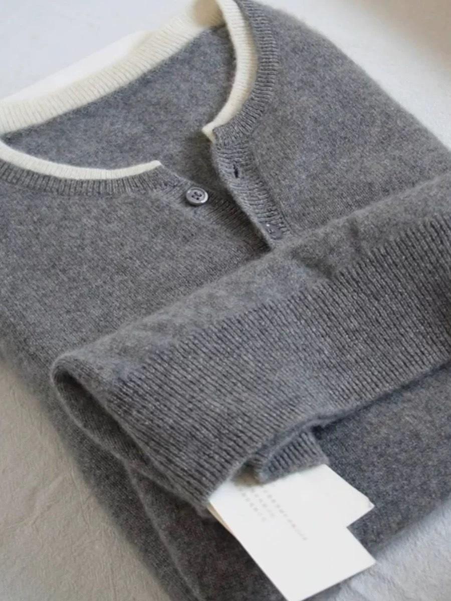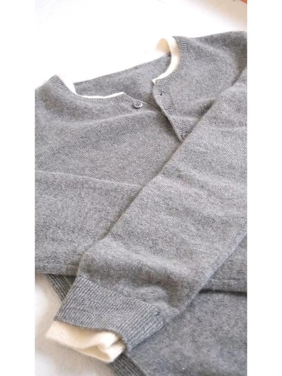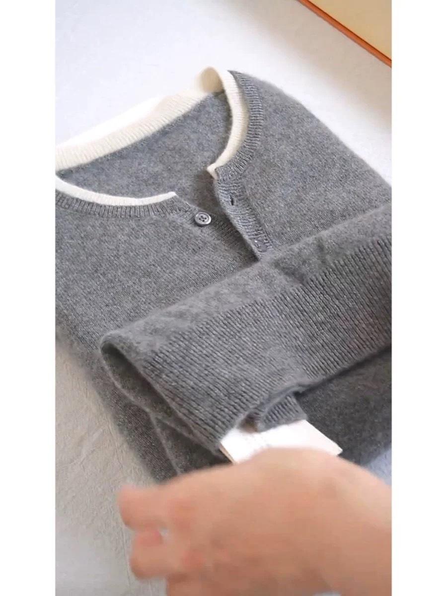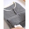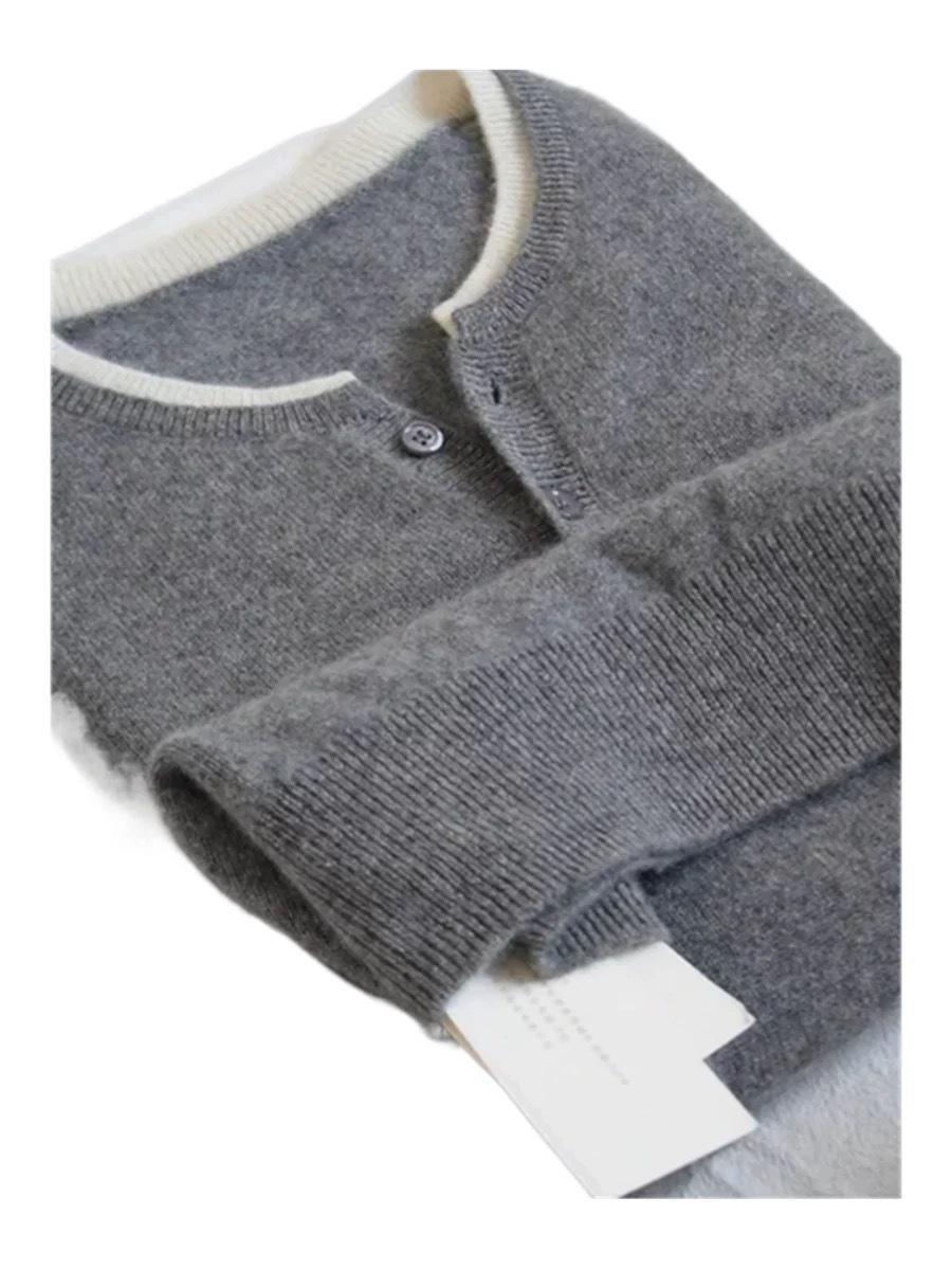 Camisa básica de cachemira gris para otoño e invierno, sencilla, de dos piezas, con cuello redondo, ajustada, de alta gama.