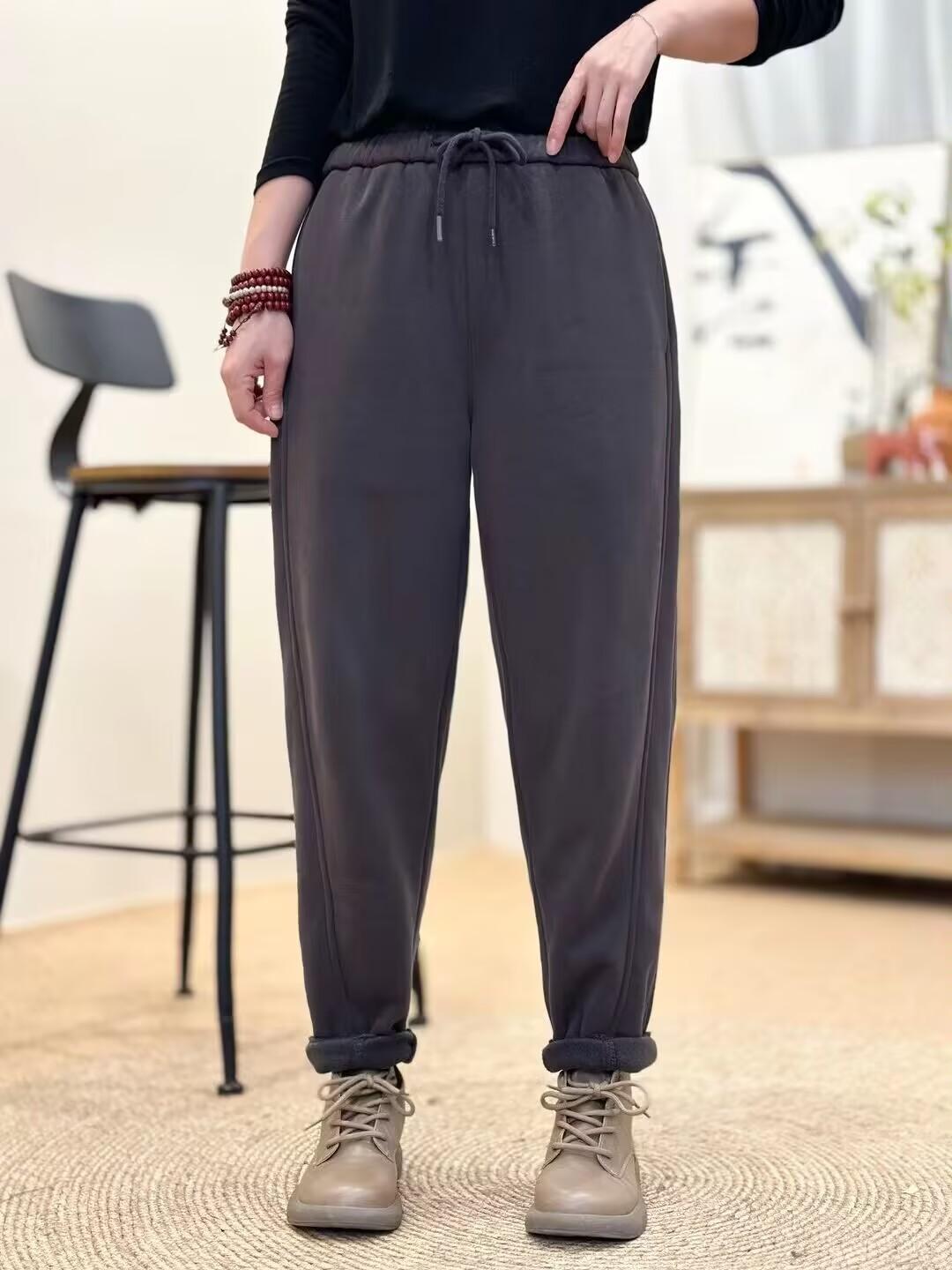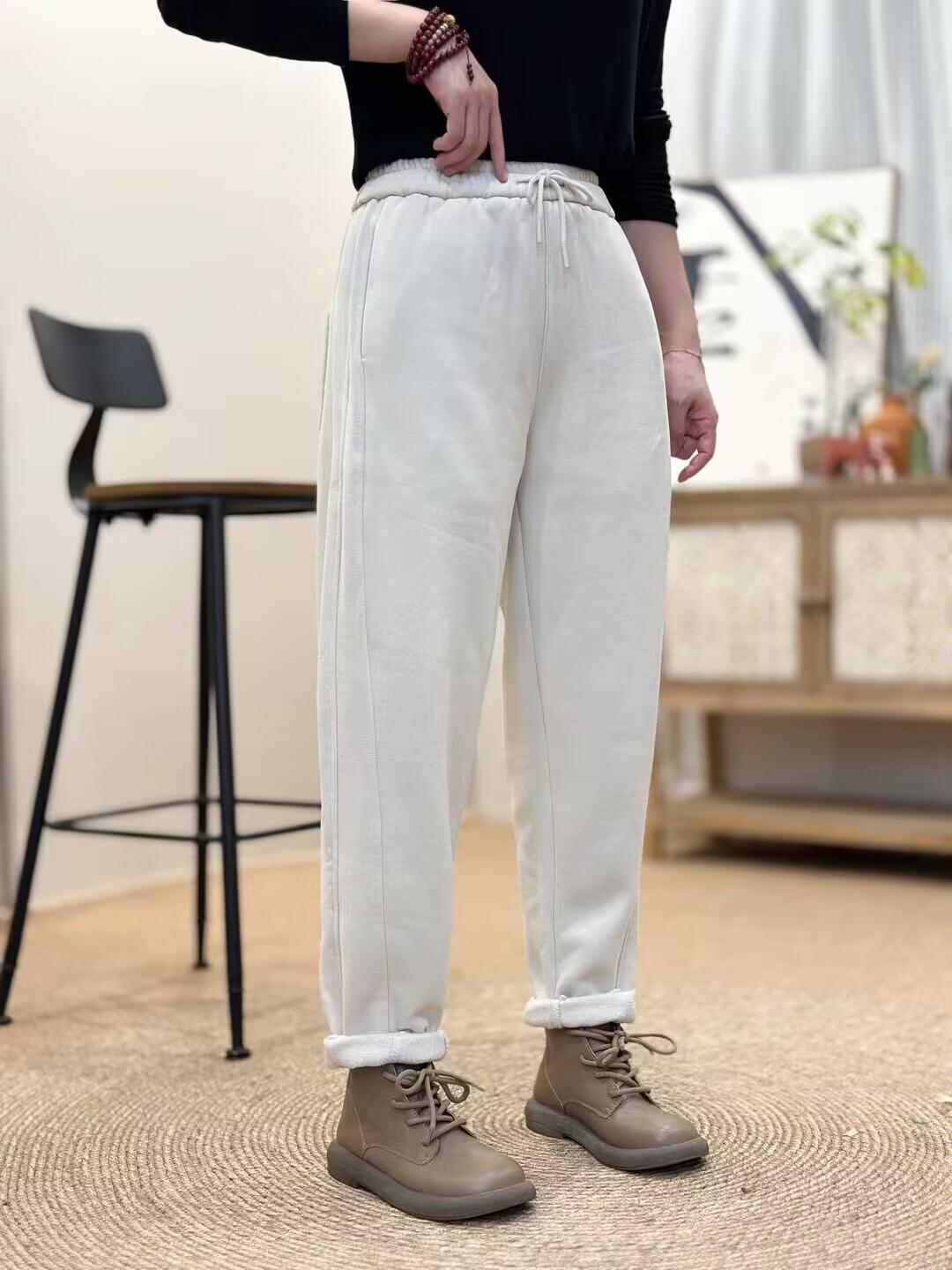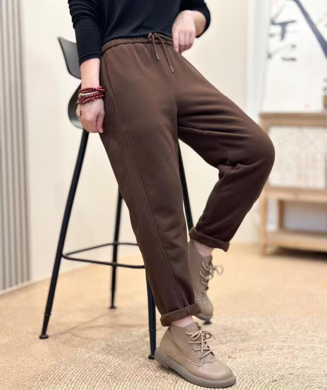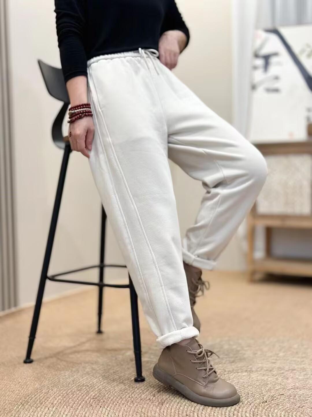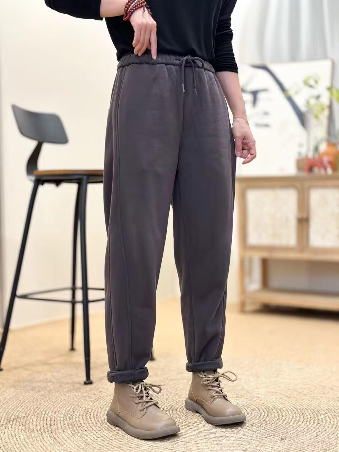 Pantalones de sudadera con forro polar para mujer Otoño e Invierno Nuevo estilo coreano Simple Adelgazantes Sueltos Combinan con todo Cálidos Rectos Casuales K312