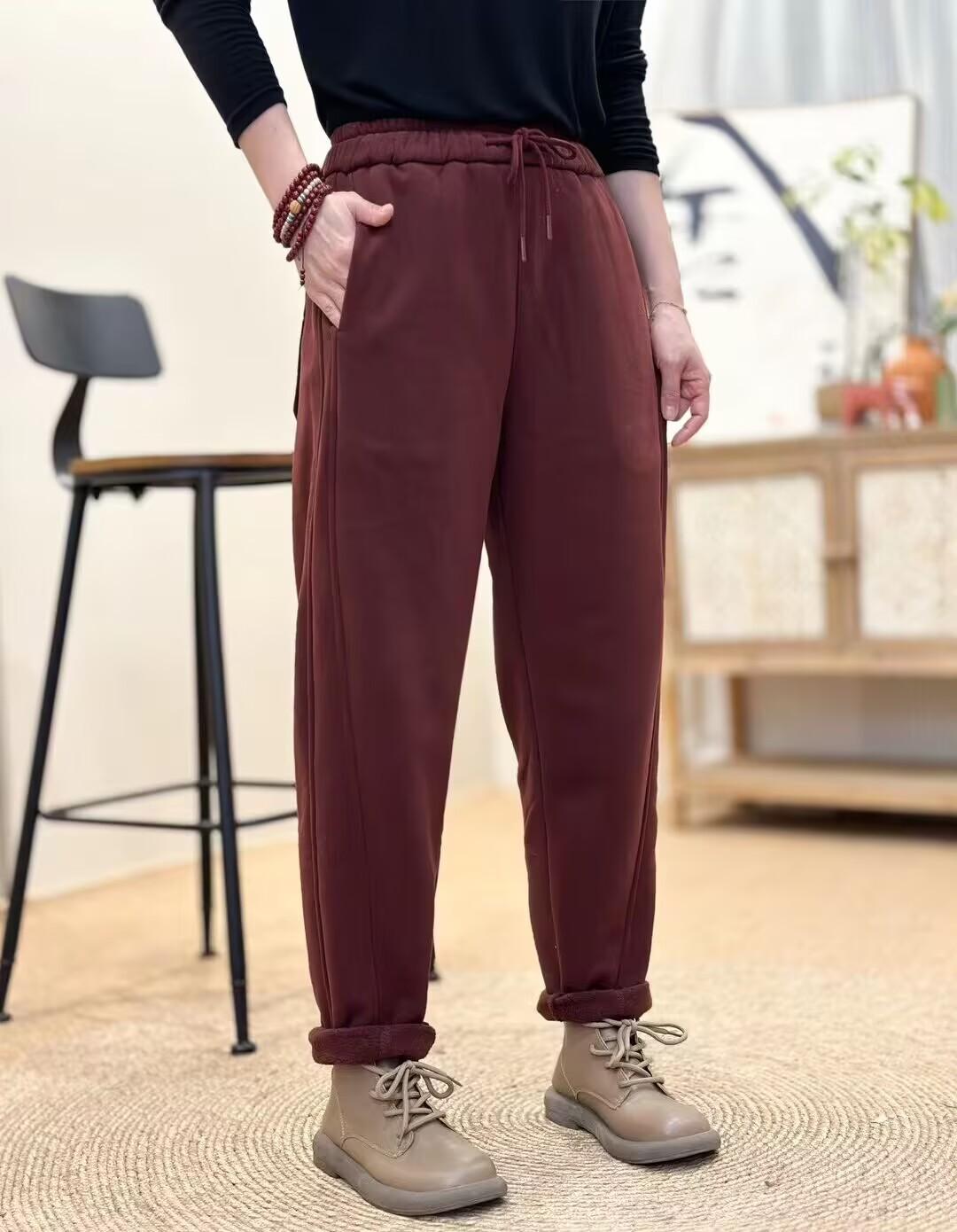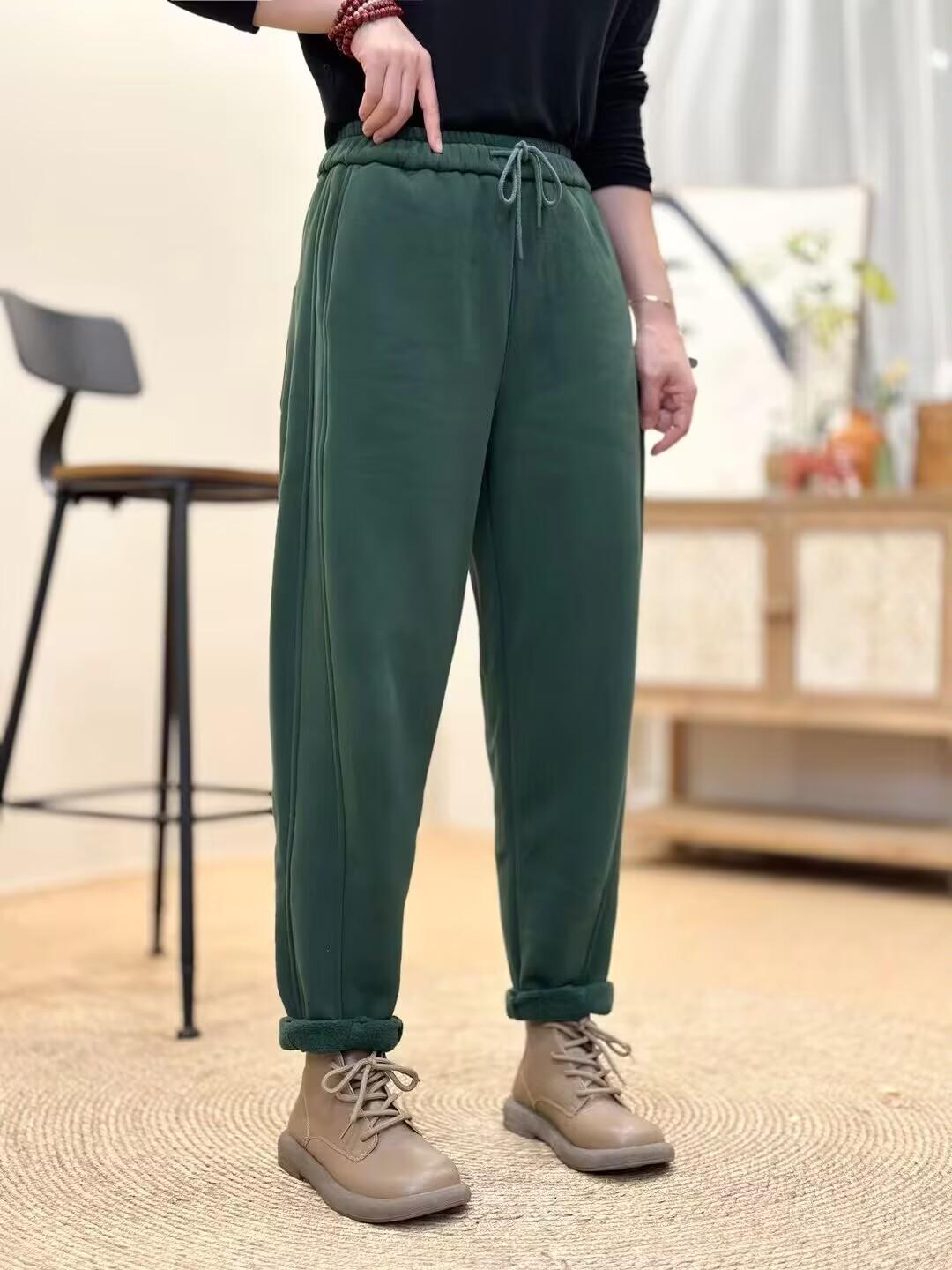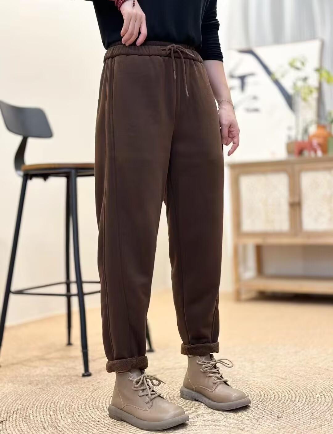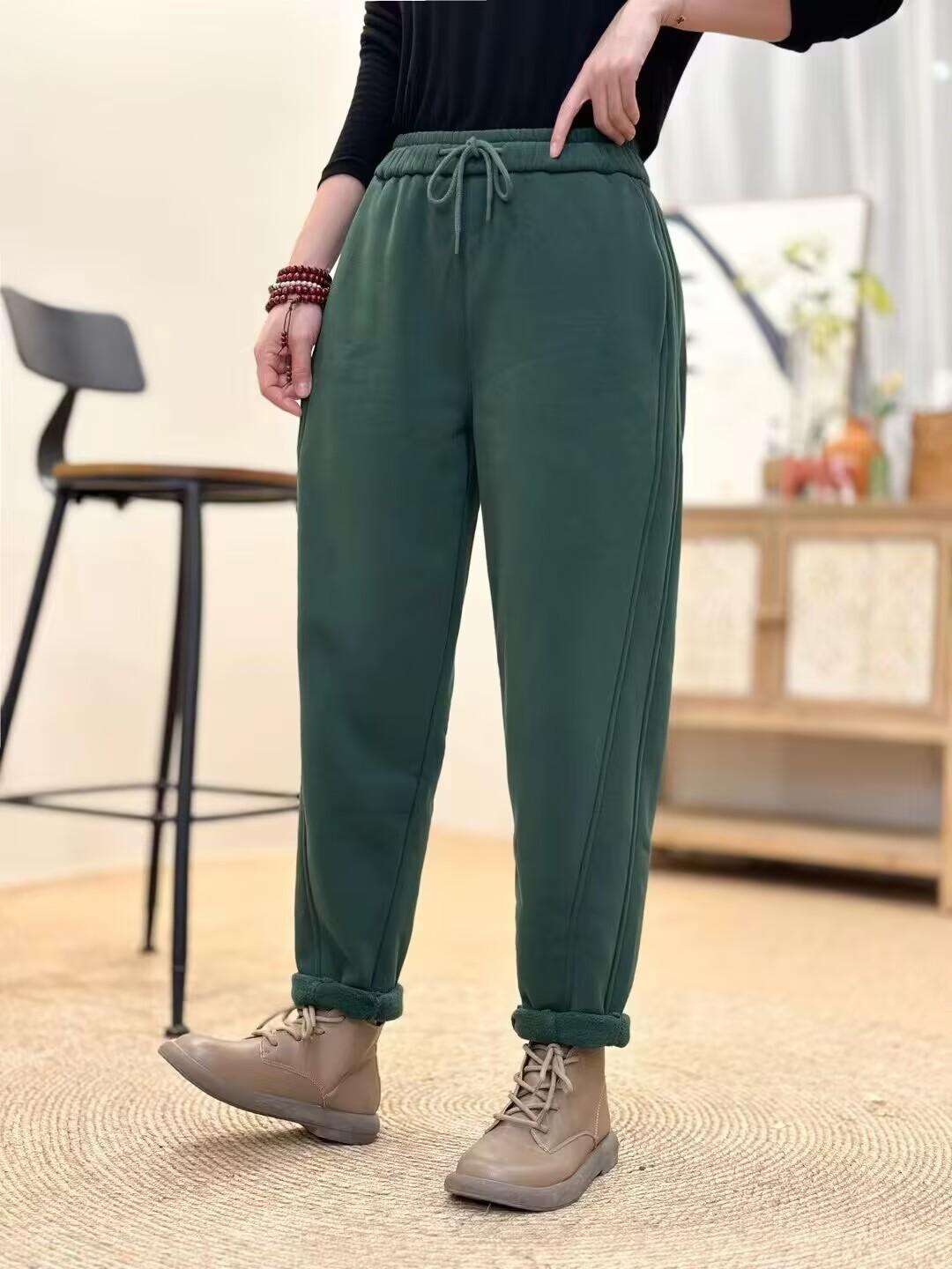 Pantalones de sudadera con forro polar para mujer Otoño e Invierno Nuevo estilo coreano Simple Adelgazantes Sueltos Combinan con todo Cálidos Rectos Casuales K312
