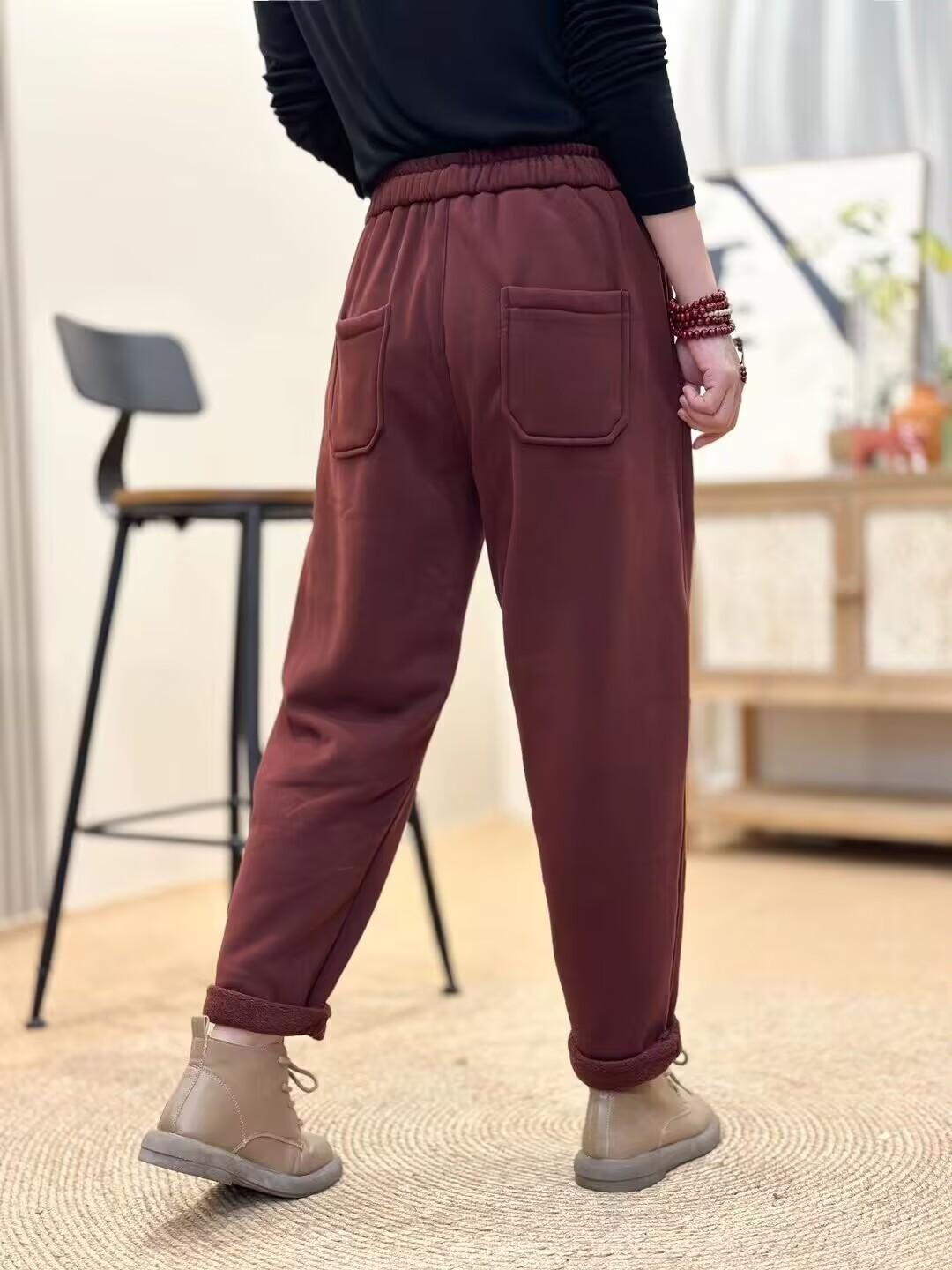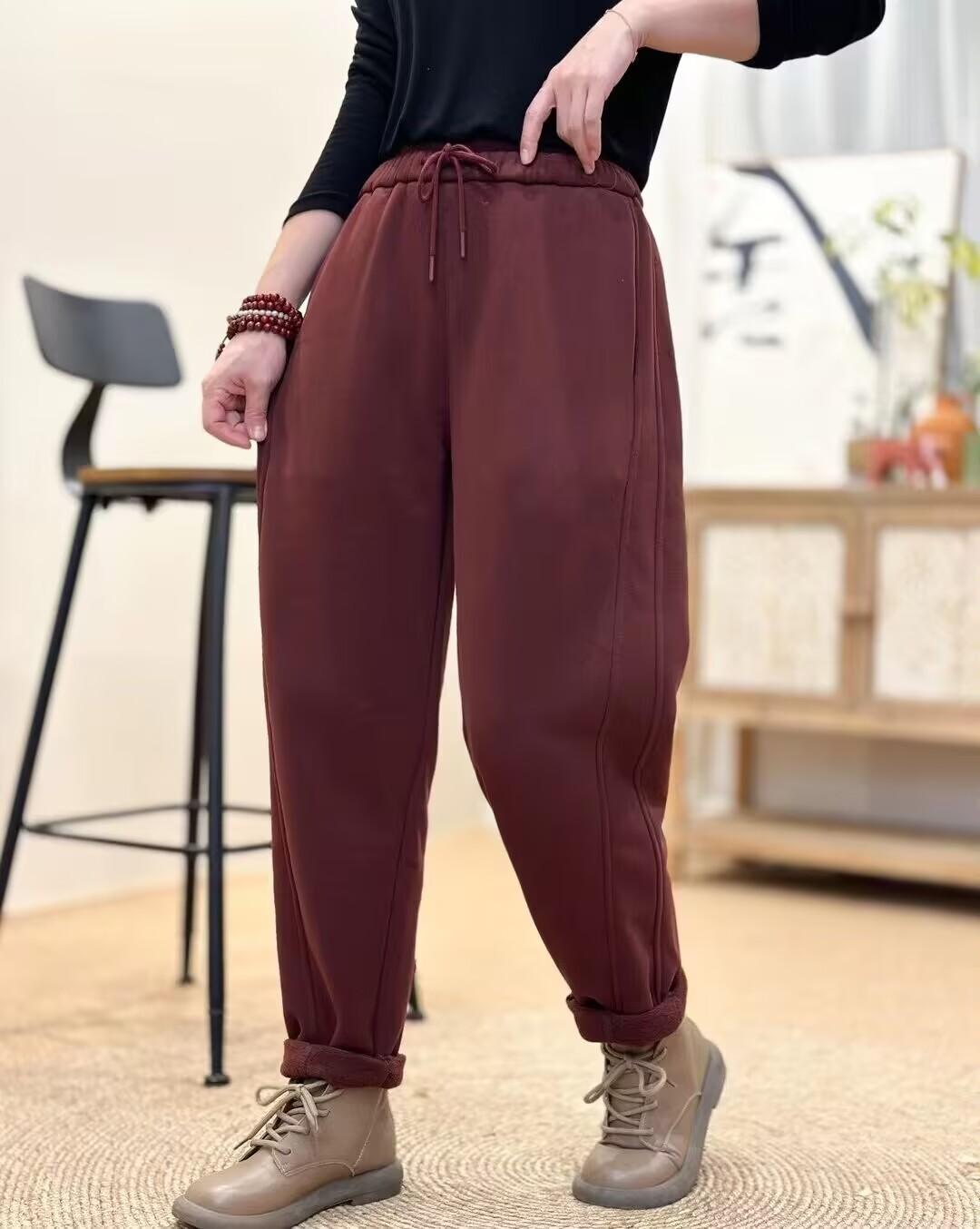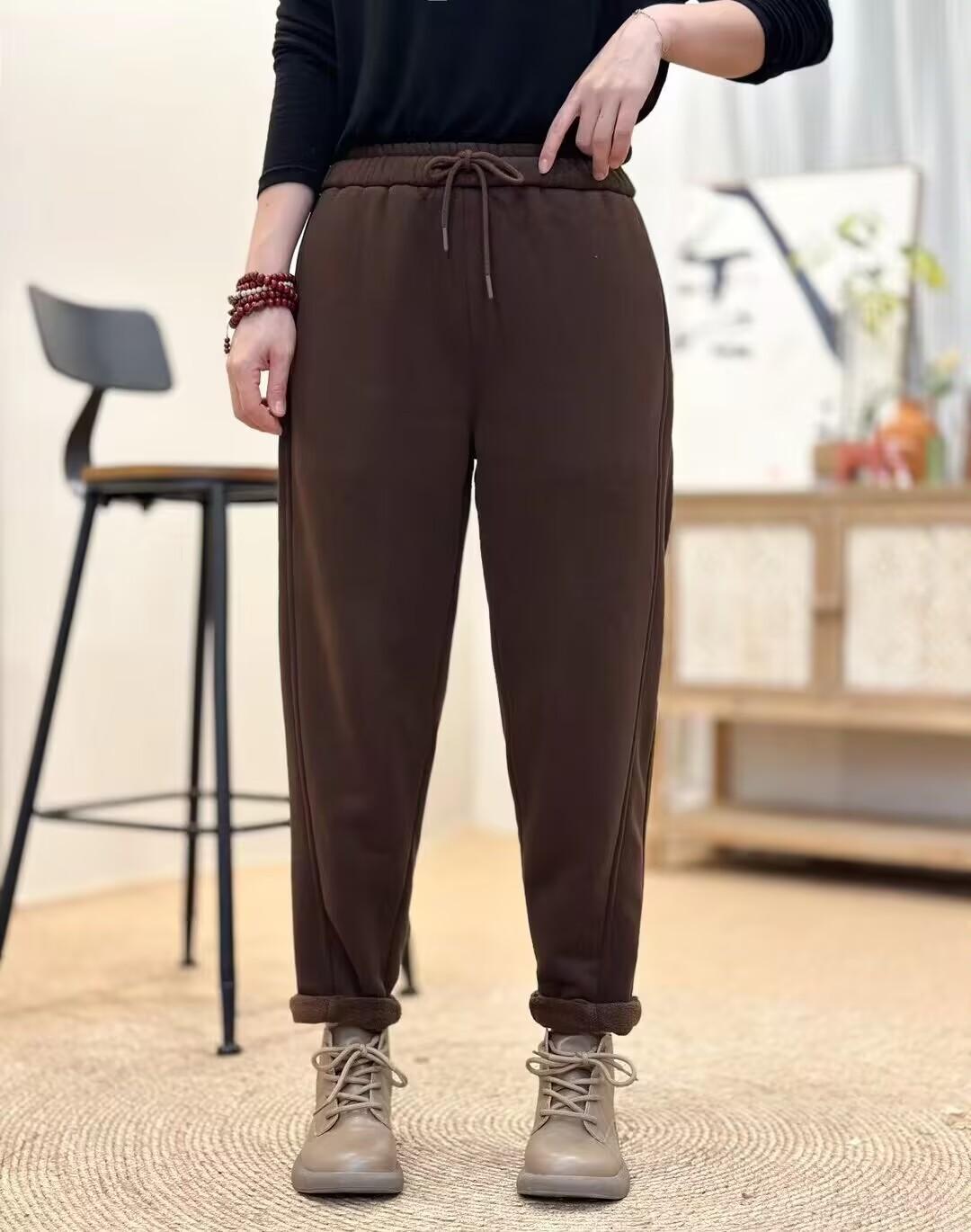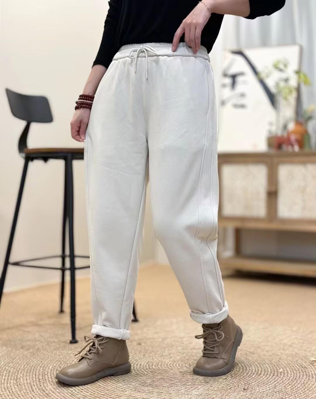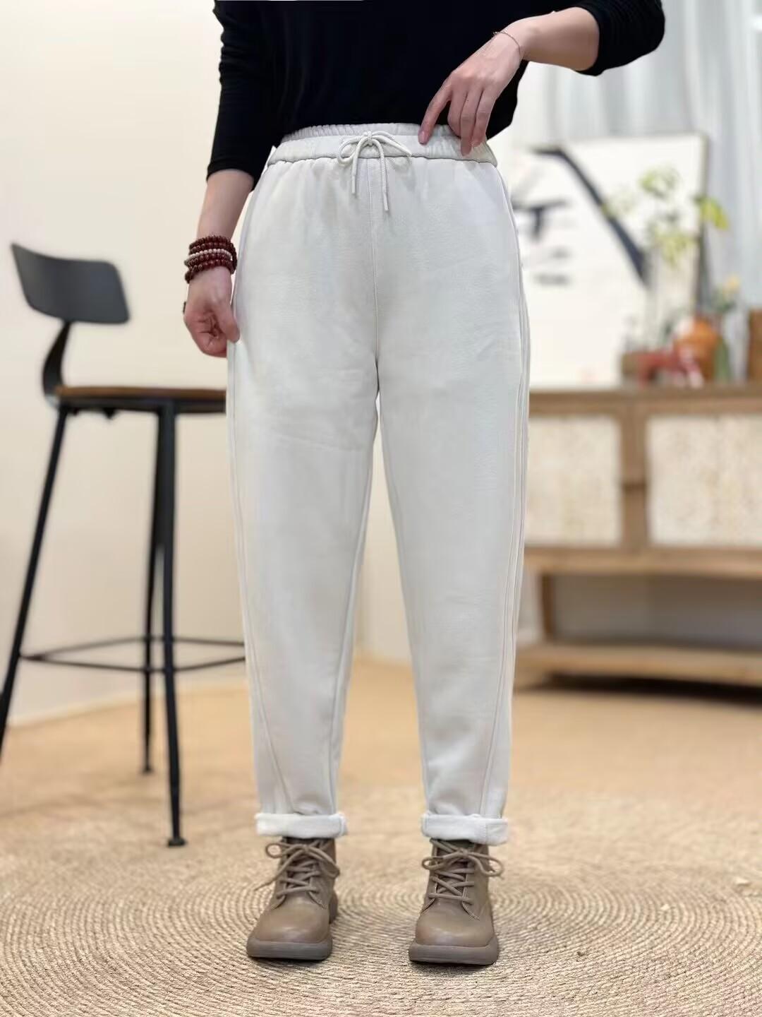 Pantalones de sudadera con forro polar para mujer Otoño e Invierno Nuevo estilo coreano Simple Adelgazantes Sueltos Combinan con todo Cálidos Rectos Casuales K312