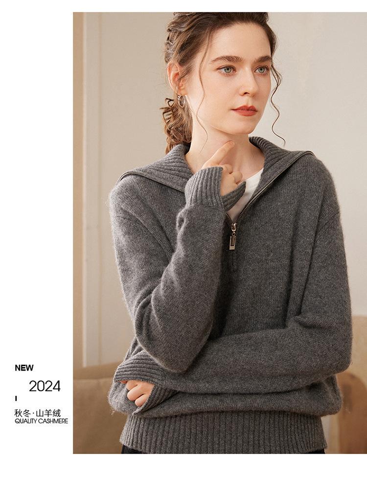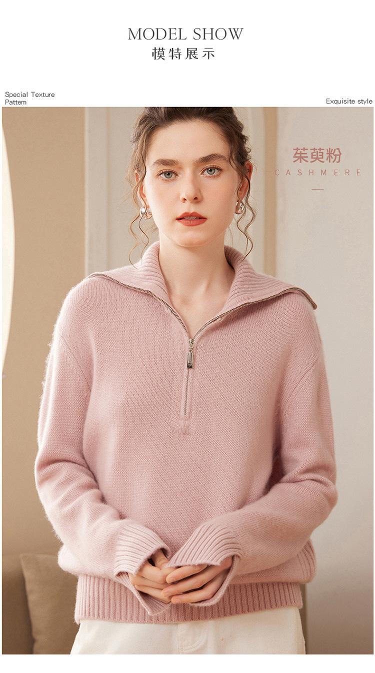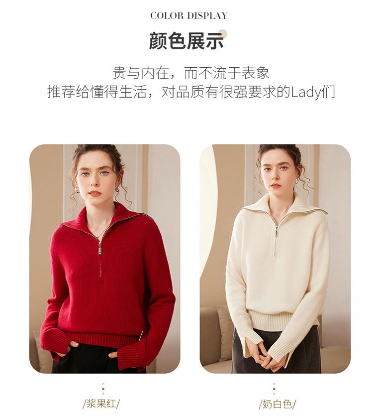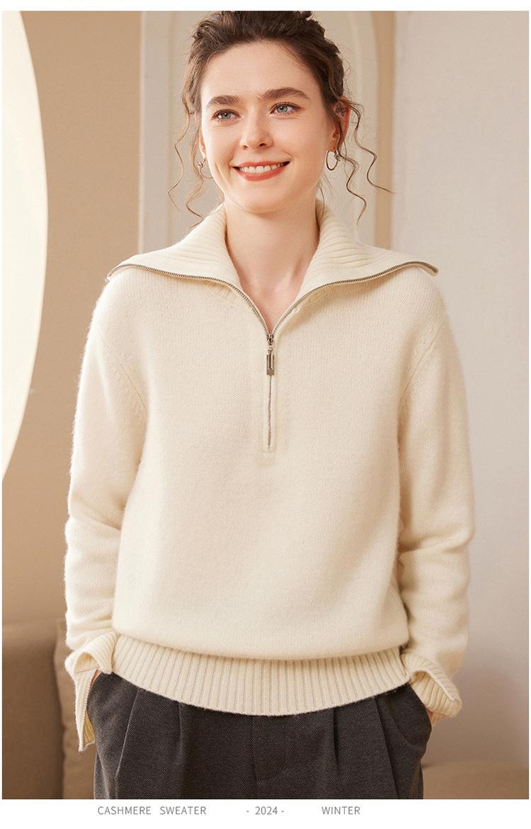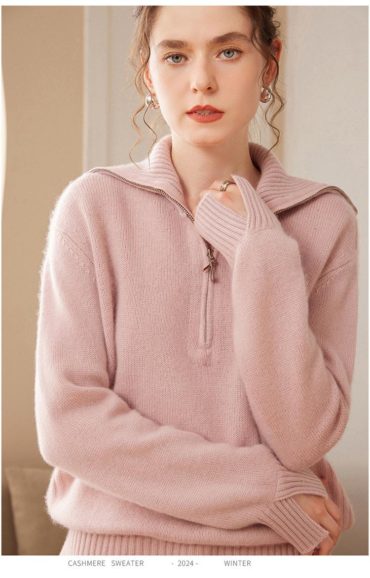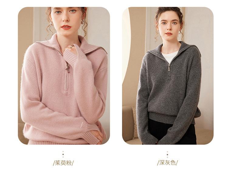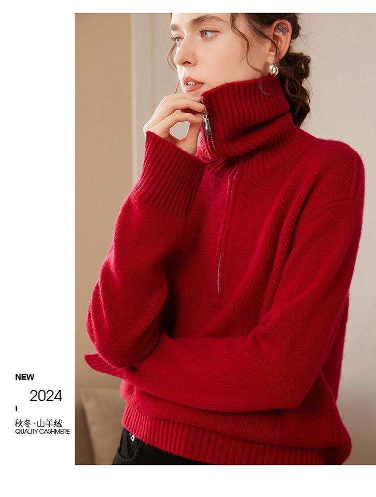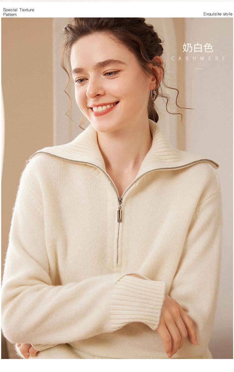 Popular Nuevo Suéter de Cachemira de Otoño e Invierno Transfronterizo para Mujer con Cuello Vuelto, Tejido de Cable Grueso, Suéter Holgado de Moda con Media Cremallera