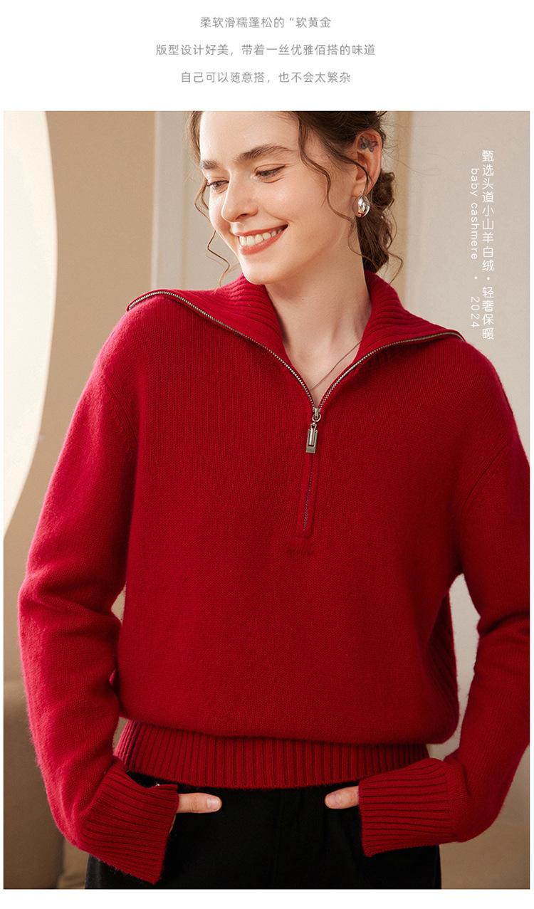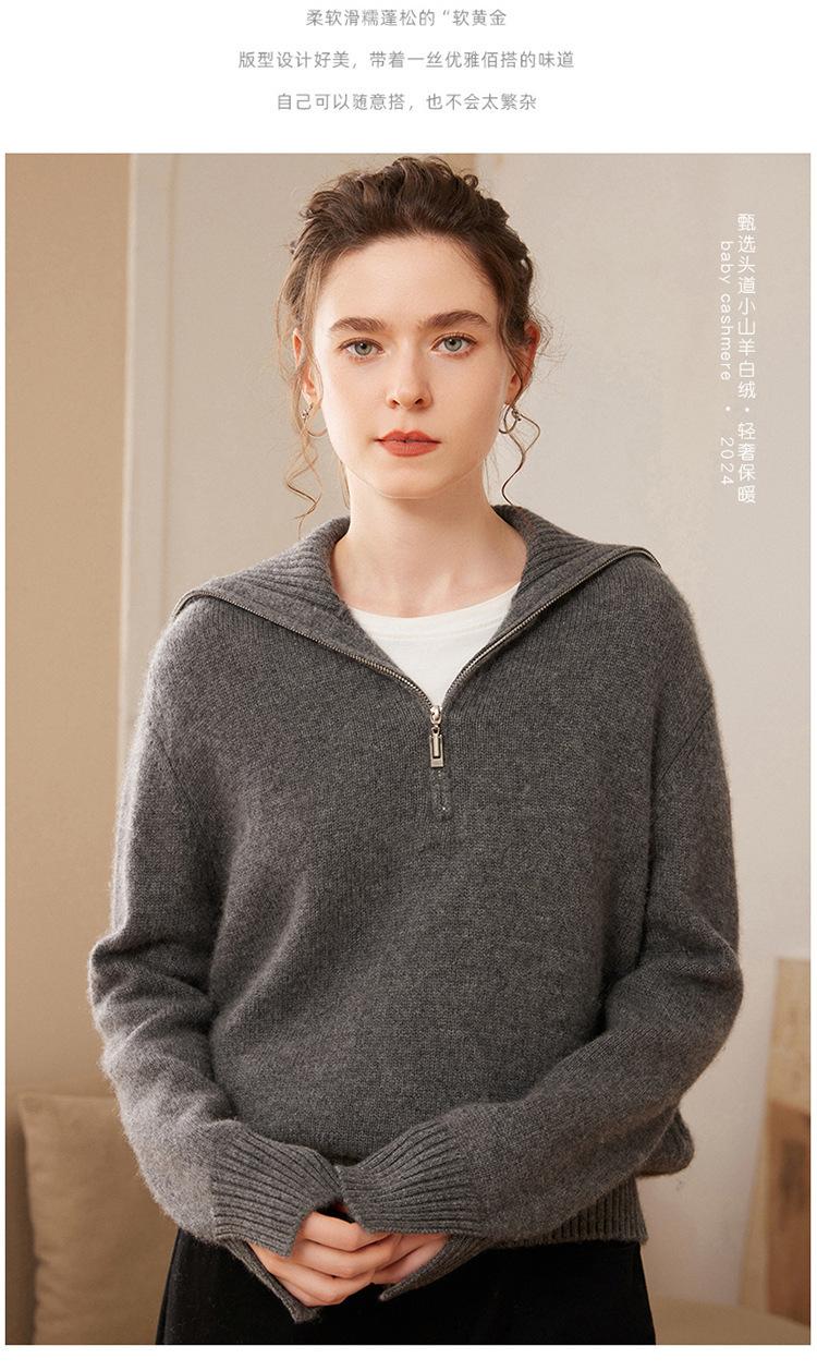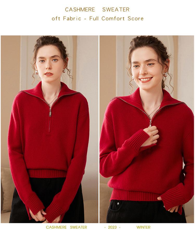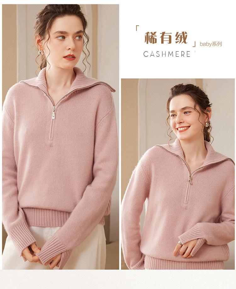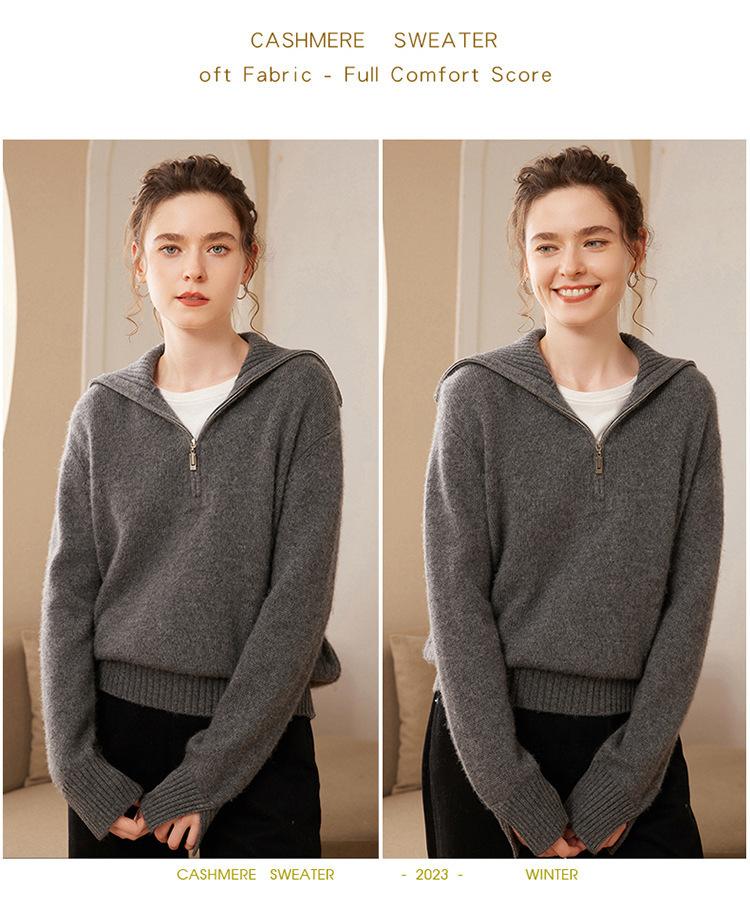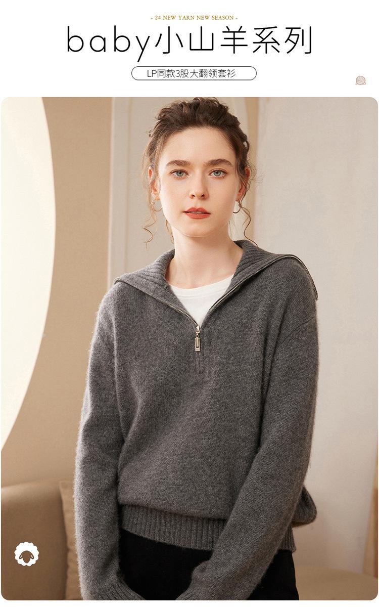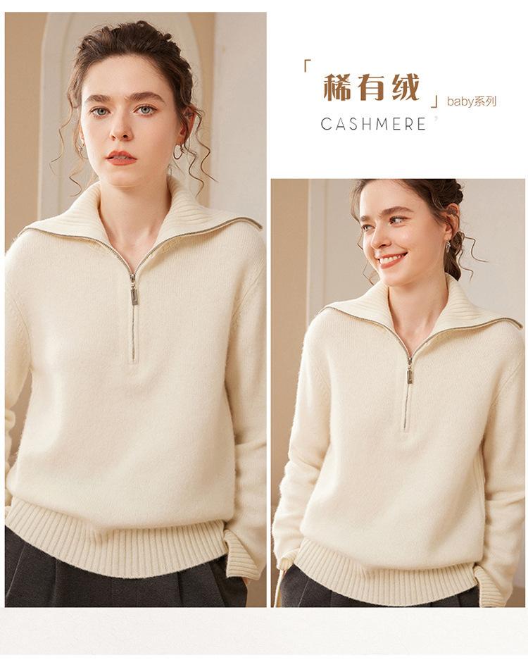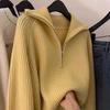 Popular Nuevo Suéter de Cachemira de Otoño e Invierno Transfronterizo para Mujer con Cuello Vuelto, Tejido de Cable Grueso, Suéter Holgado de Moda con Media Cremallera