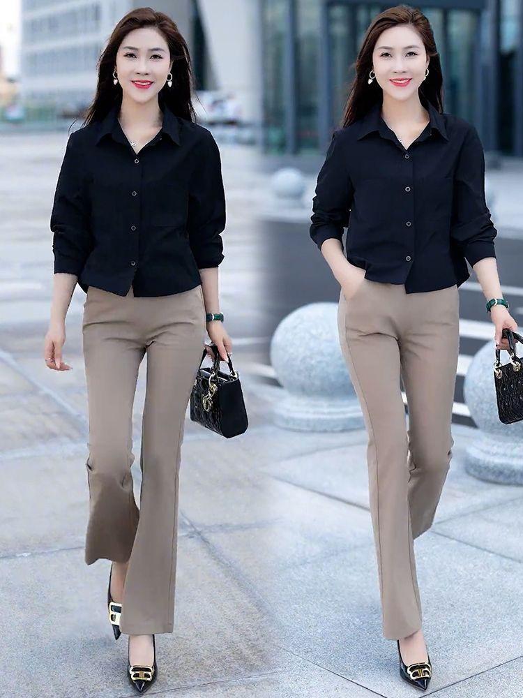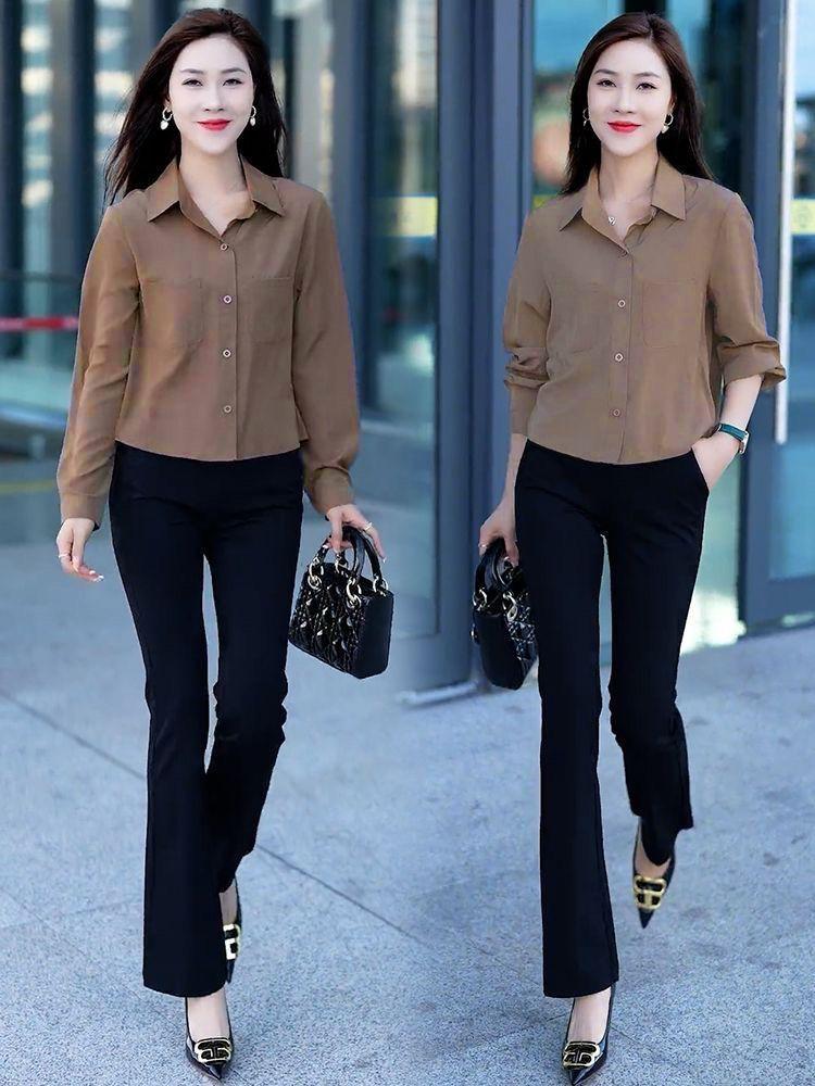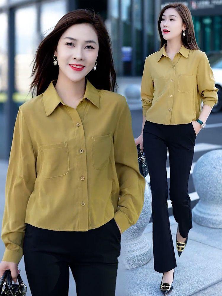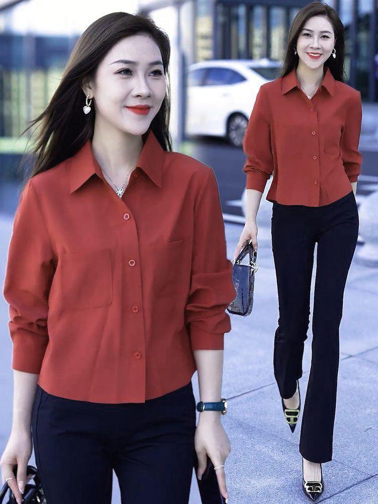 Camisa casual de moda de una o dos piezas para mujer, primavera y otoño, nueva, talla grande, holgada, combinable, elegante, de manga larga.