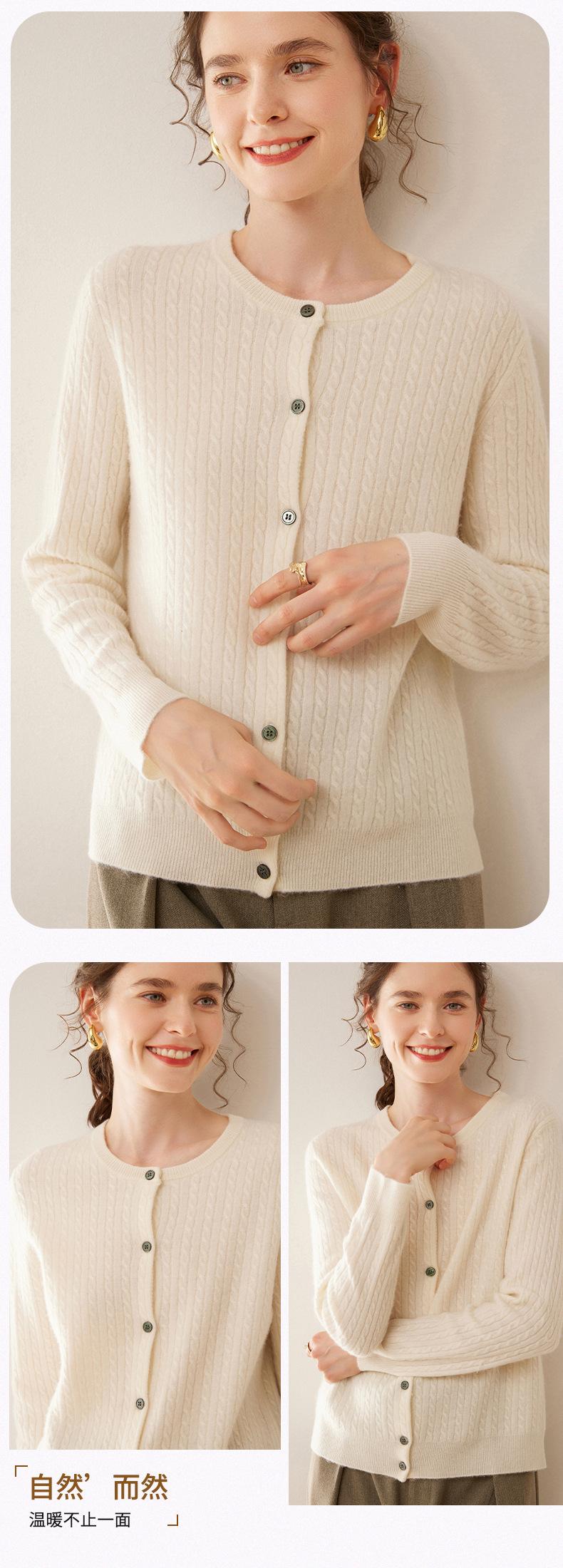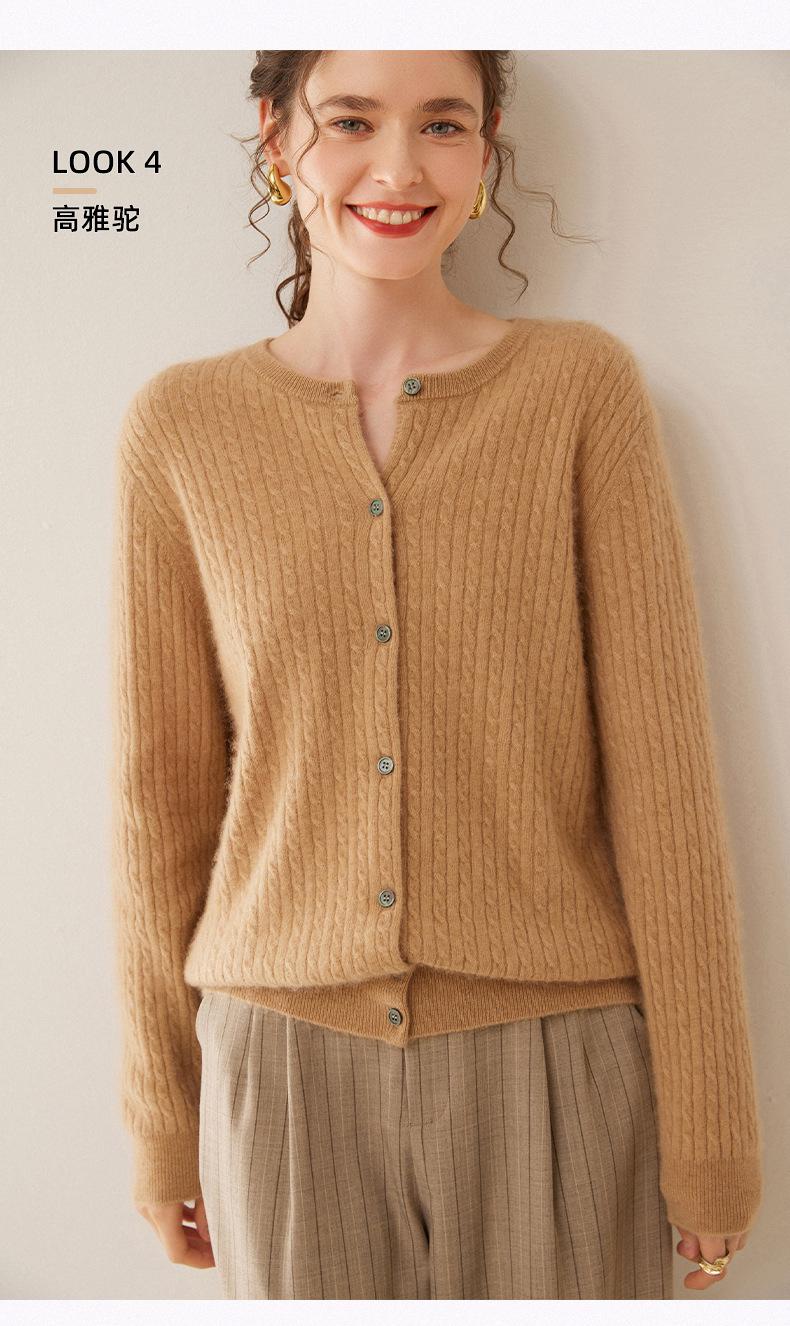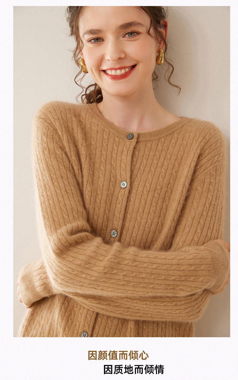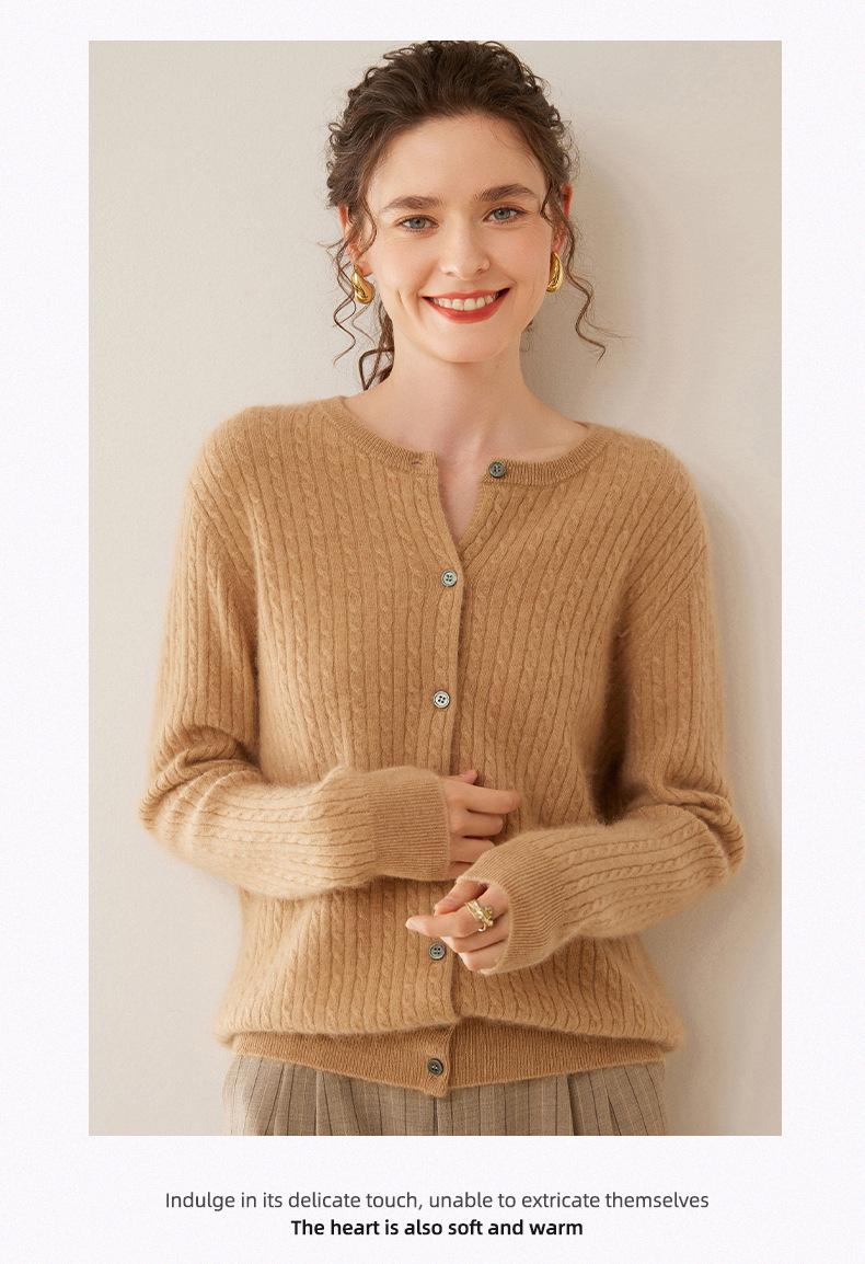 Cárdigan de cachemira con cuello redondo y manga larga para mujer, suéter de punto de lana, chaqueta abotonada para combinar con todo, otoño e invierno.