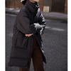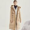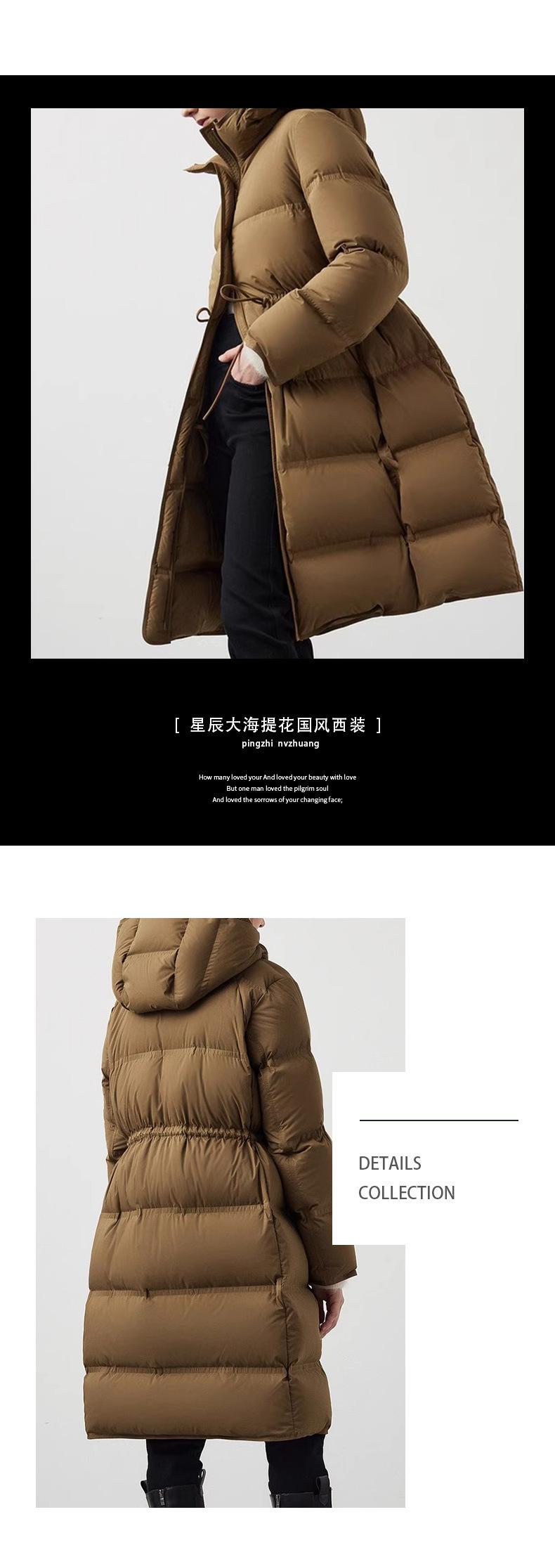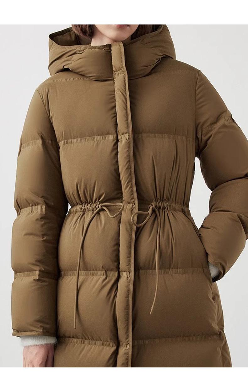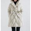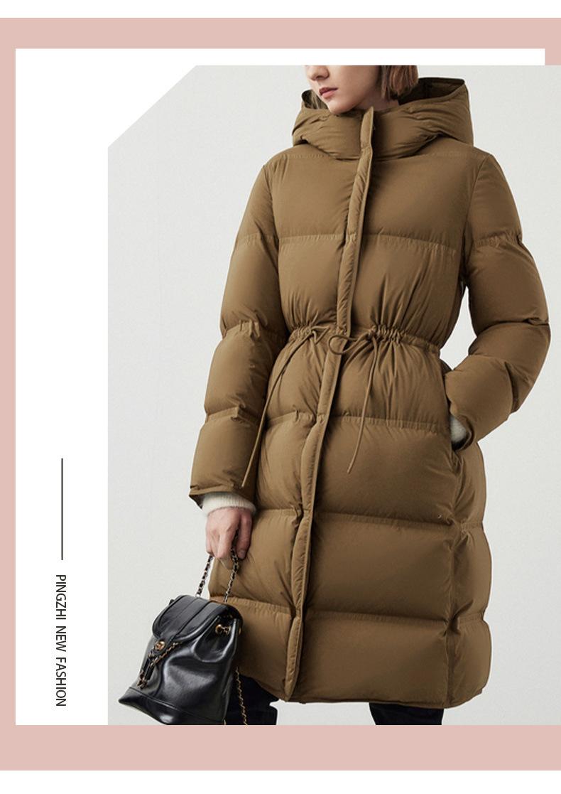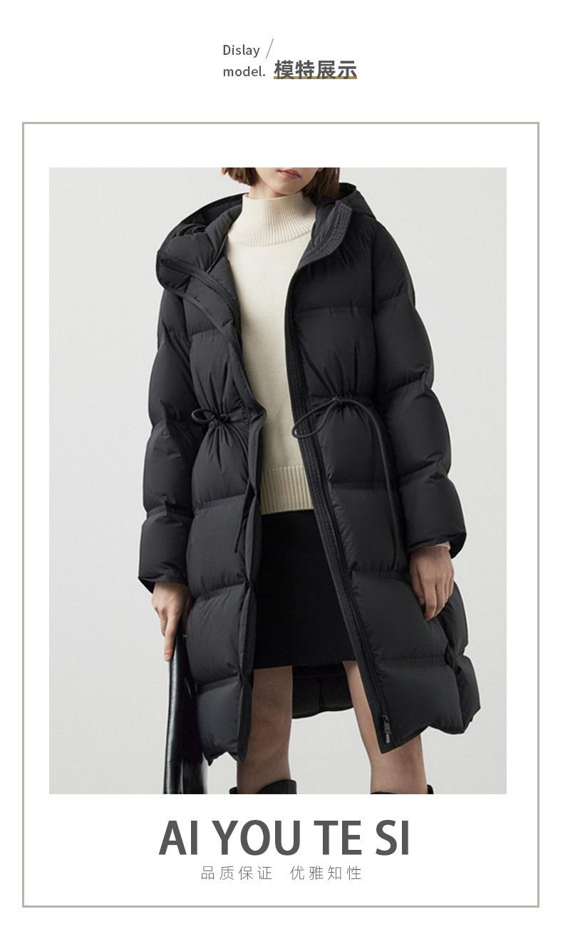 Chamarra de plumón de ganso de alta gama con capucha 90 plumón de ganso blanco Largo medio Cintura abajo Chaqueta 2025 Invierno Nuevo para mujer Negro