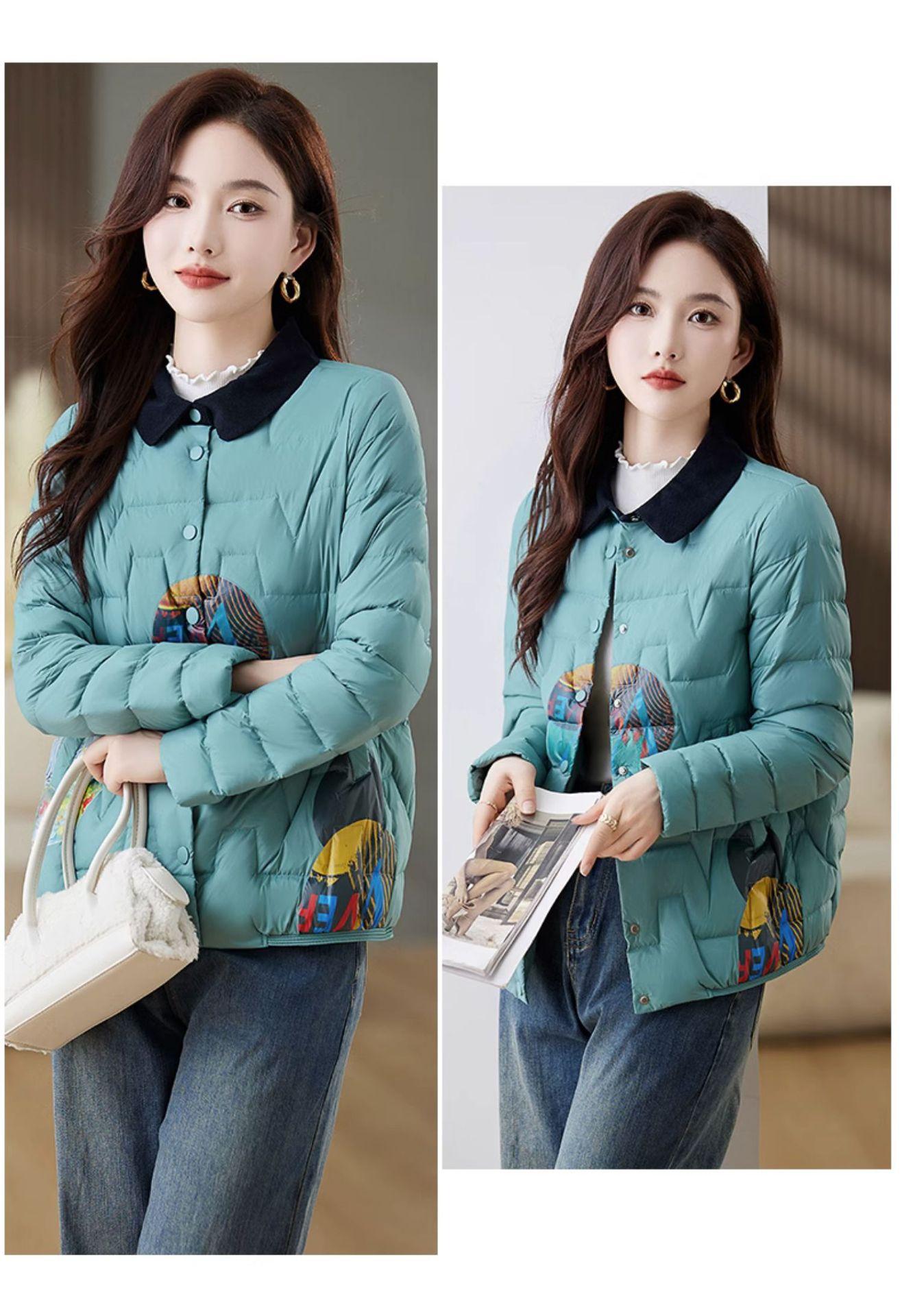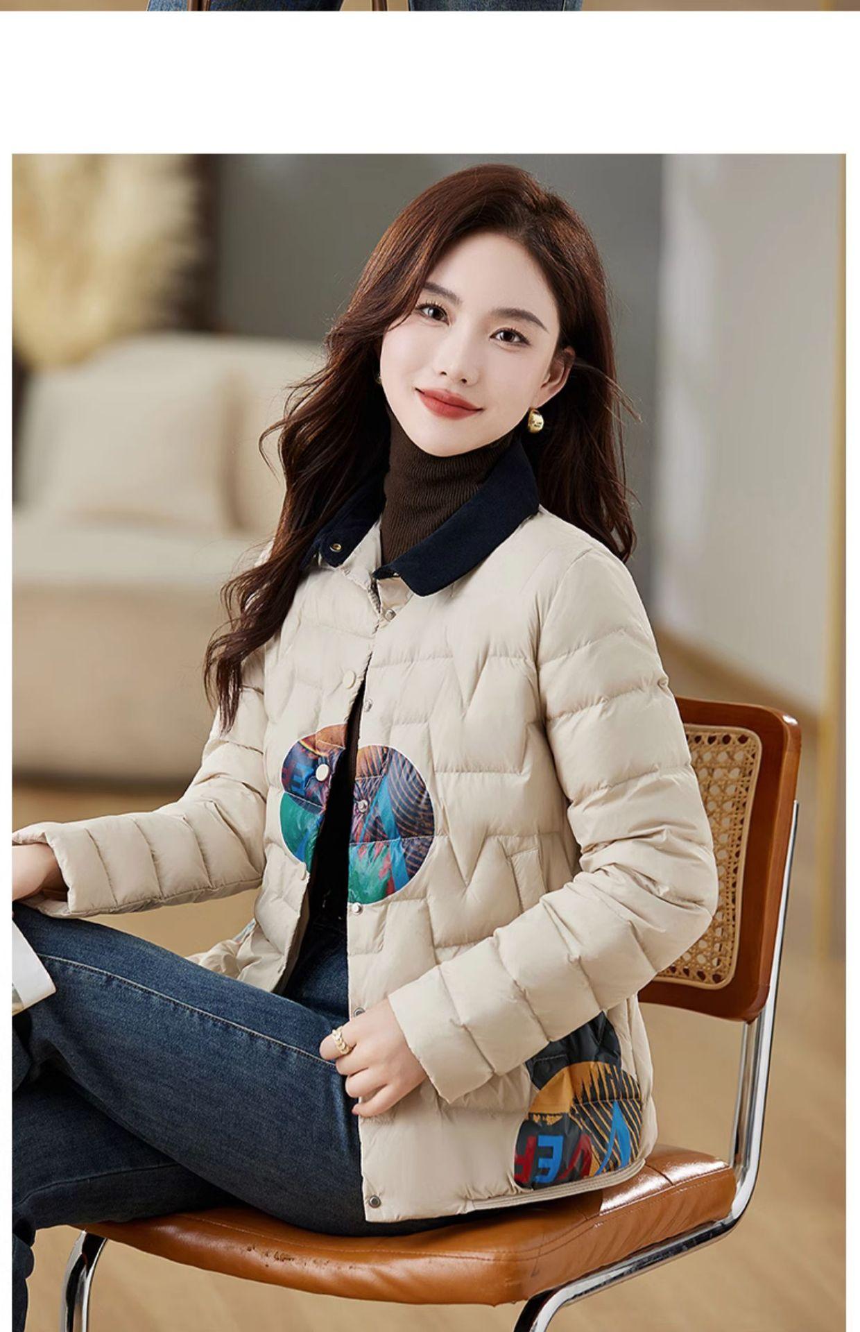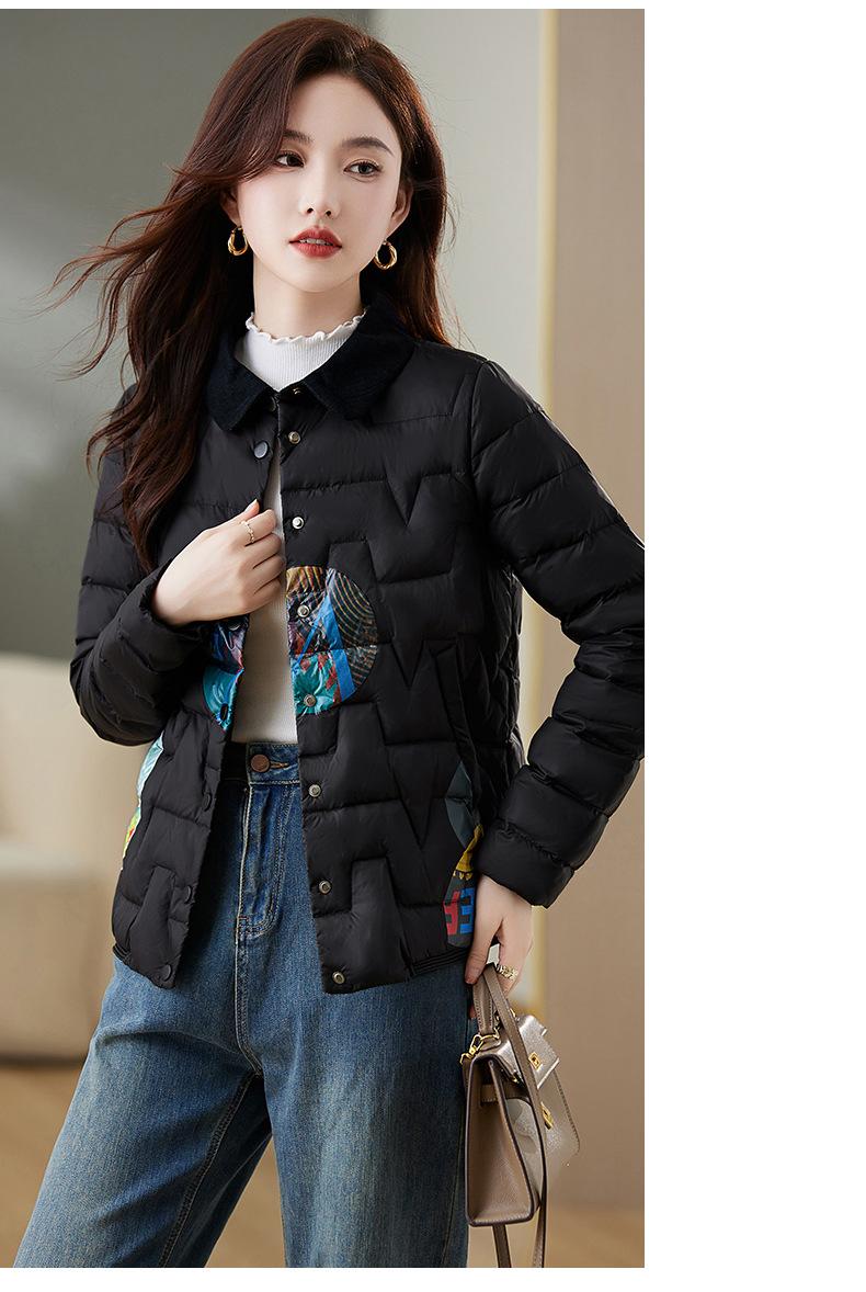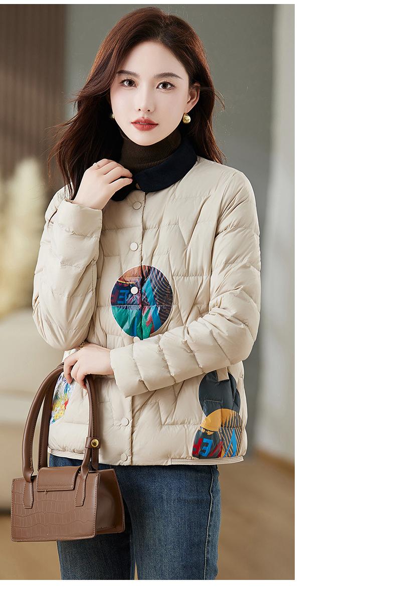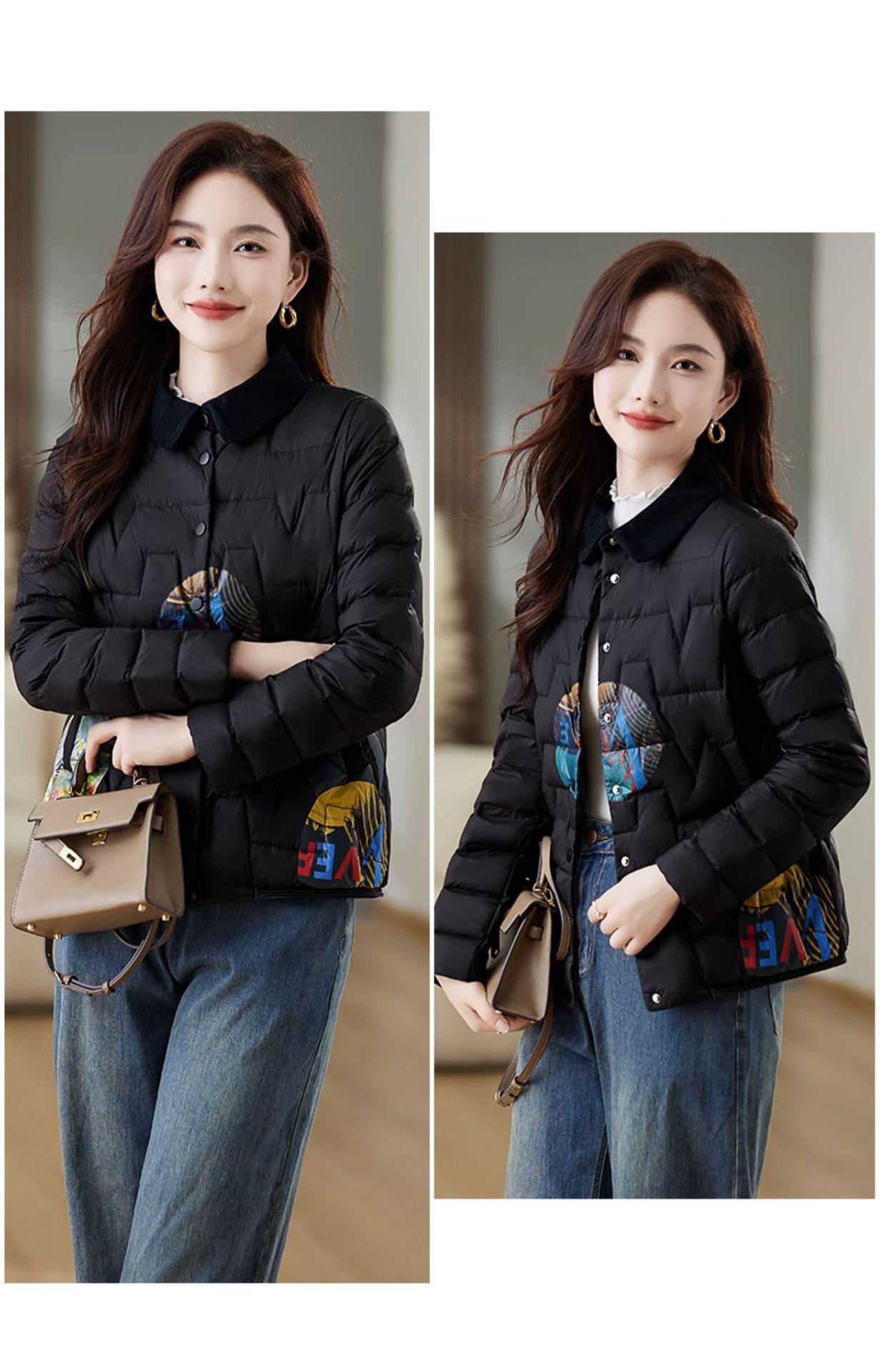 Chaqueta ligera de plumón para mujer corta de invierno con estampado retro plumón de pato blanco pequeño china cálida chaqueta ropa de madre talla grande