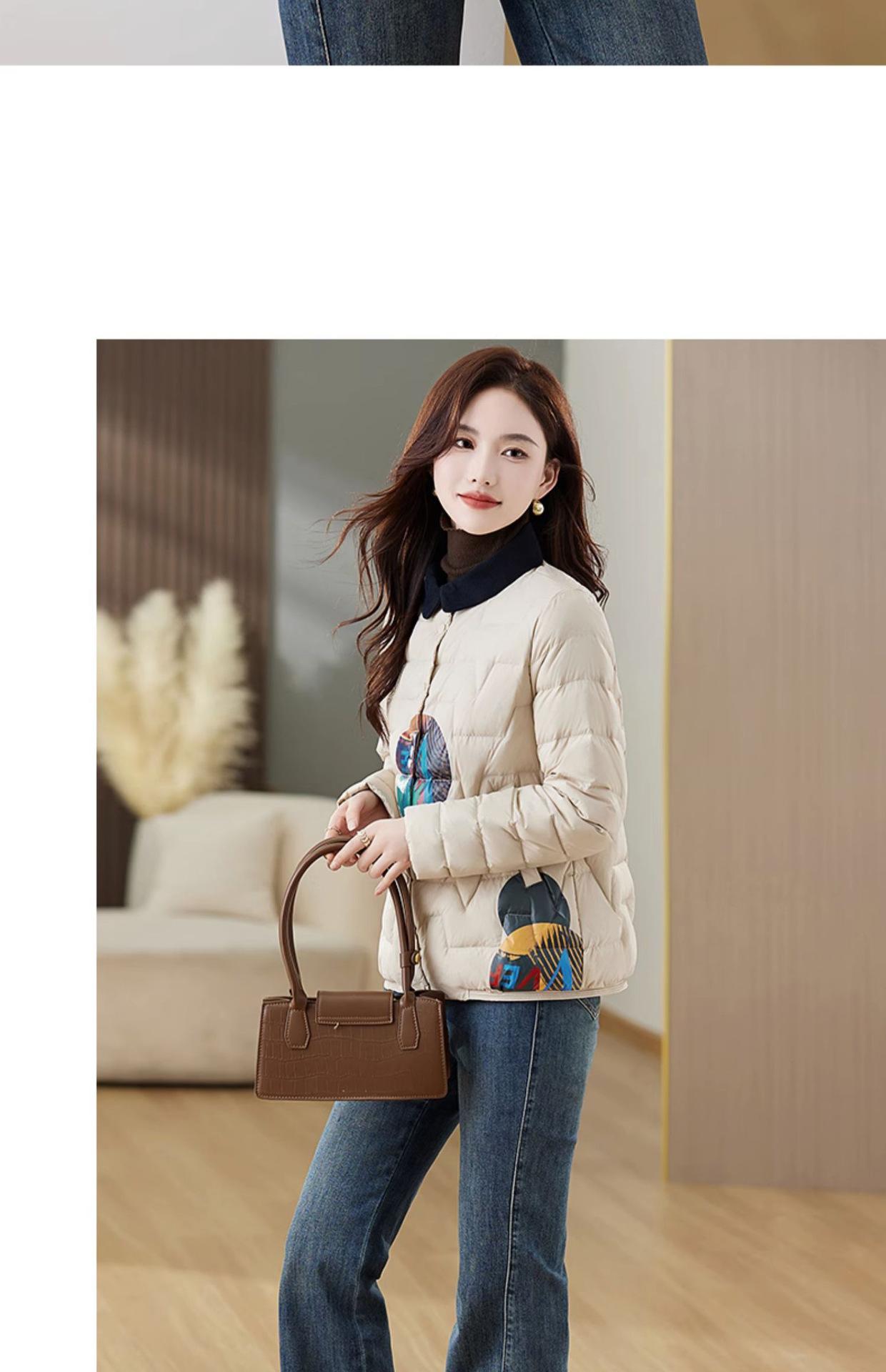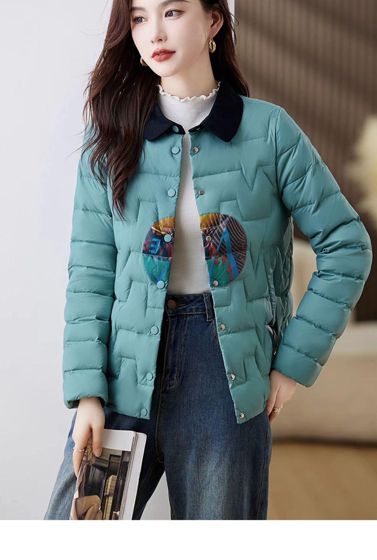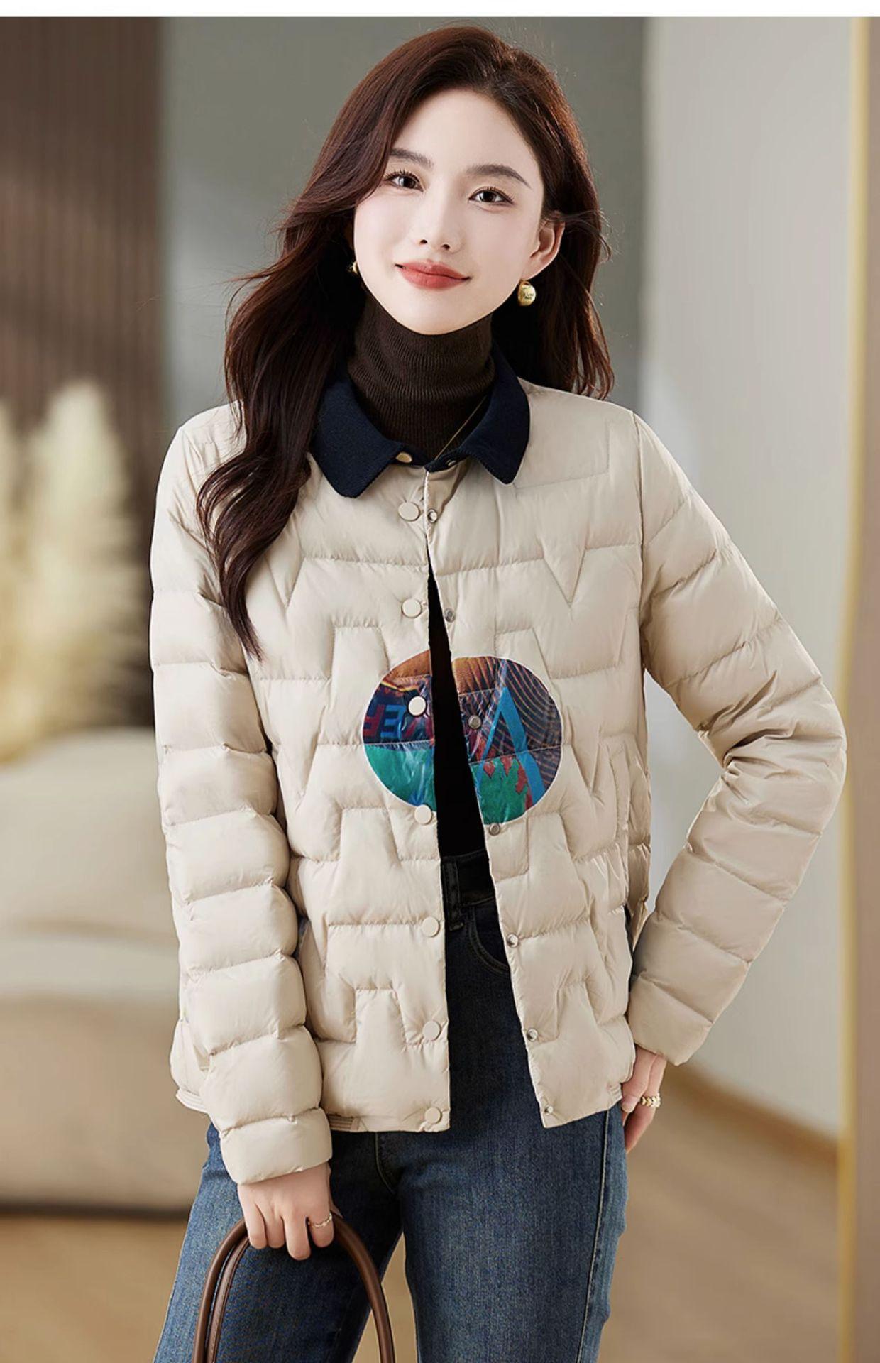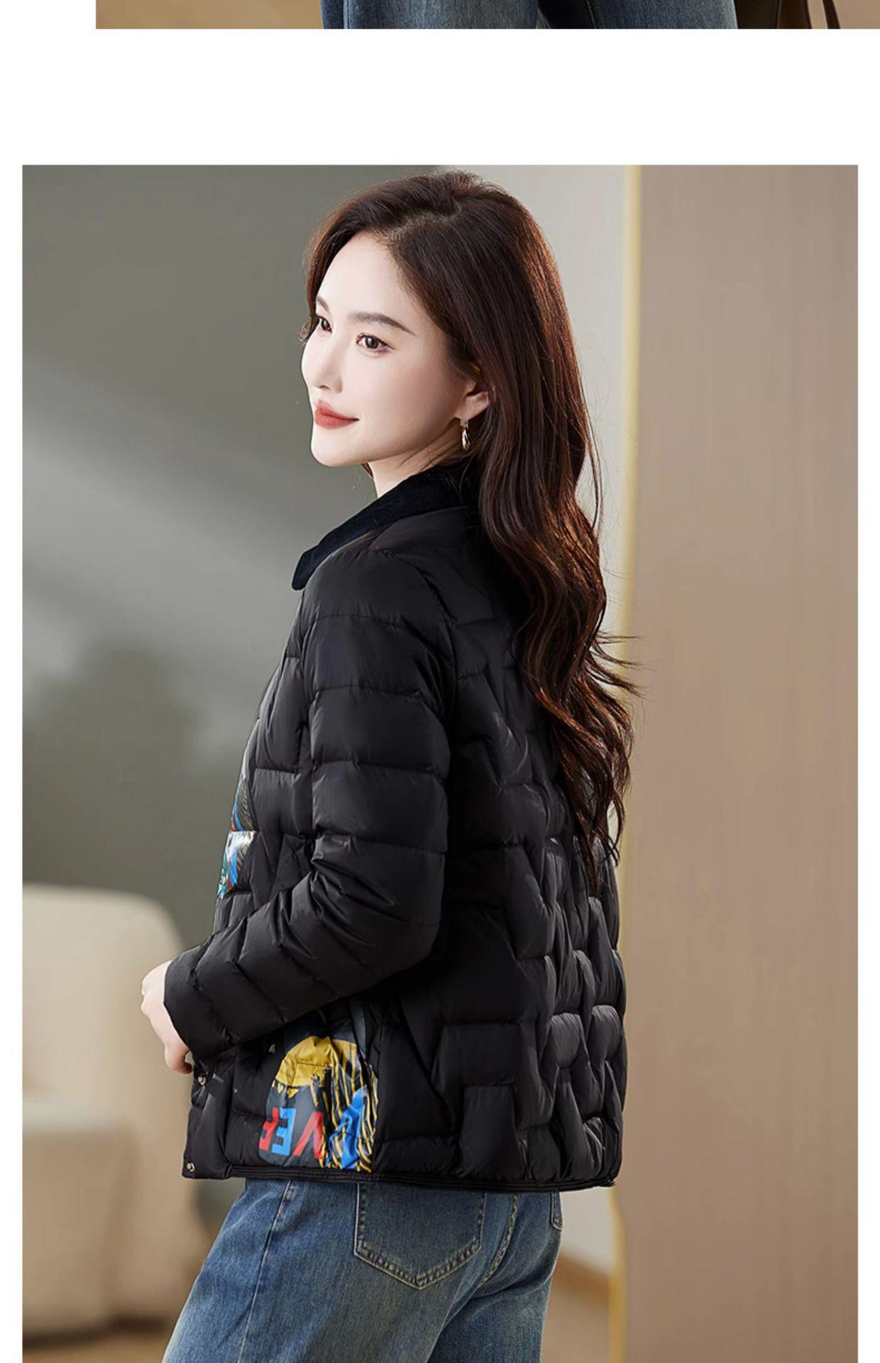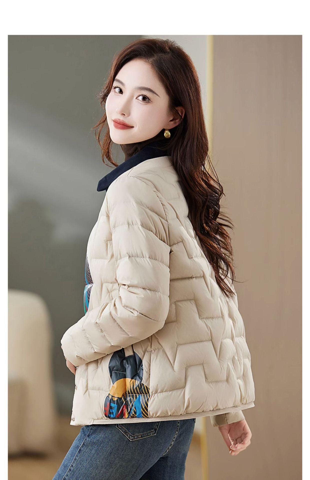 Chaqueta ligera de plumón para mujer corta de invierno con estampado retro plumón de pato blanco pequeño china cálida chaqueta ropa de madre talla grande
