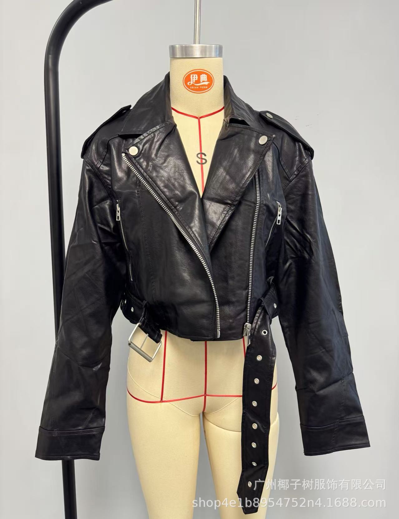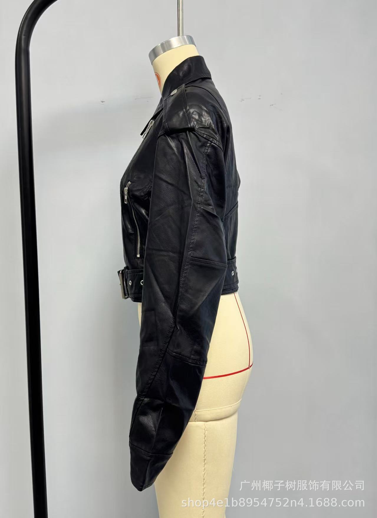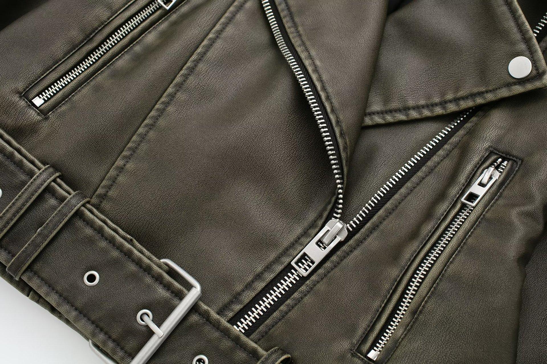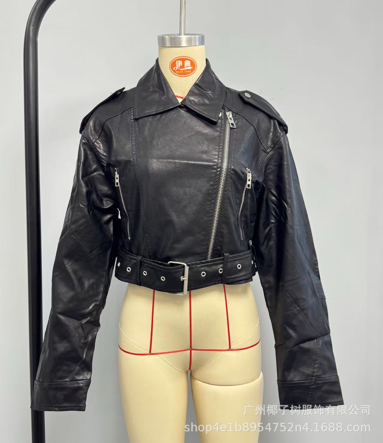 Aliexpress Exportación Transfronteriza Ropa Europea y Americana Za Otoño e Invierno Nuevo Cremallera Oblicua Cinturón Solapa Cuero Chaqueta de Pu