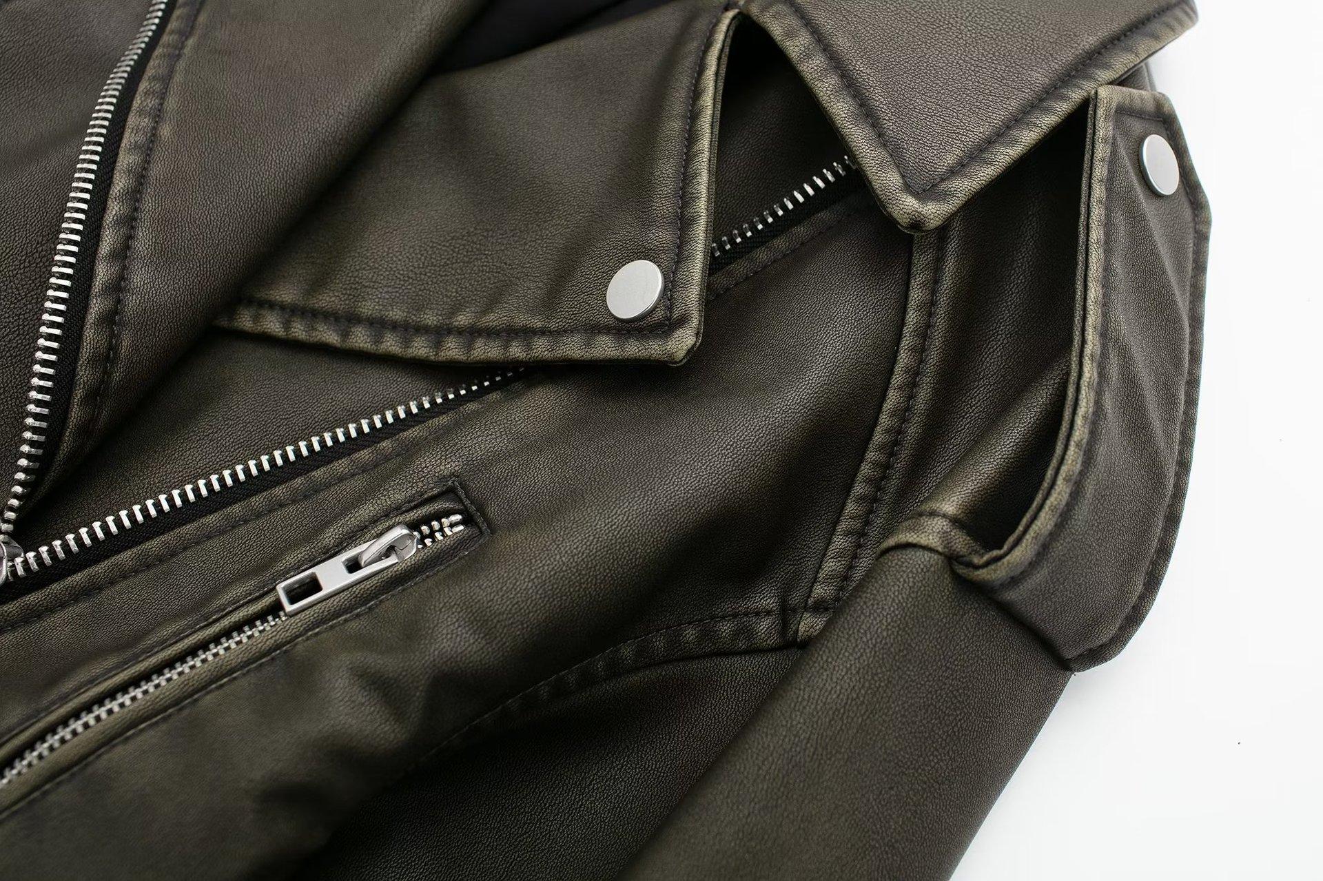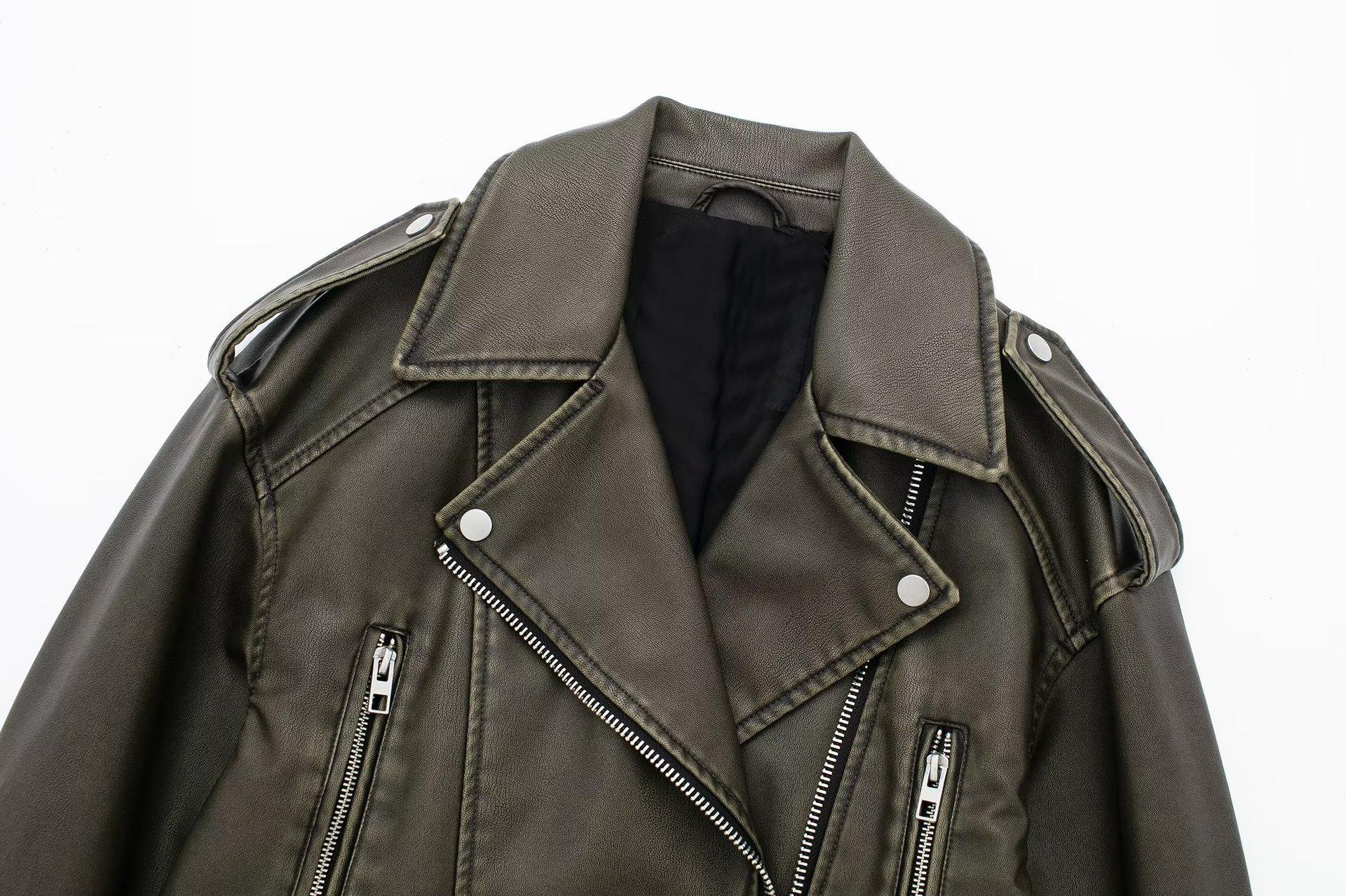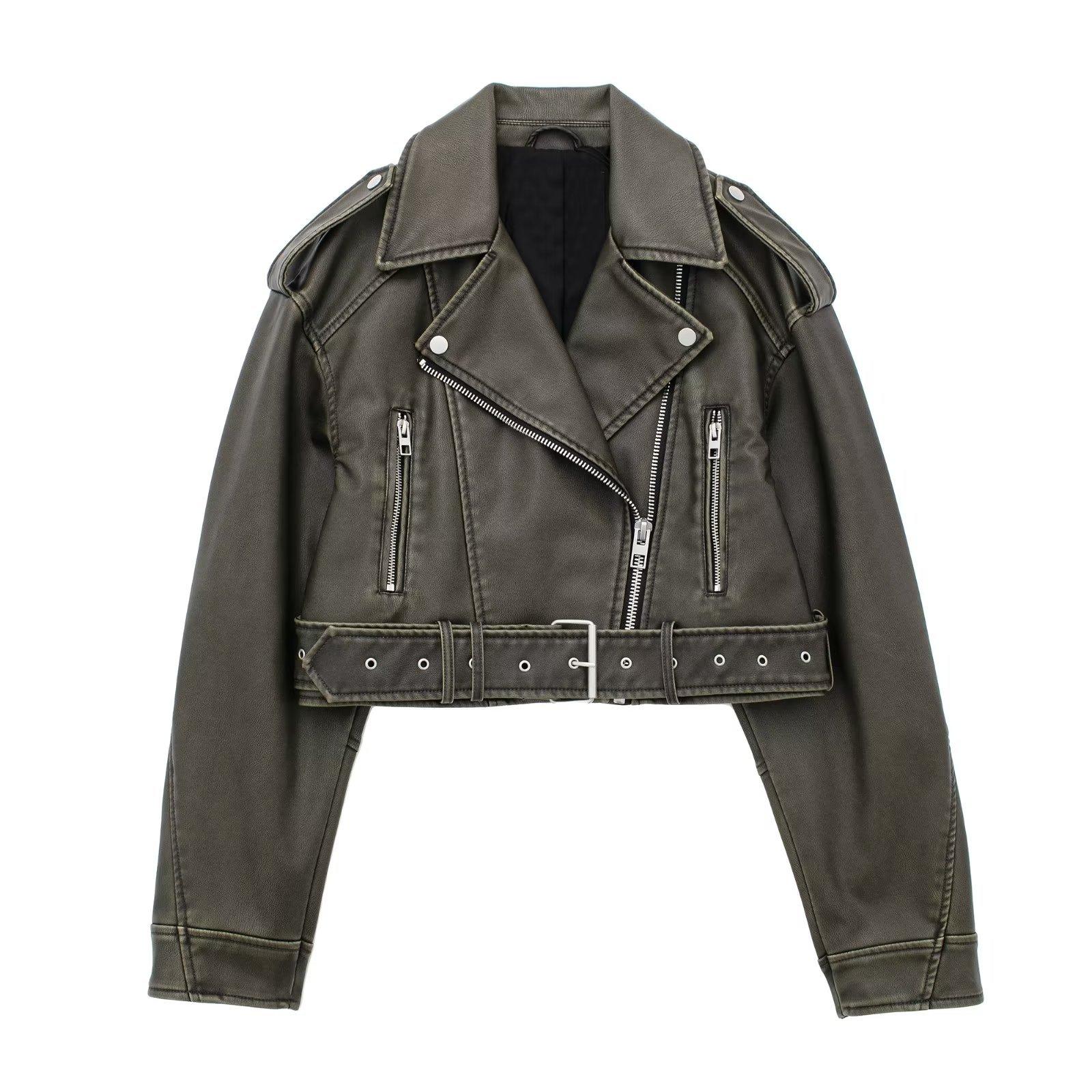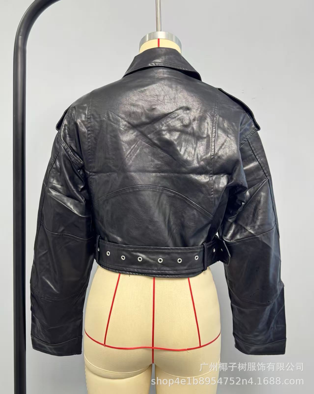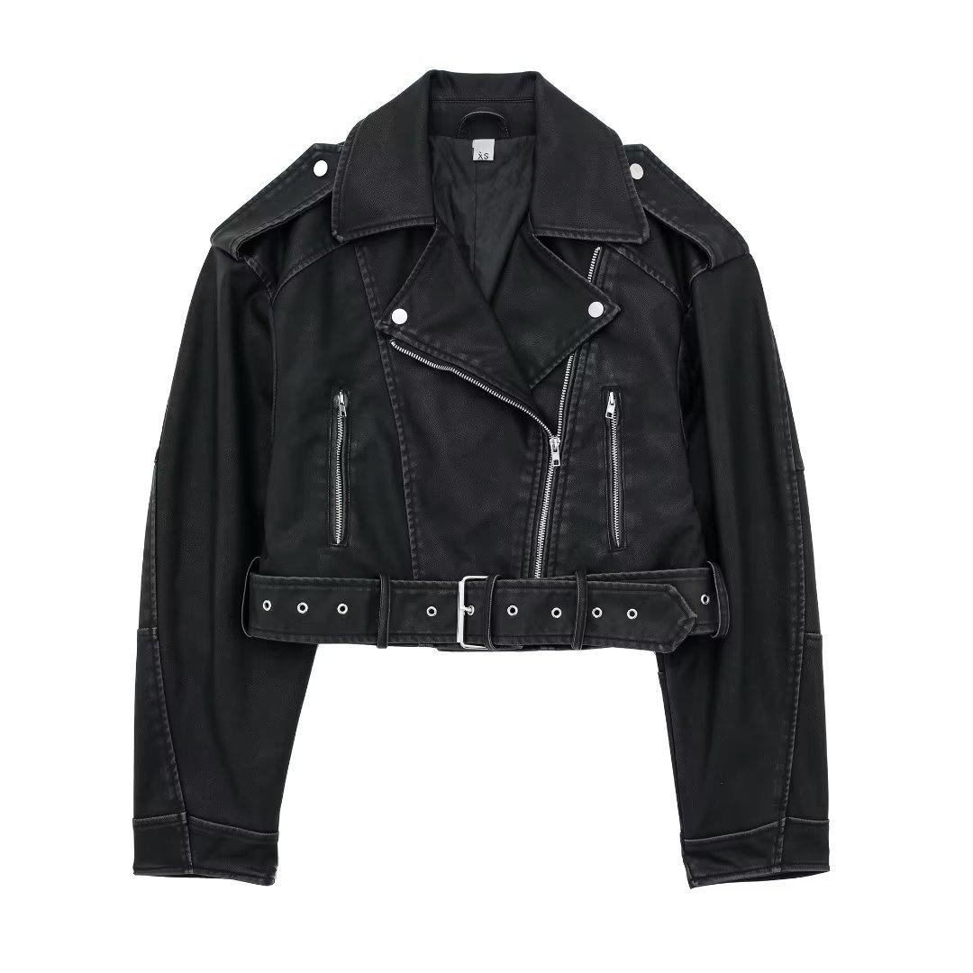 Aliexpress Exportación Transfronteriza Ropa Europea y Americana Za Otoño e Invierno Nuevo Cremallera Oblicua Cinturón Solapa Cuero Chaqueta de Pu